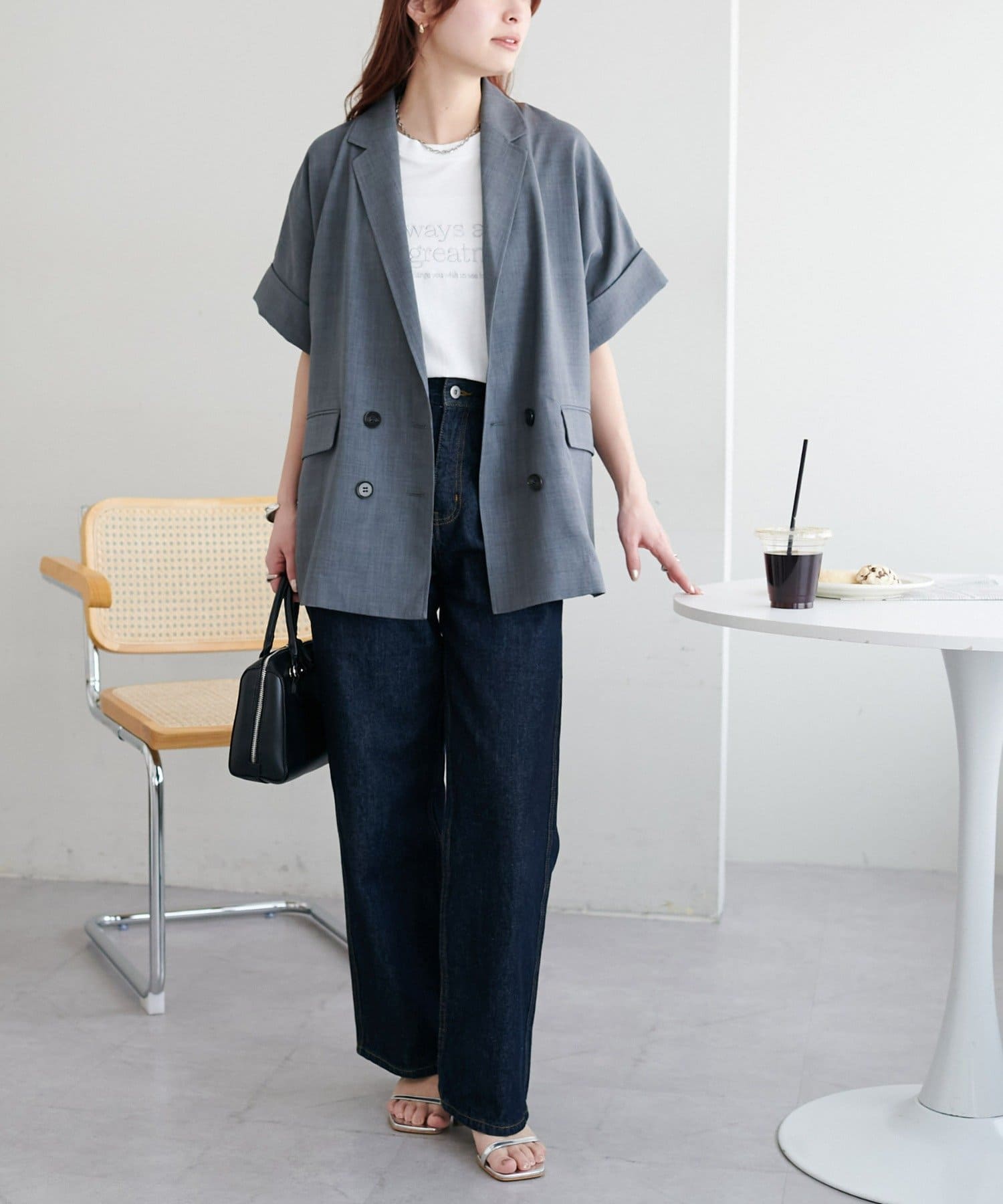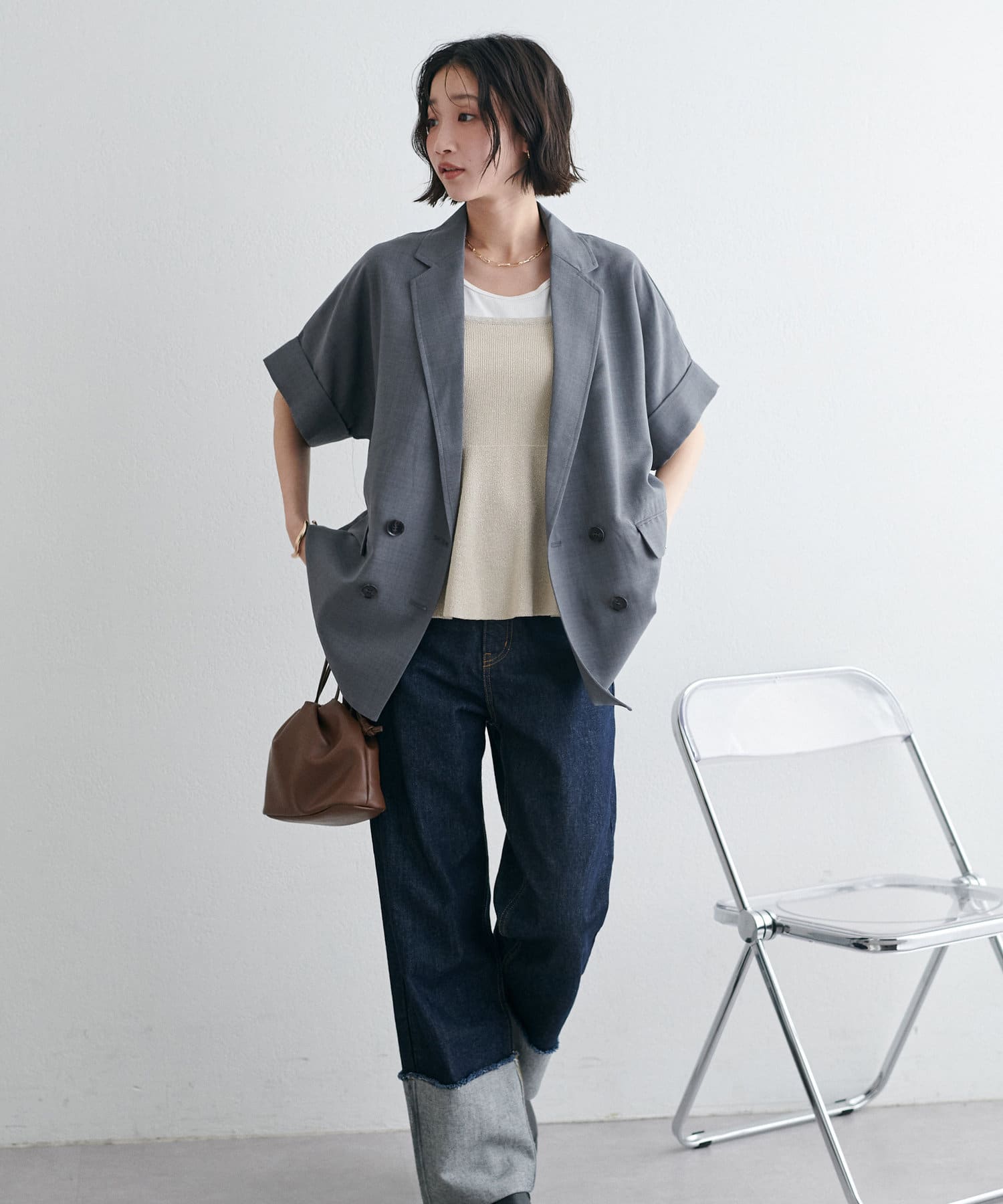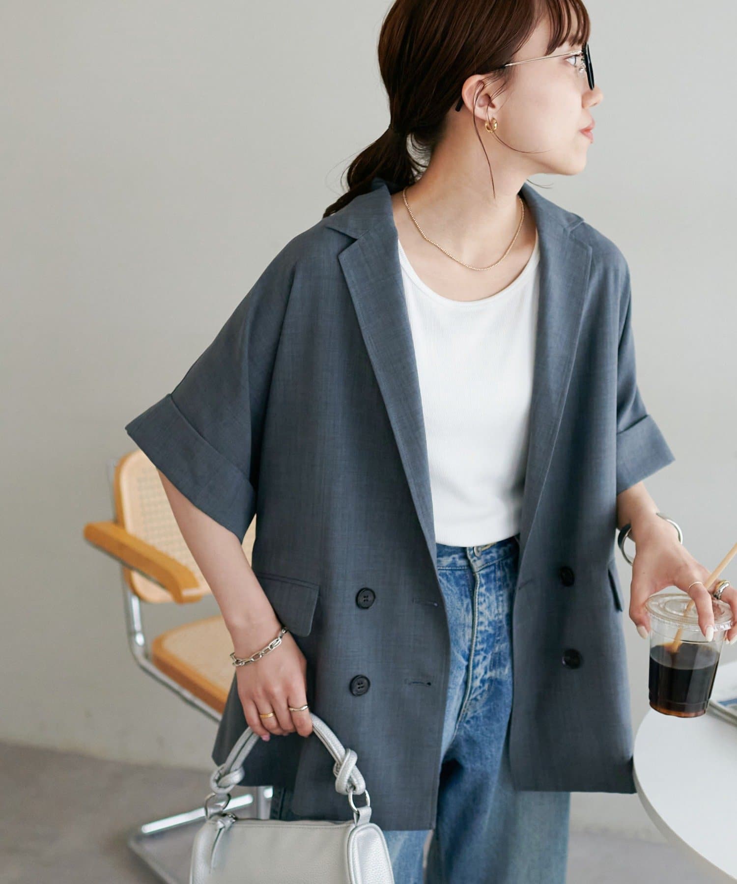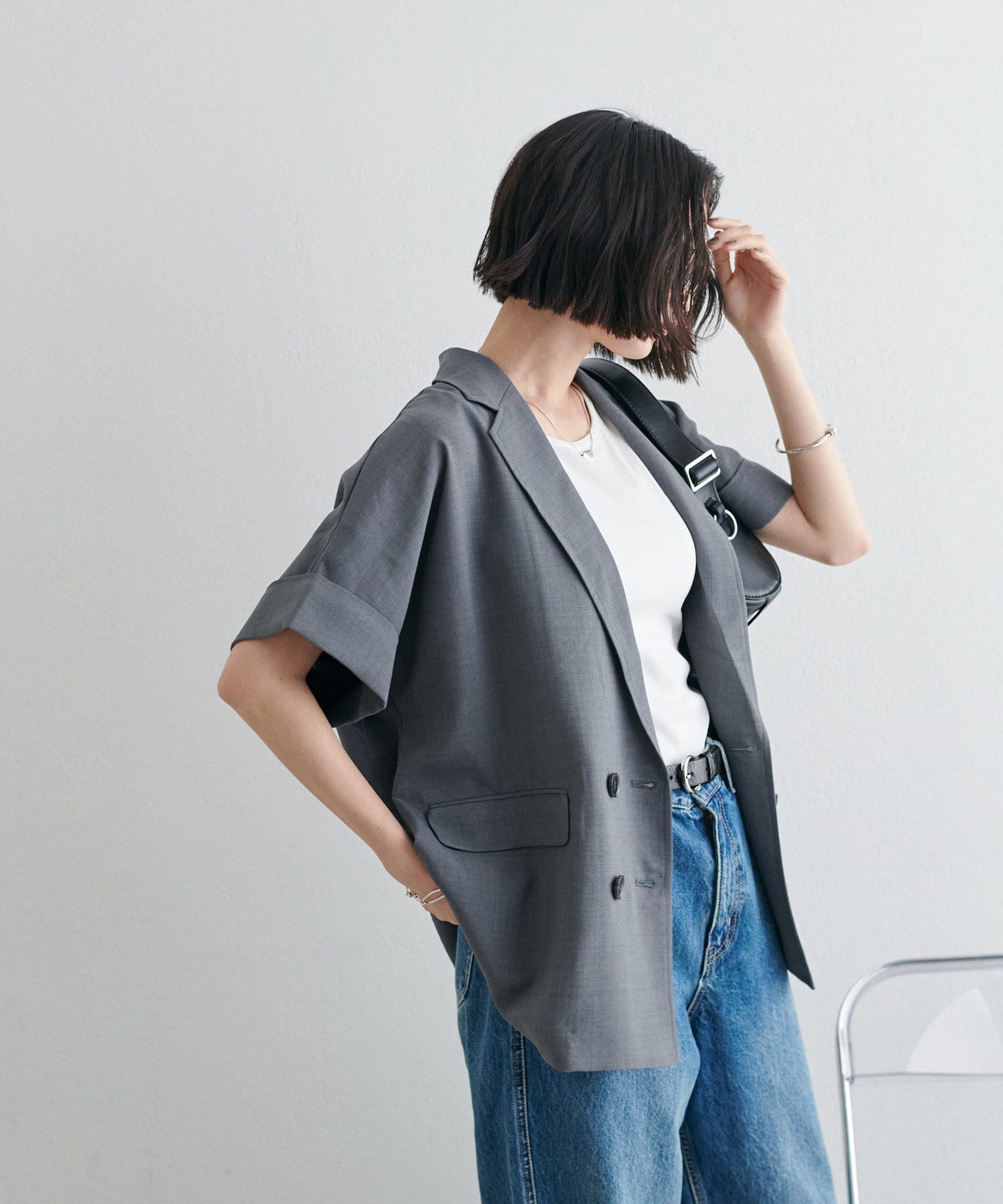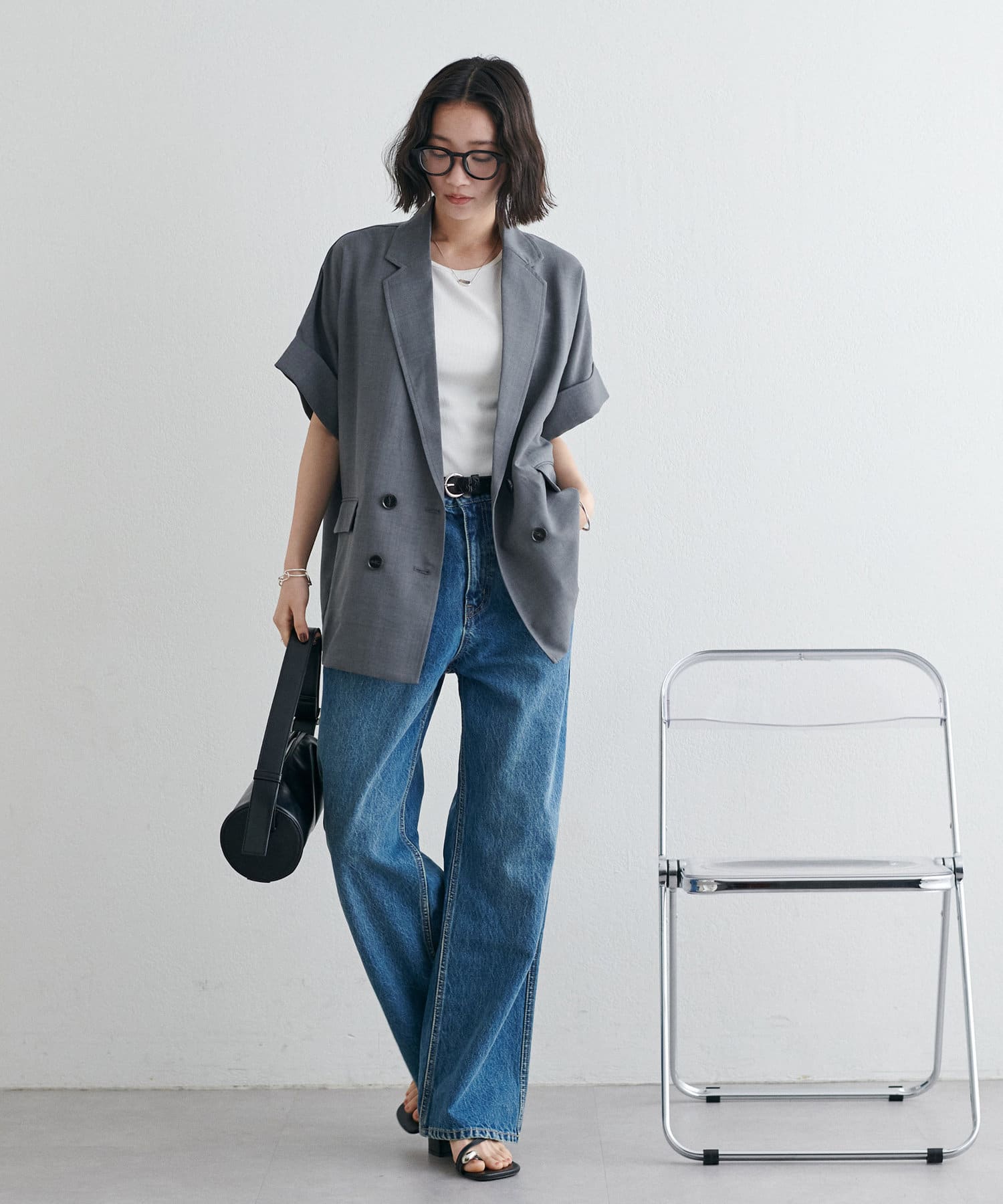 きれいめに見えがちなジャケットスタイルですが、ゆったりとしたシルエットでラフな着こなしを楽しめます♪