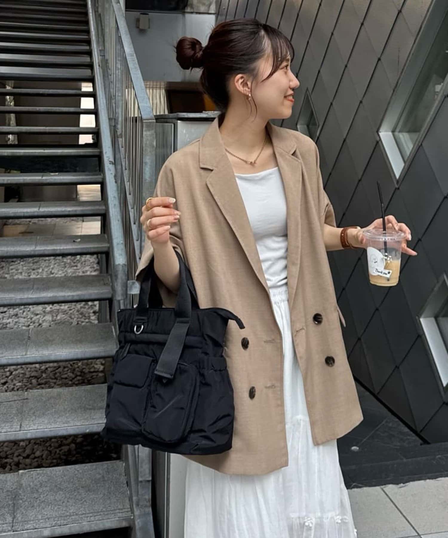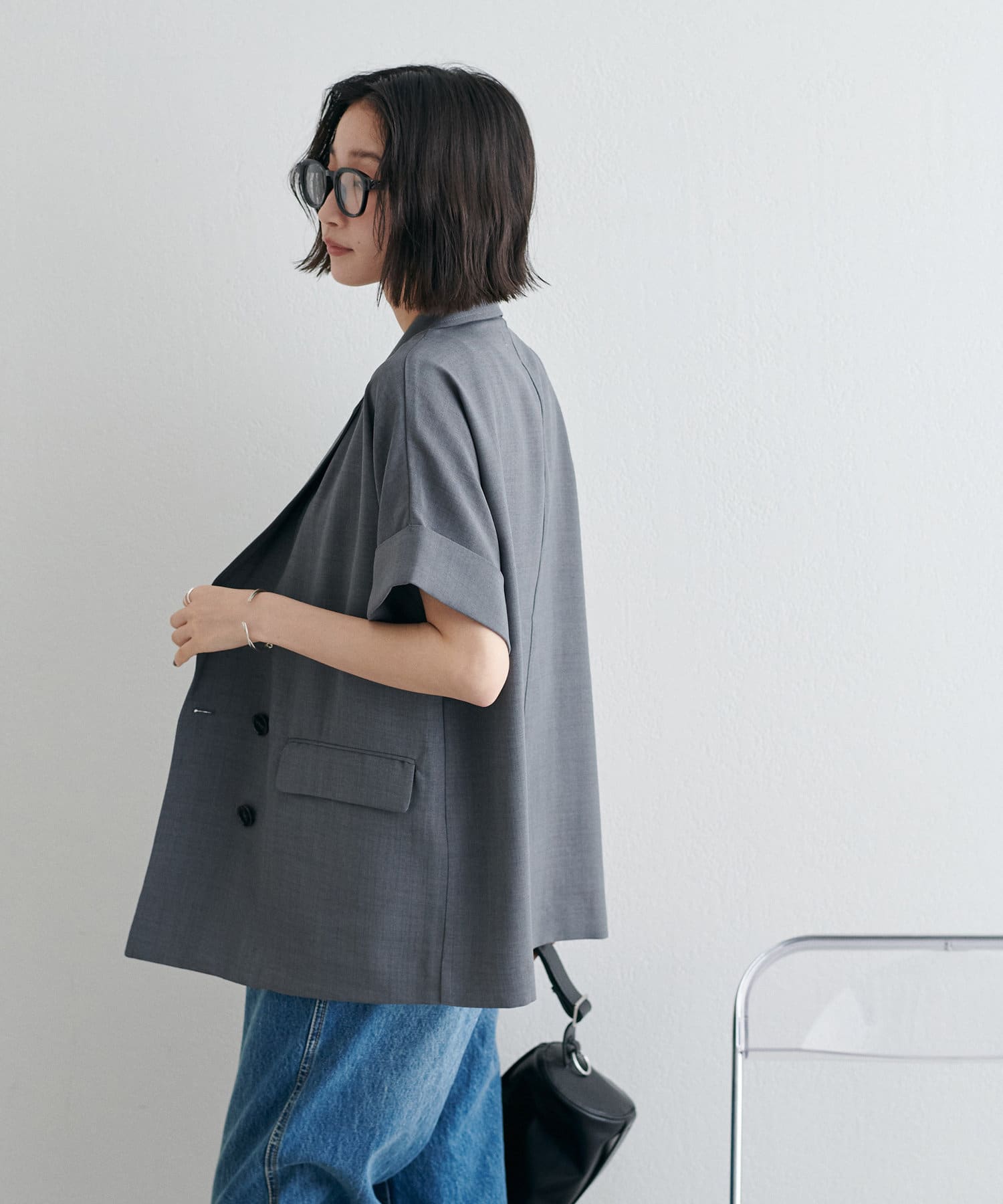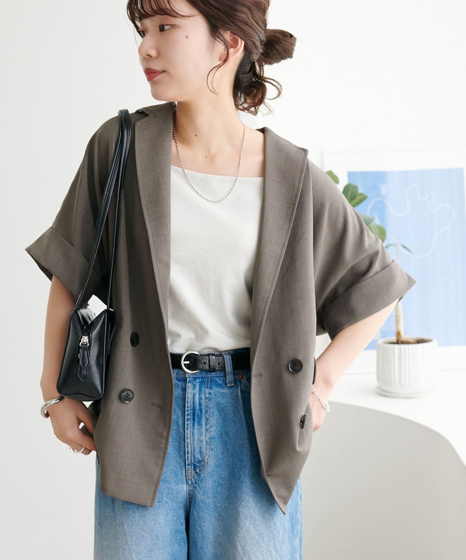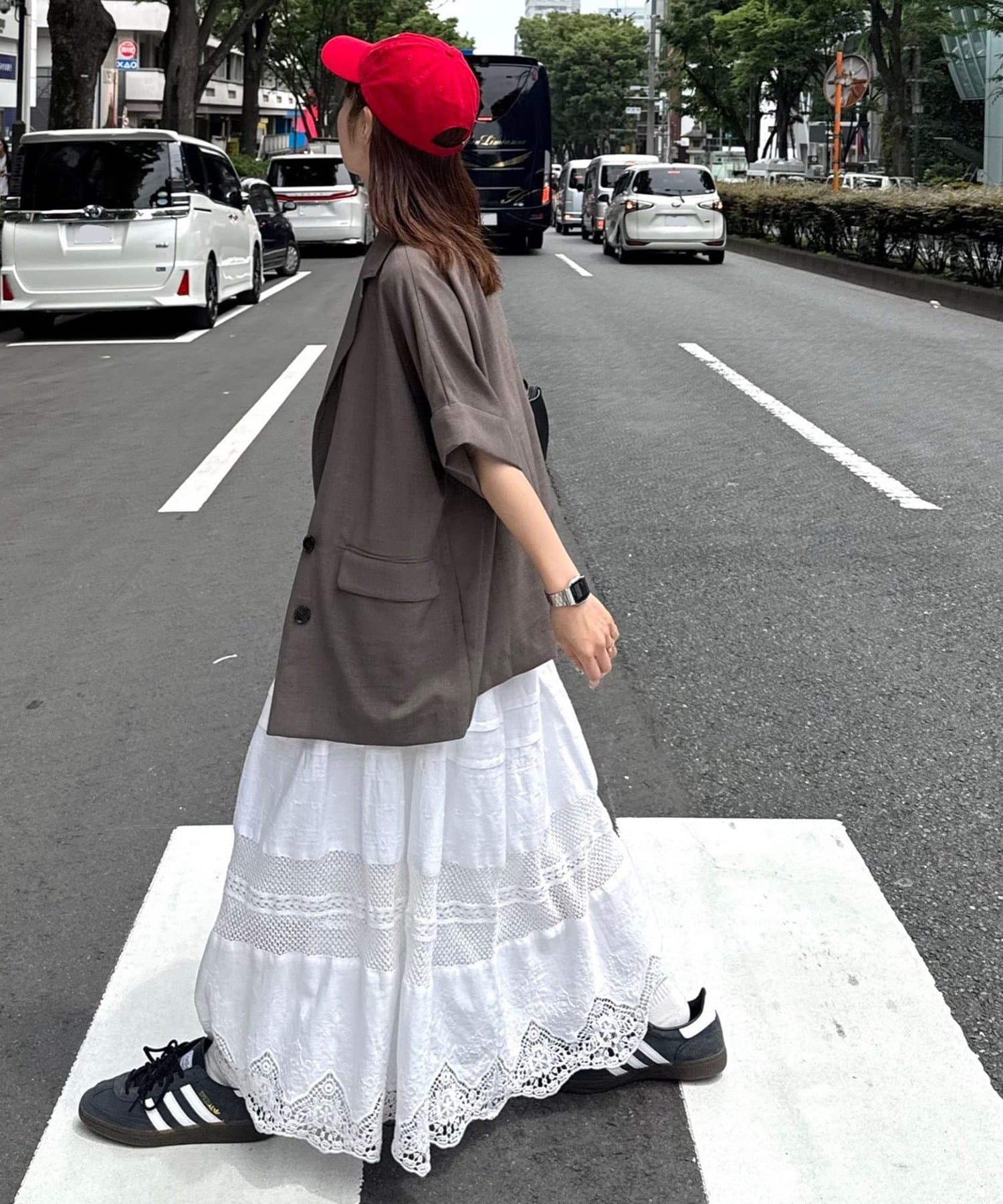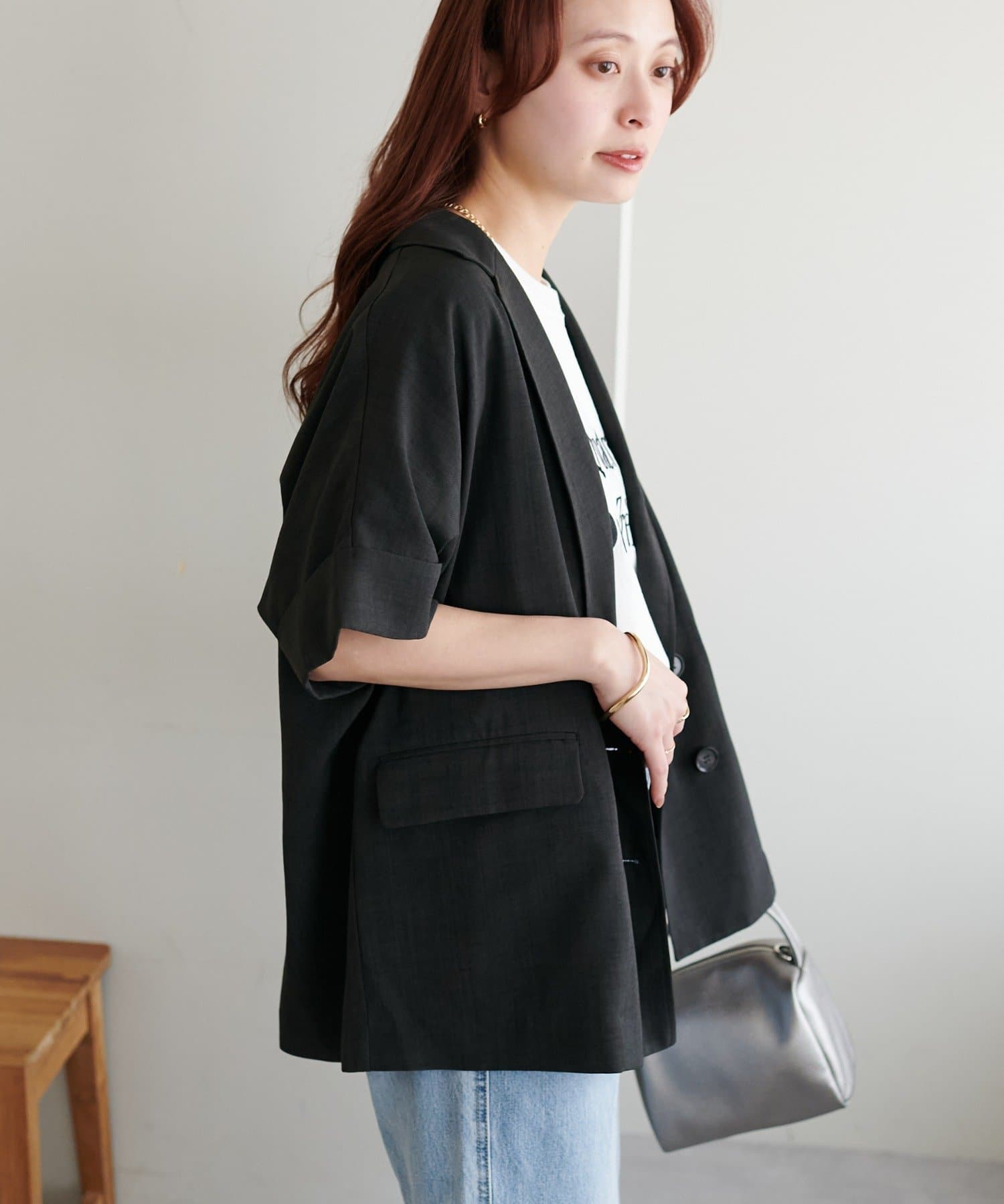 きれいめに見えがちなジャケットスタイルですが、ゆったりとしたシルエットでラフな着こなしを楽しめます♪