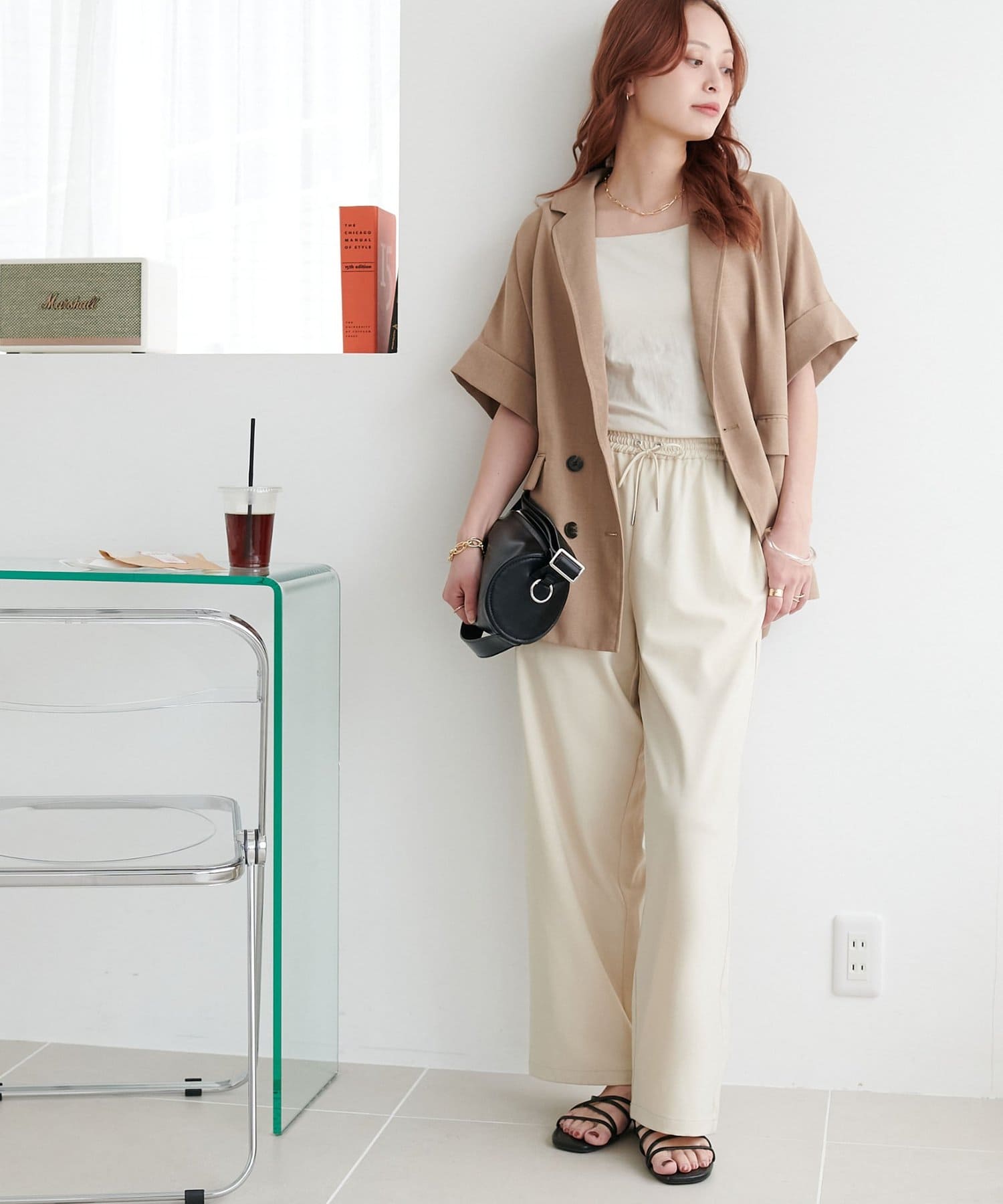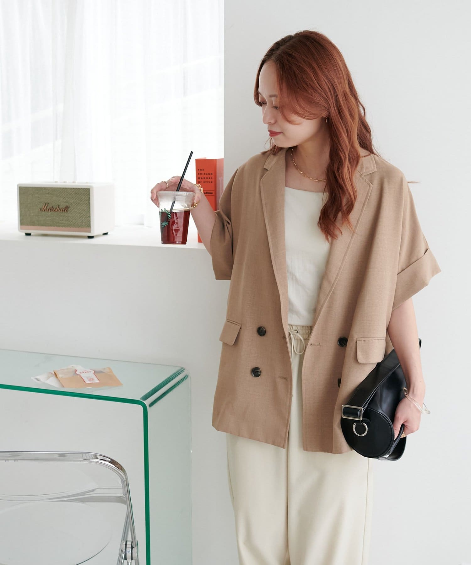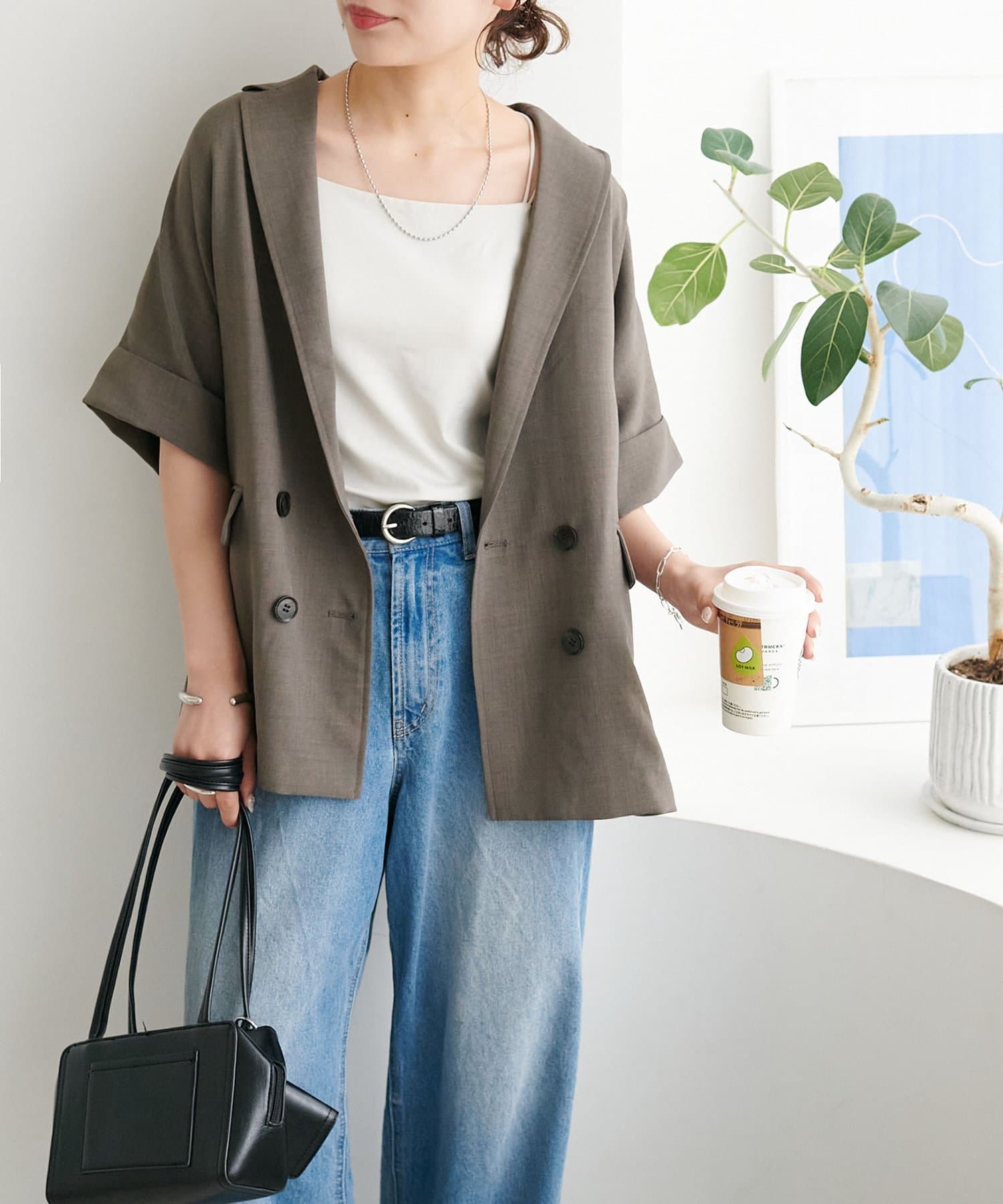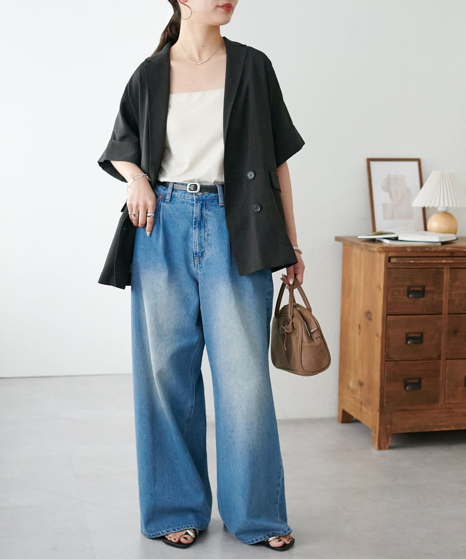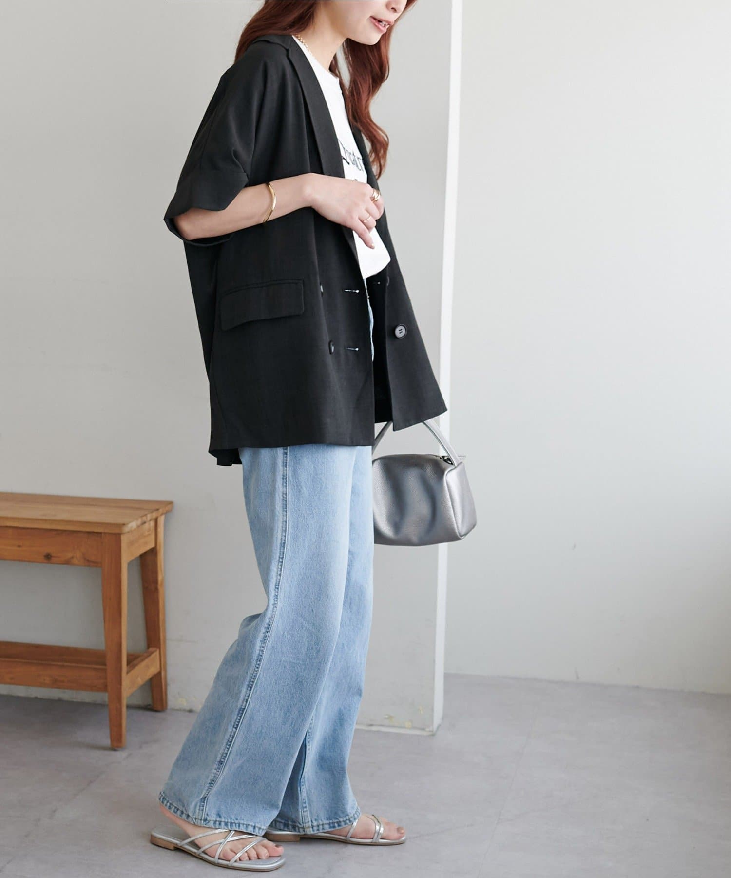 きれいめに見えがちなジャケットスタイルですが、ゆったりとしたシルエットでラフな着こなしを楽しめます♪