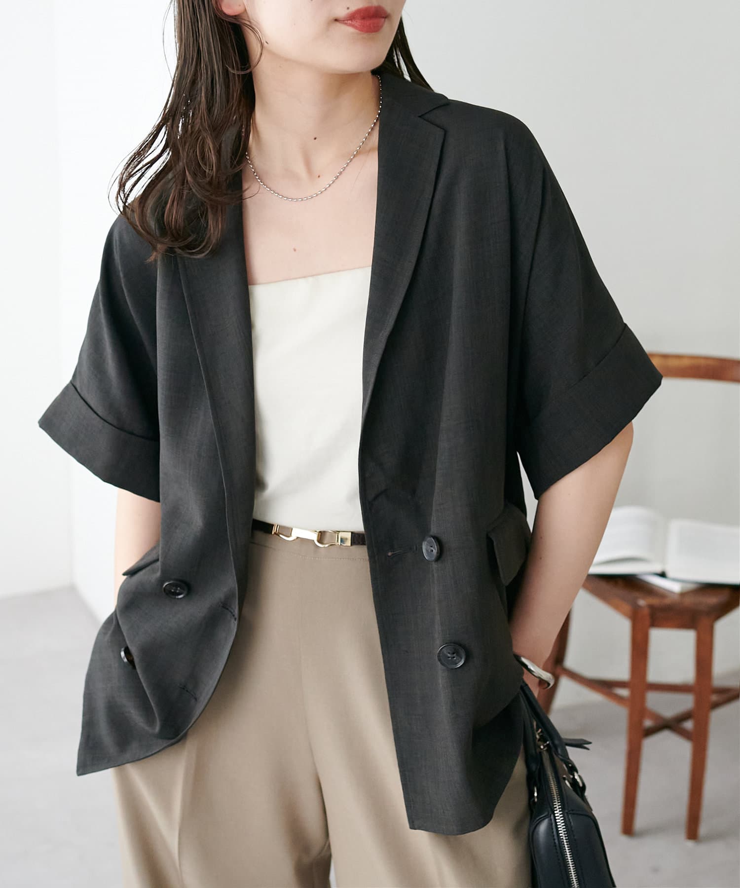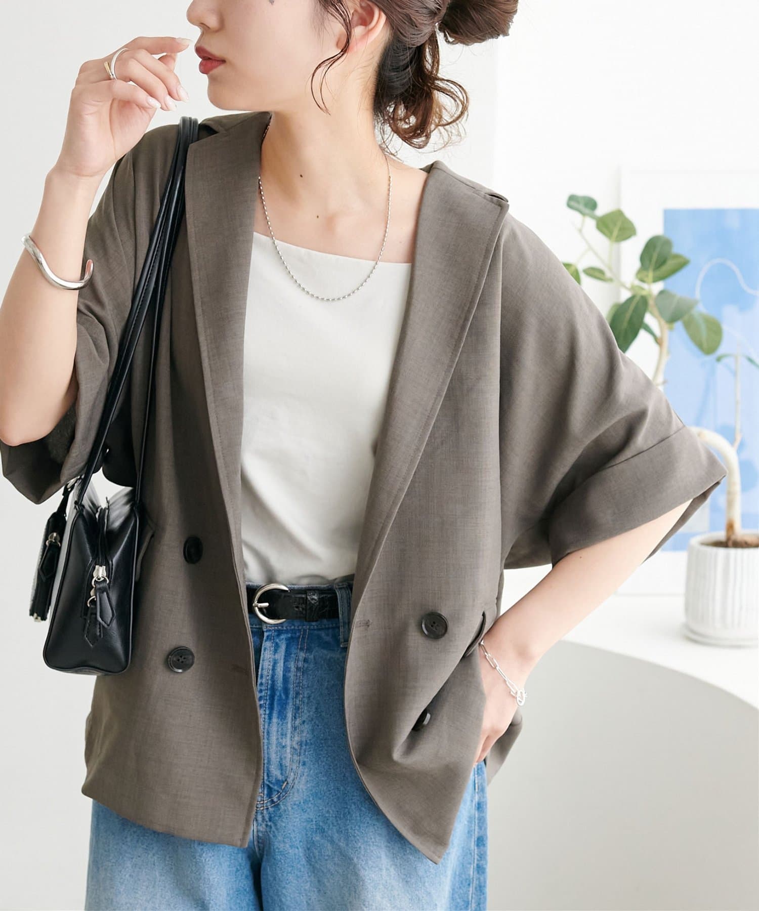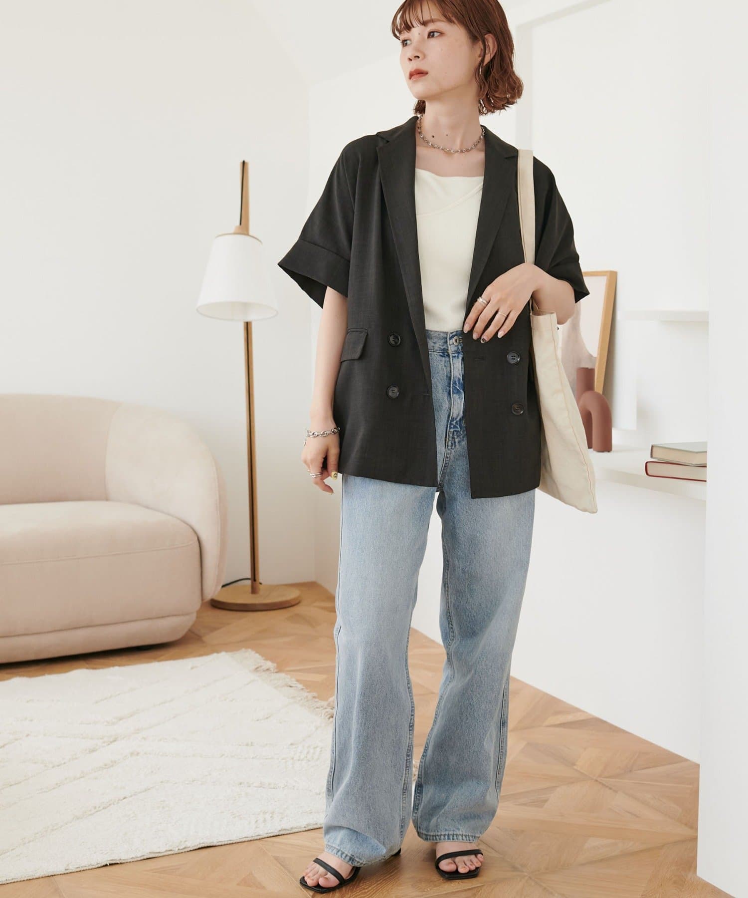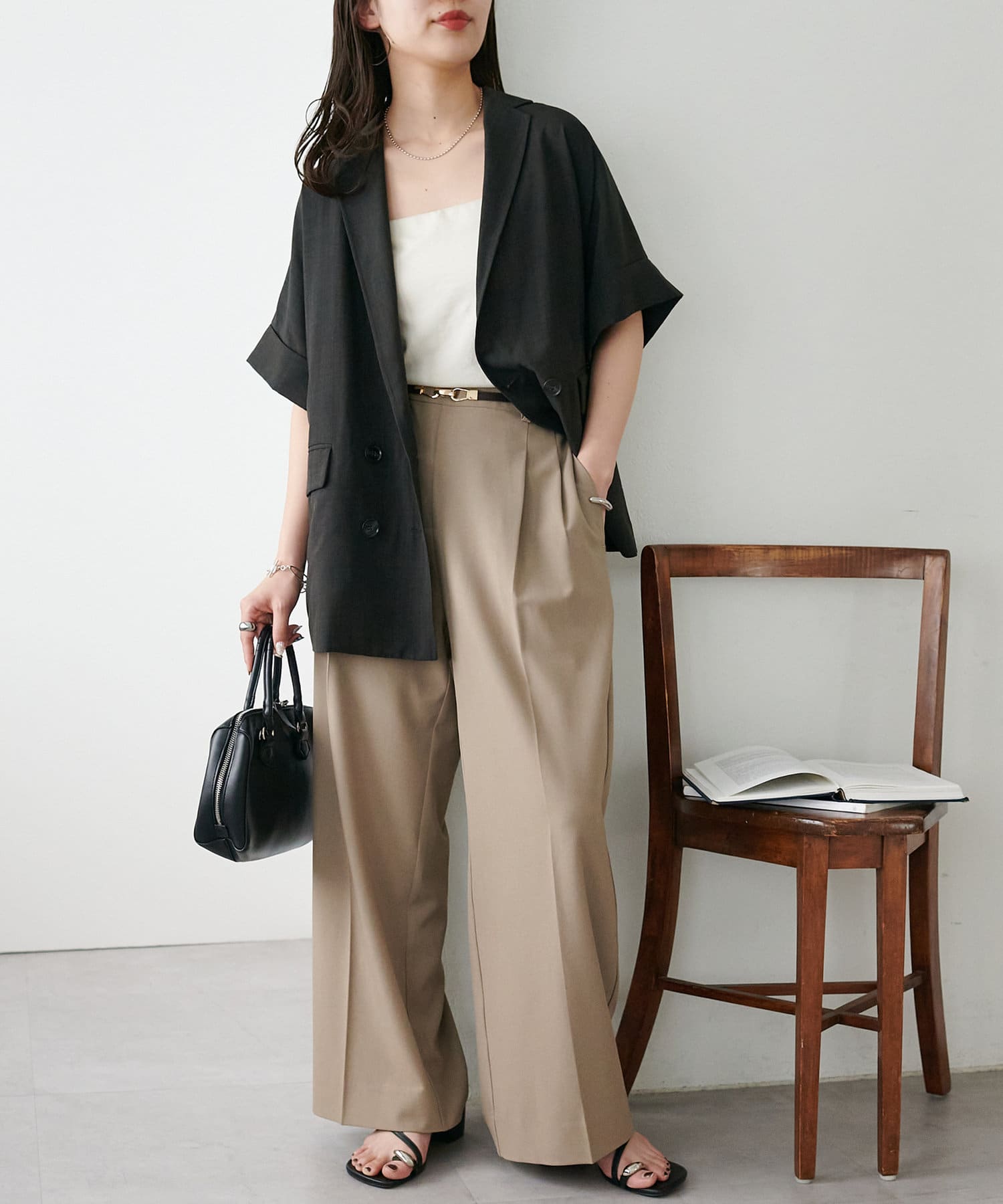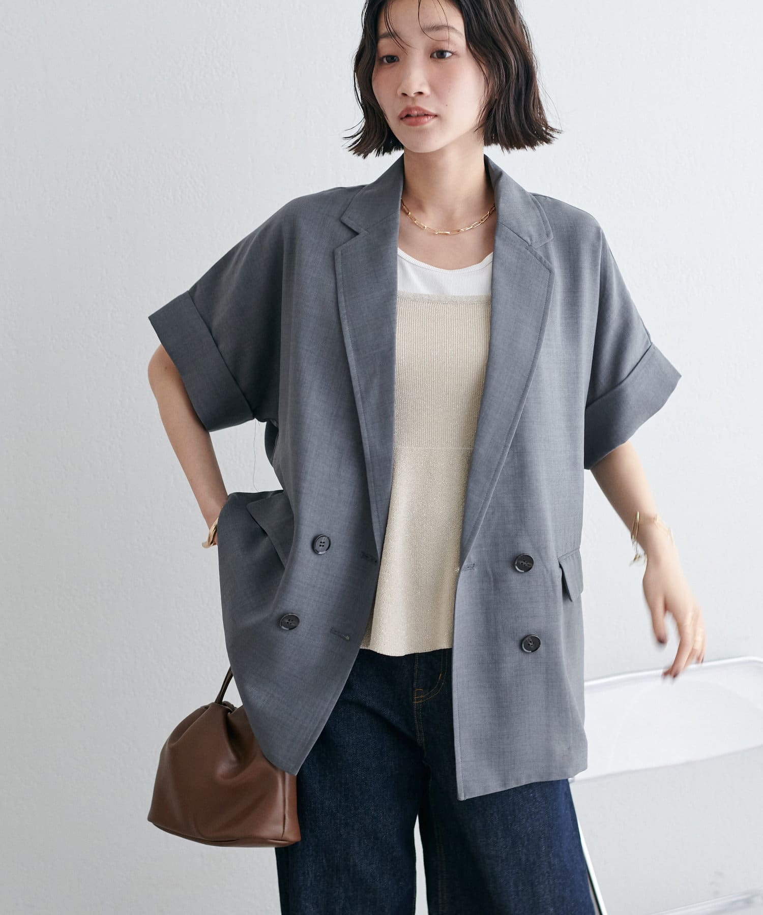 きれいめに見えがちなジャケットスタイルですが、ゆったりとしたシルエットでラフな着こなしを楽しめます♪