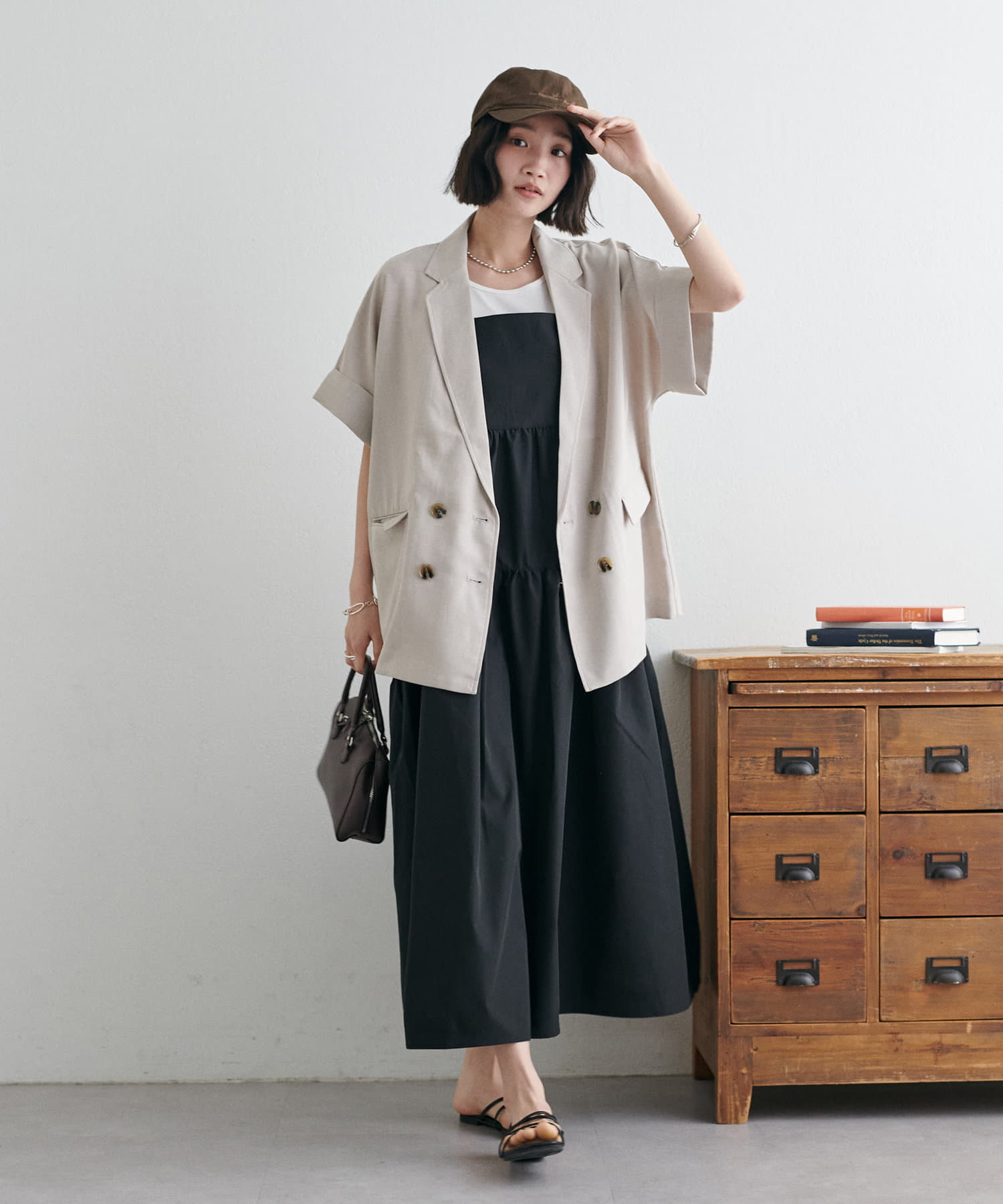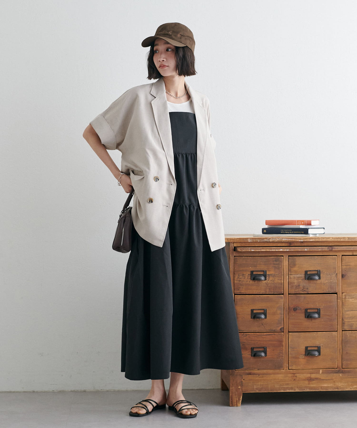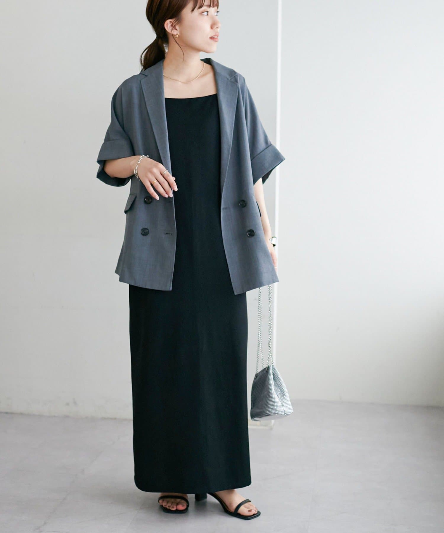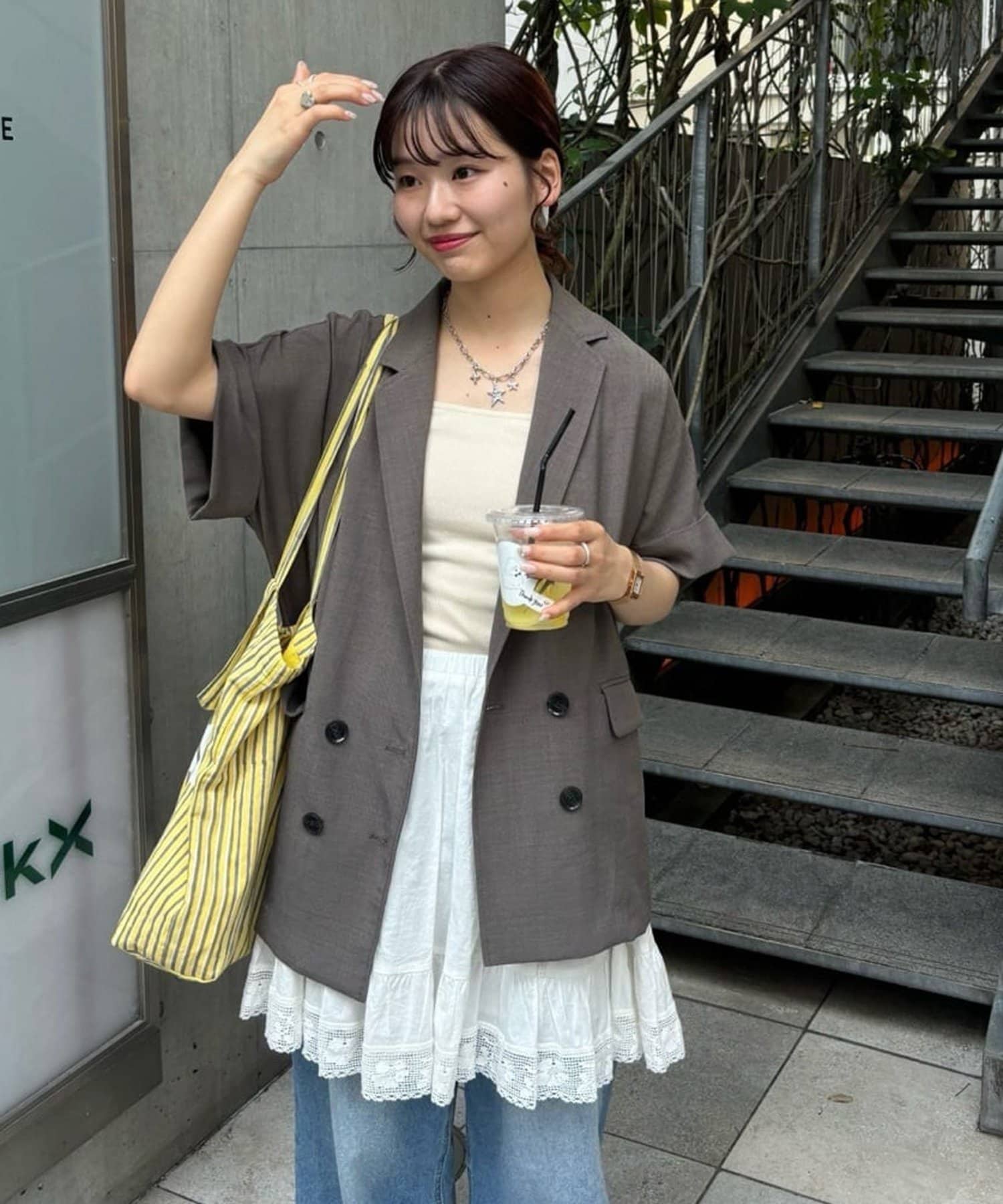キャミワンピースやキャミ、タンクと合わせてキレイメコーデにも着こなせます〇