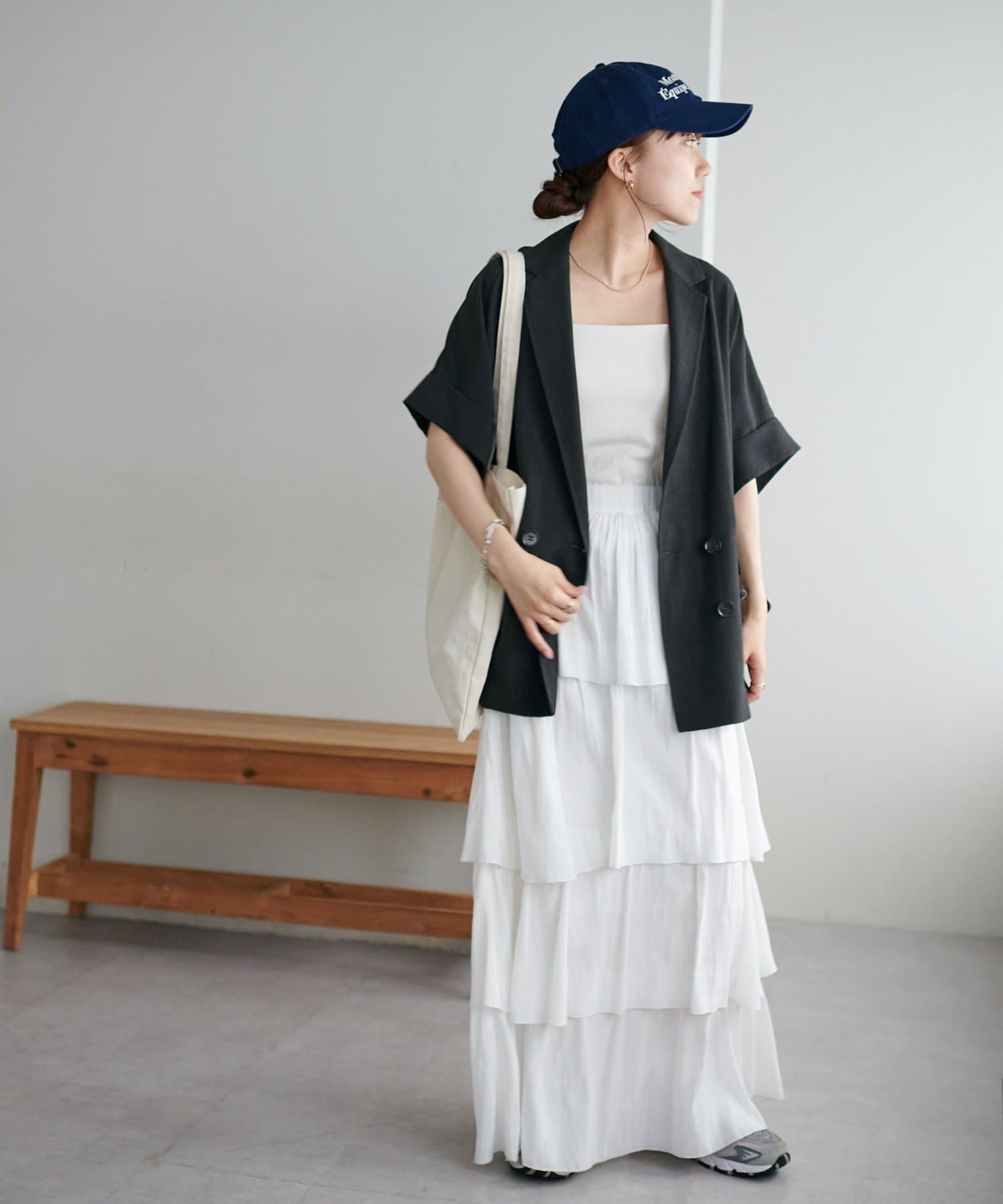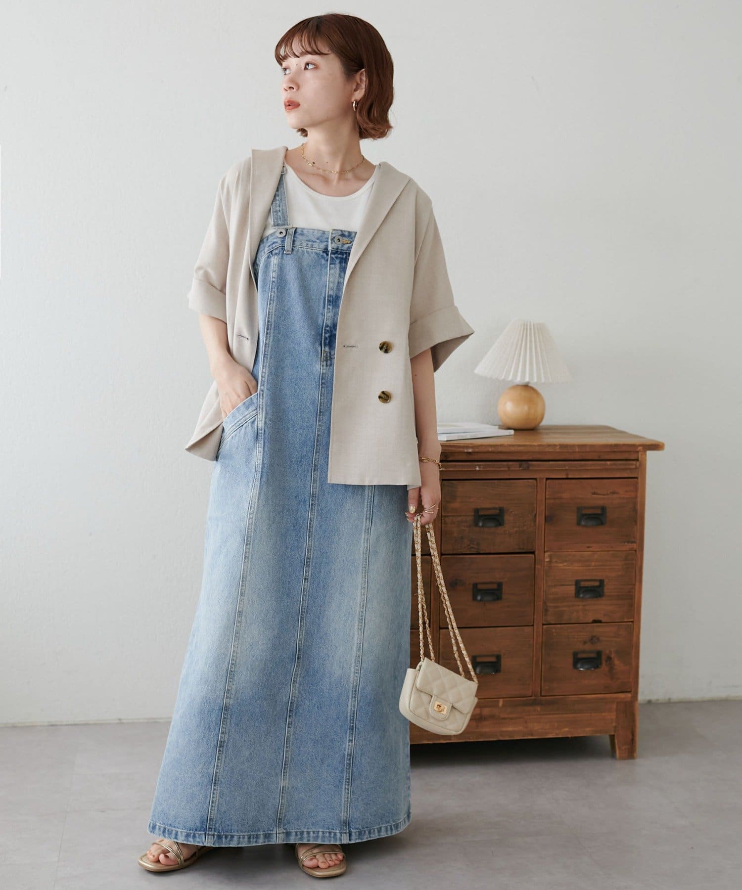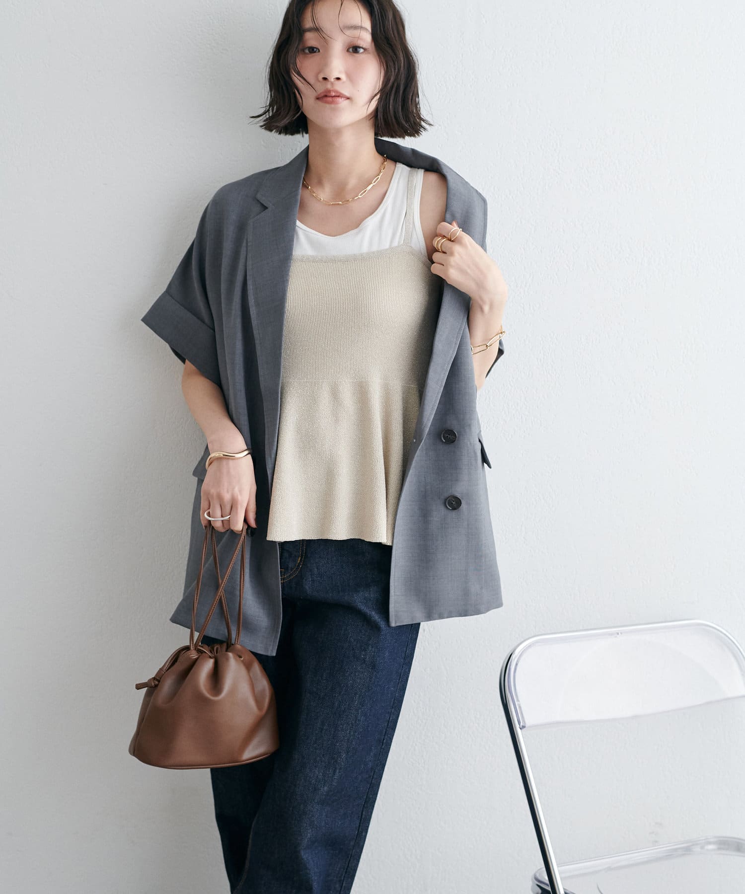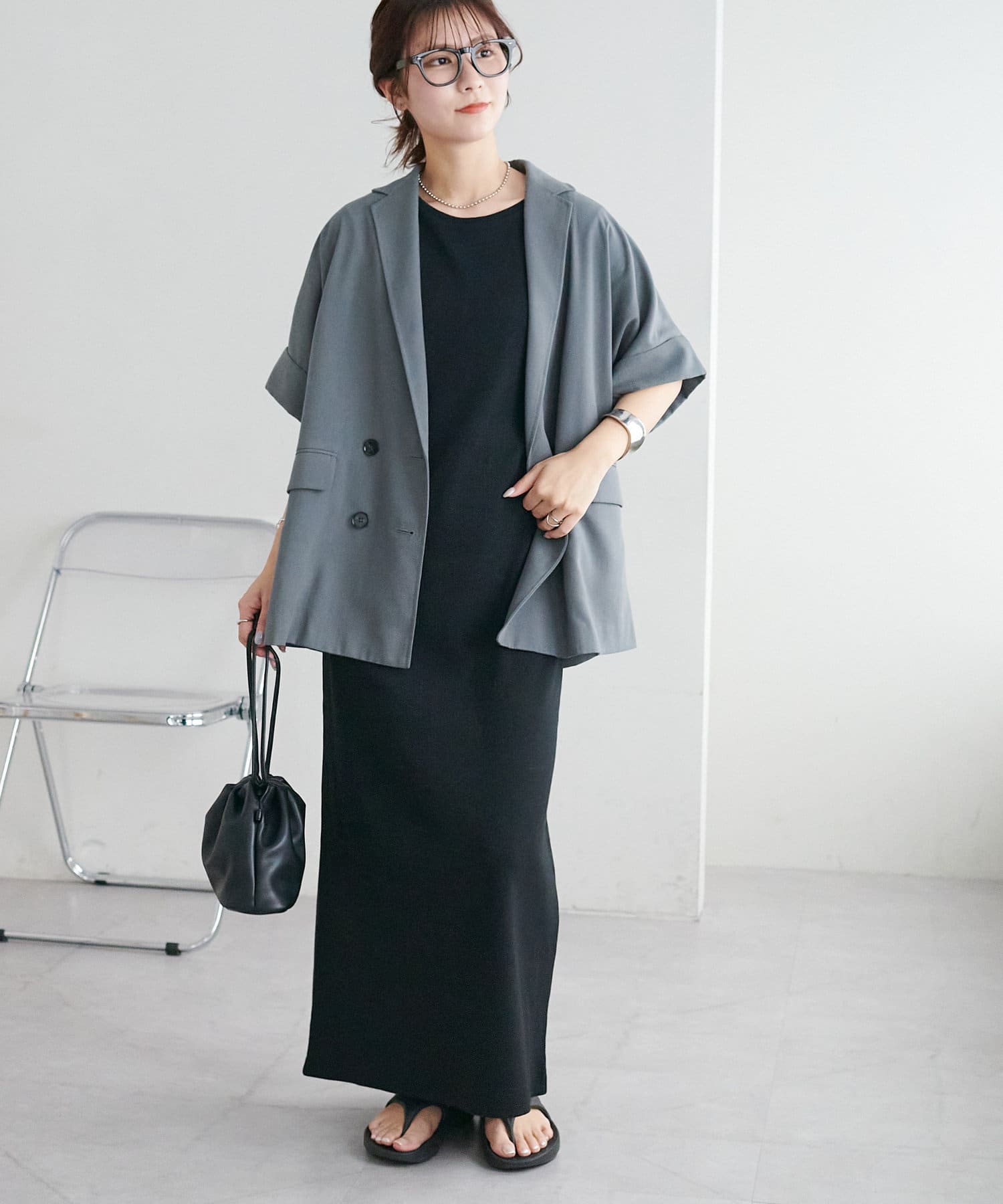 キャミワンピースやキャミ、タンクと合わせてキレイメコーデにも着こなせます〇