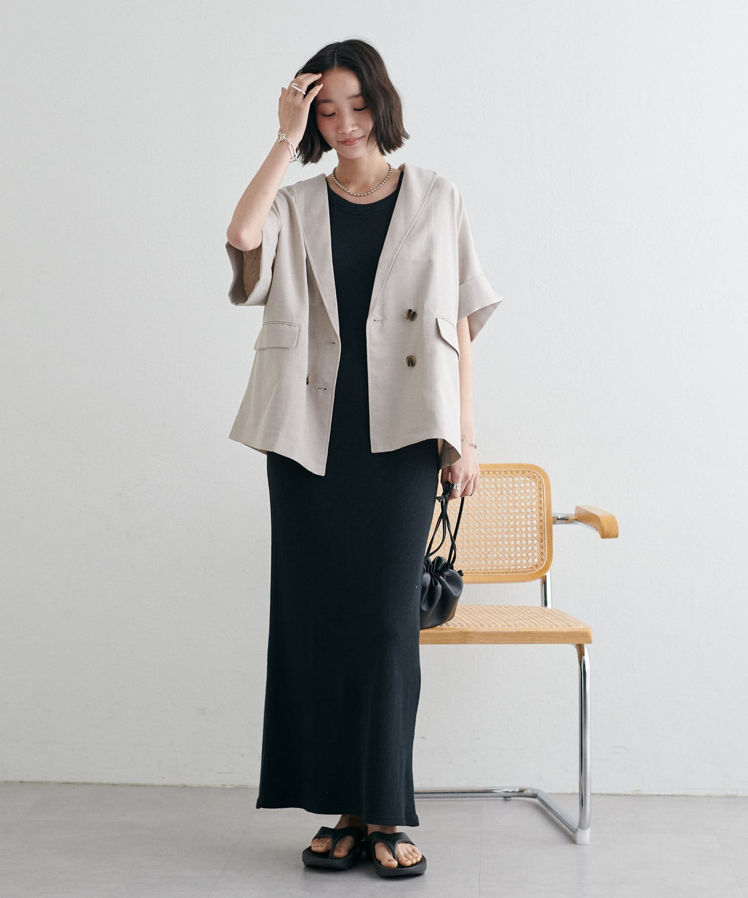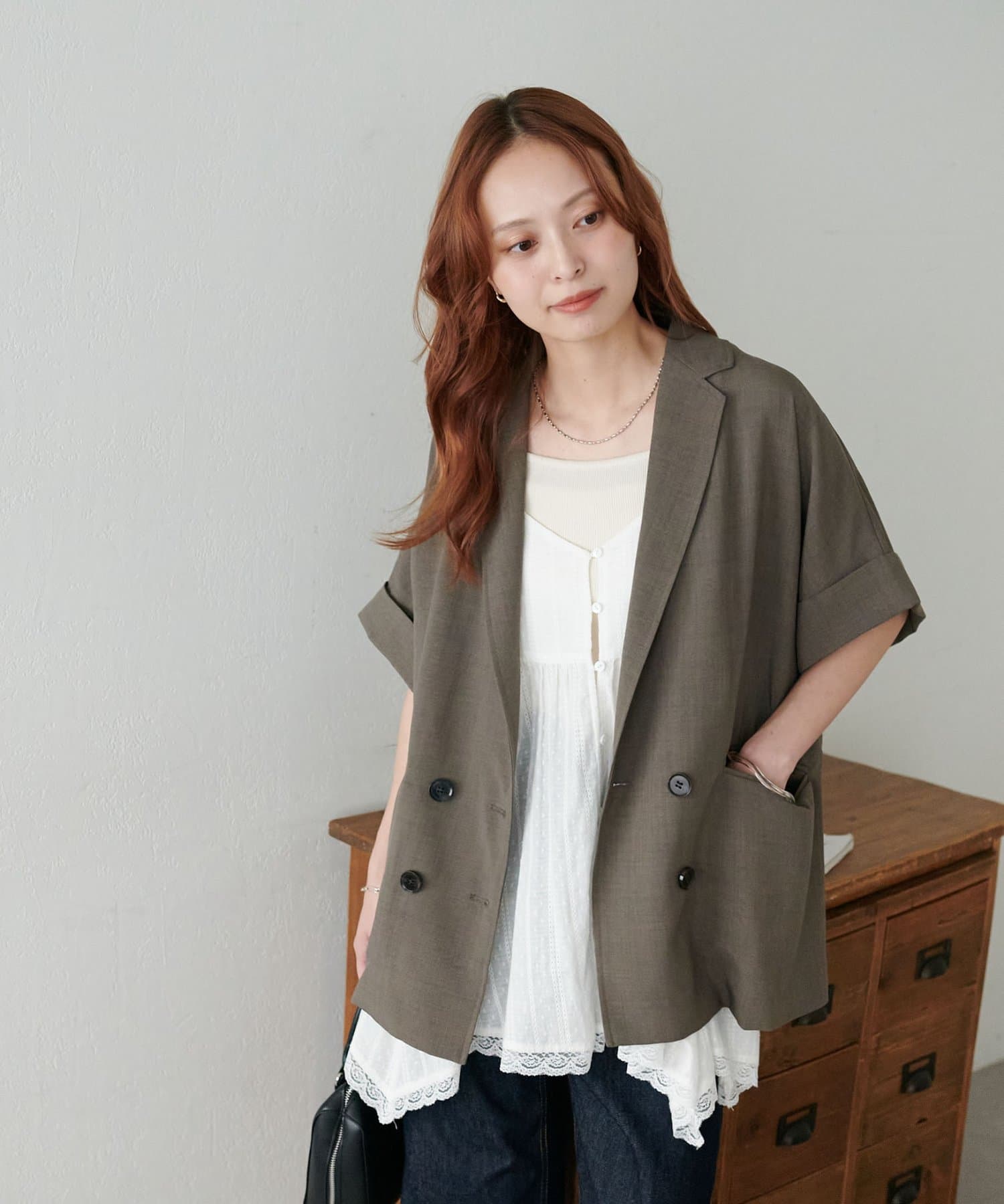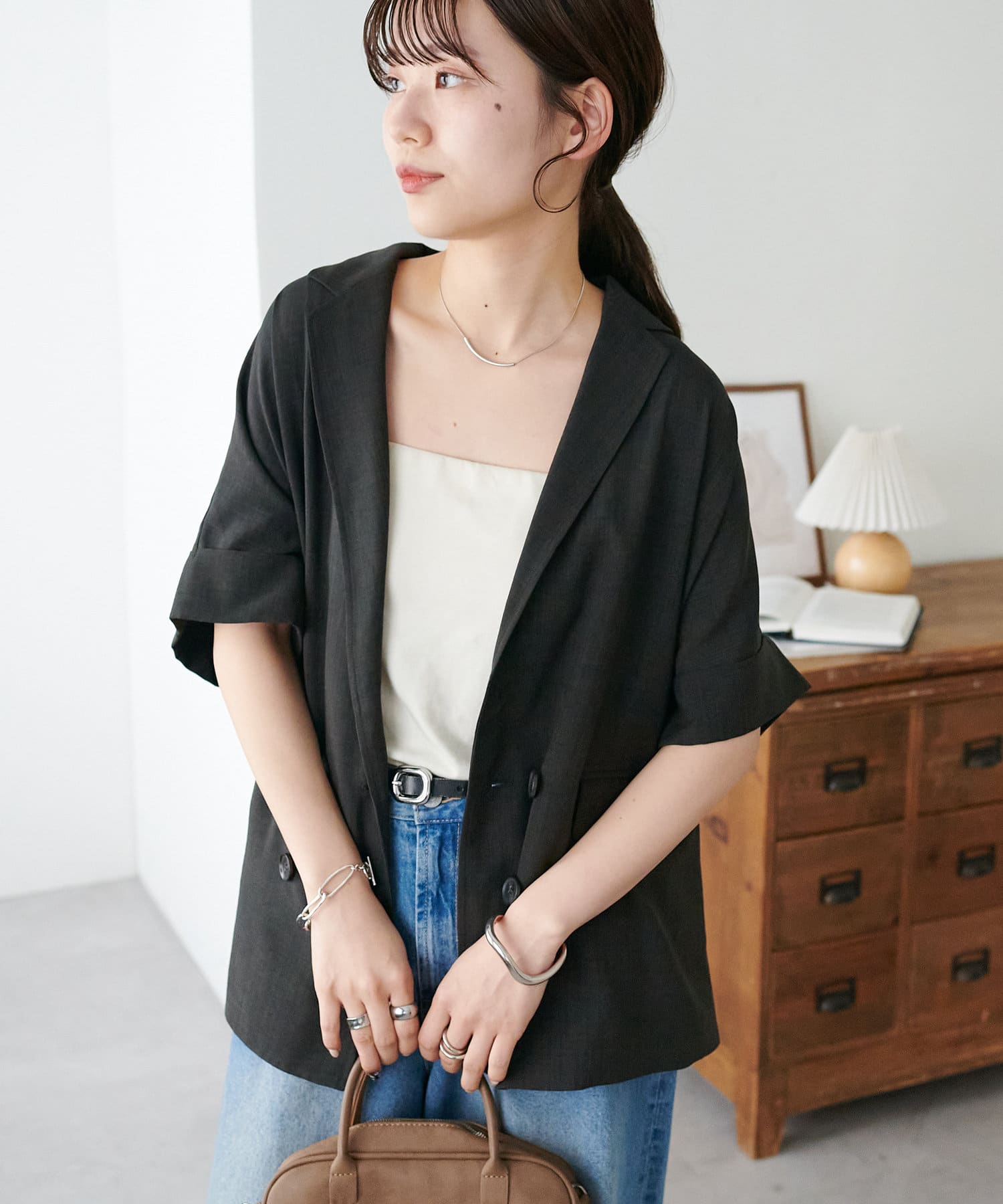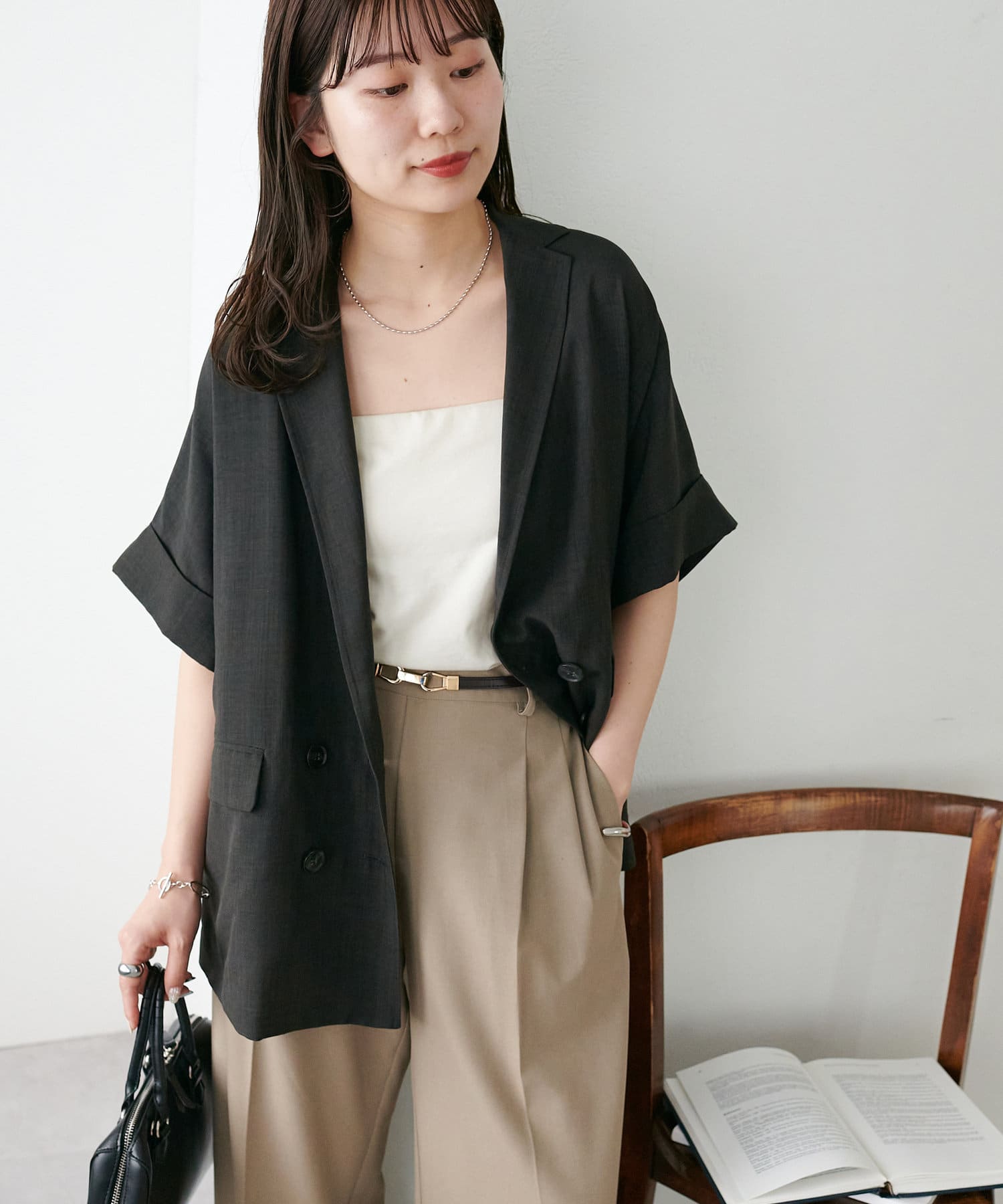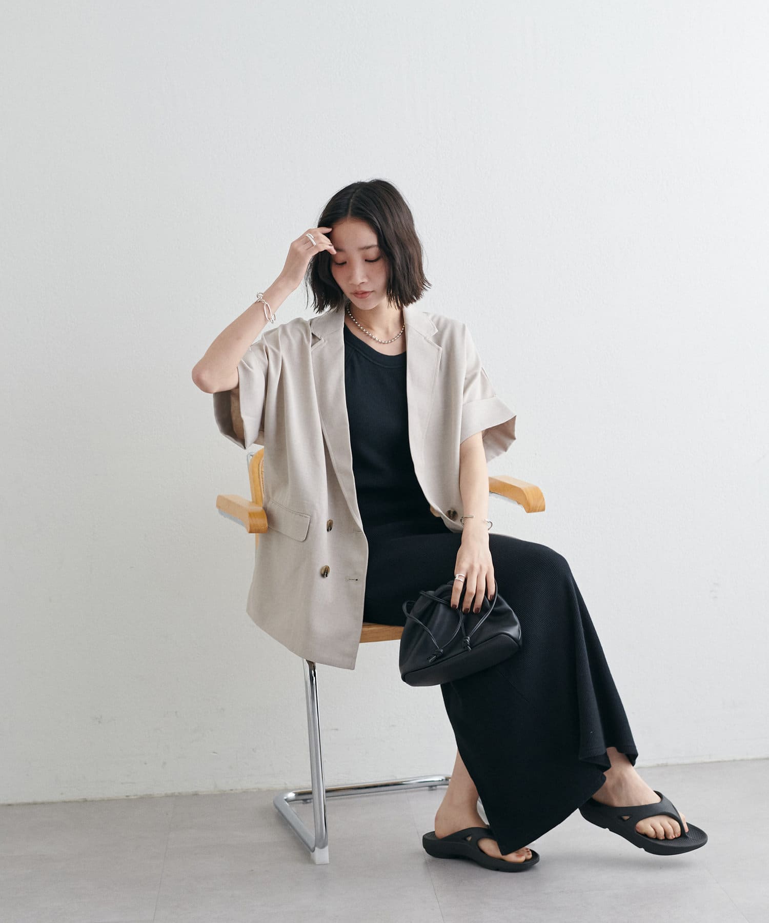 キャミワンピースやキャミ、タンクと合わせてキレイメコーデにも着こなせます〇