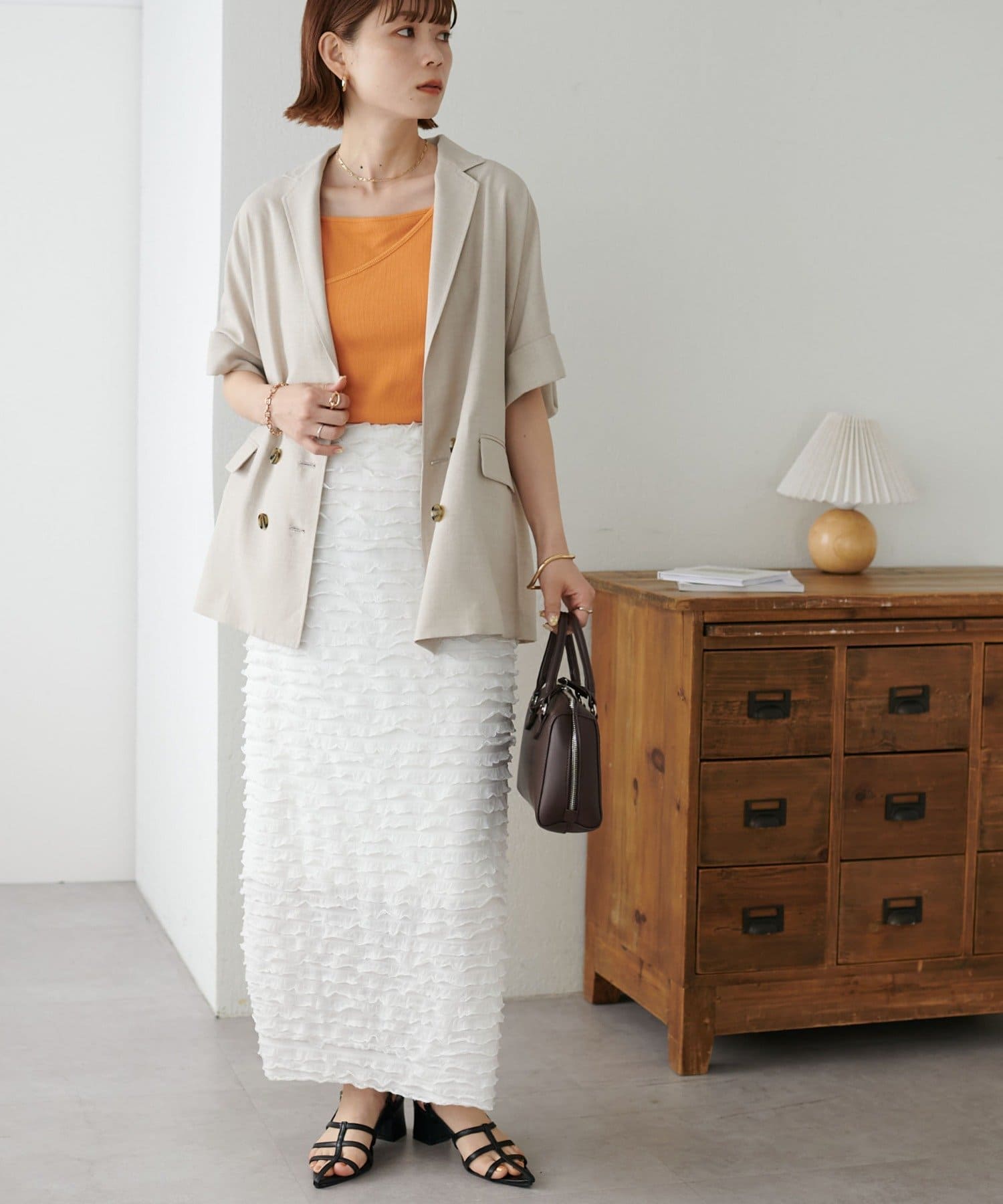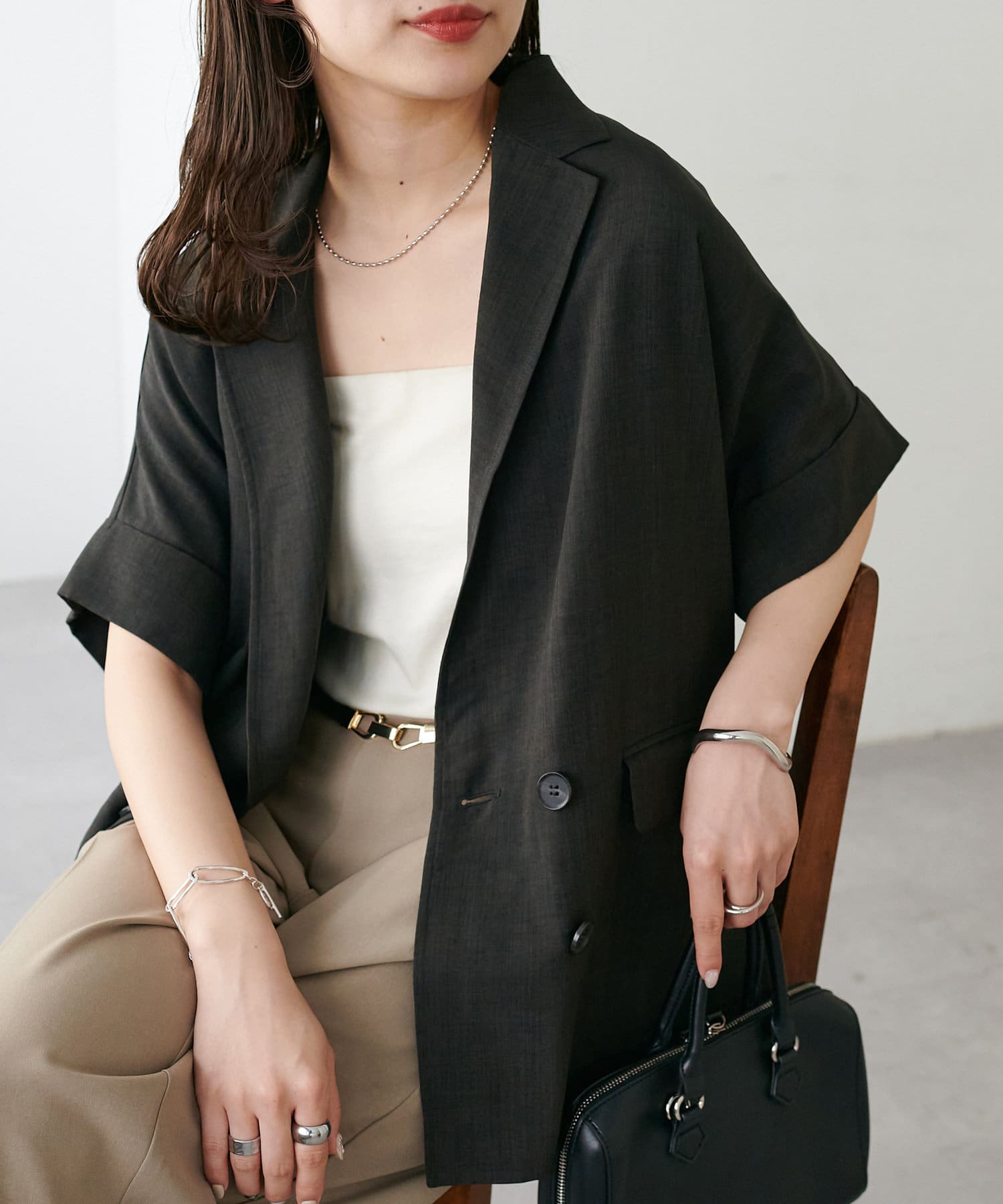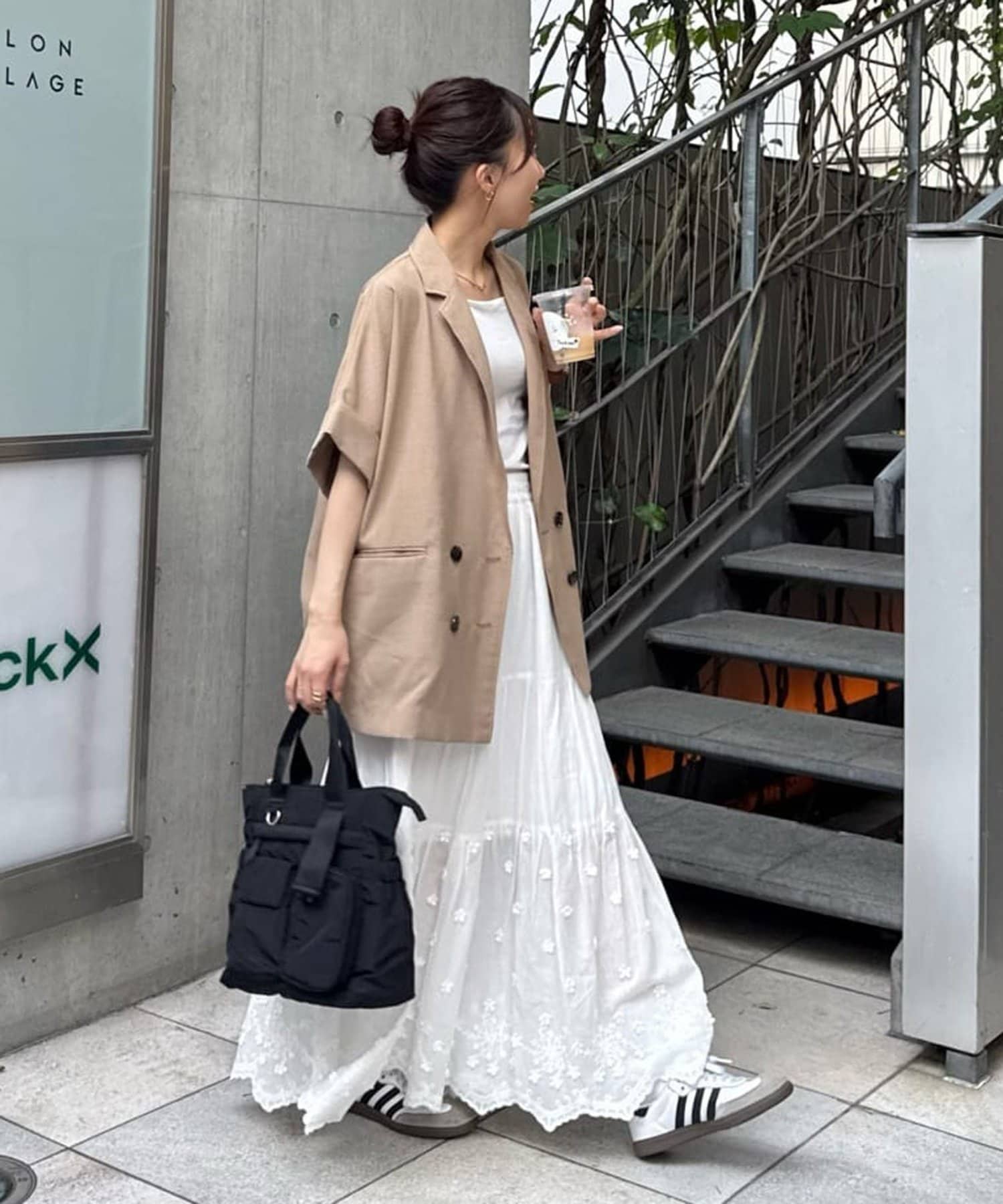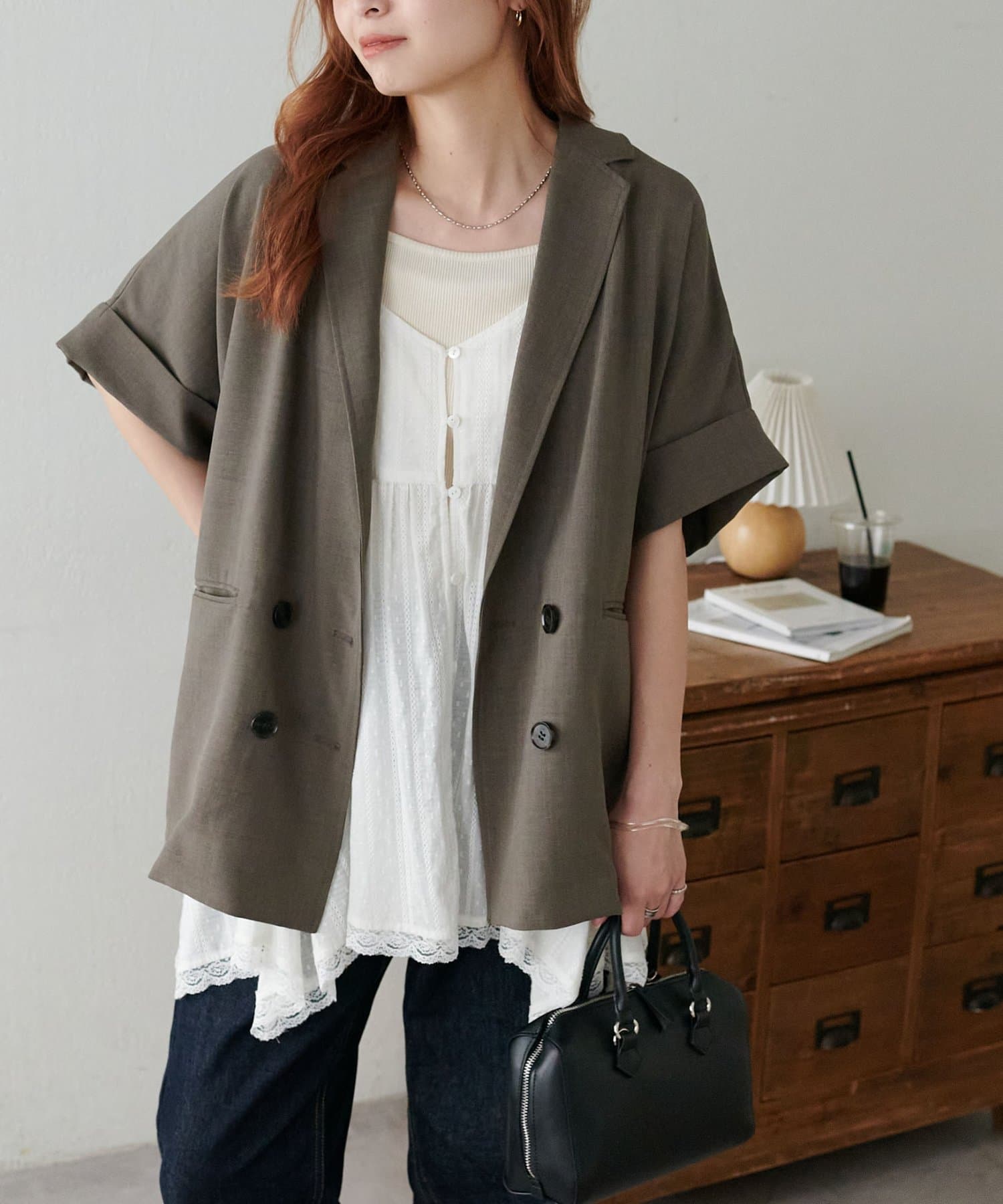 キャミワンピースやキャミ、タンクと合わせてキレイメコーデにも着こなせます〇