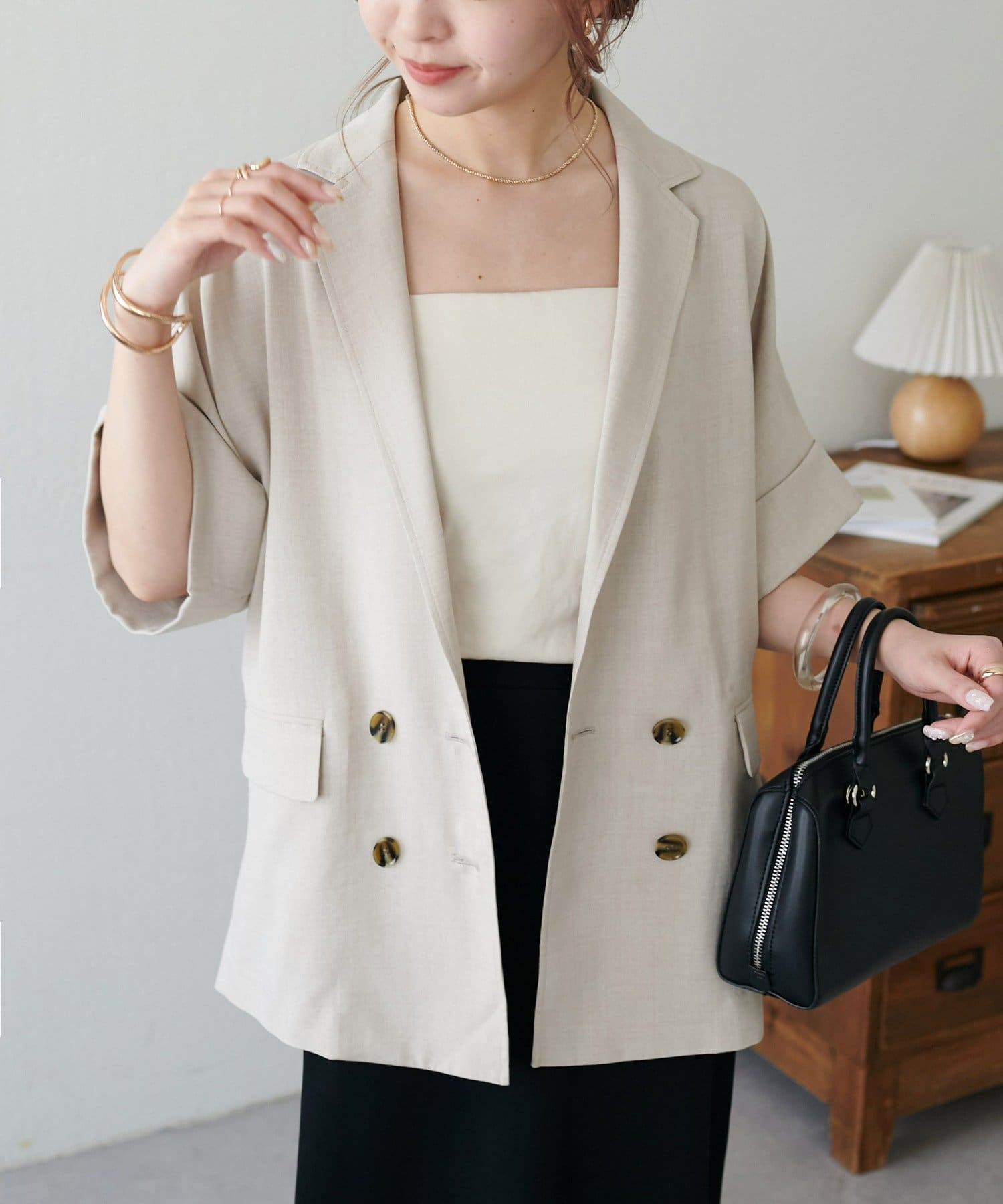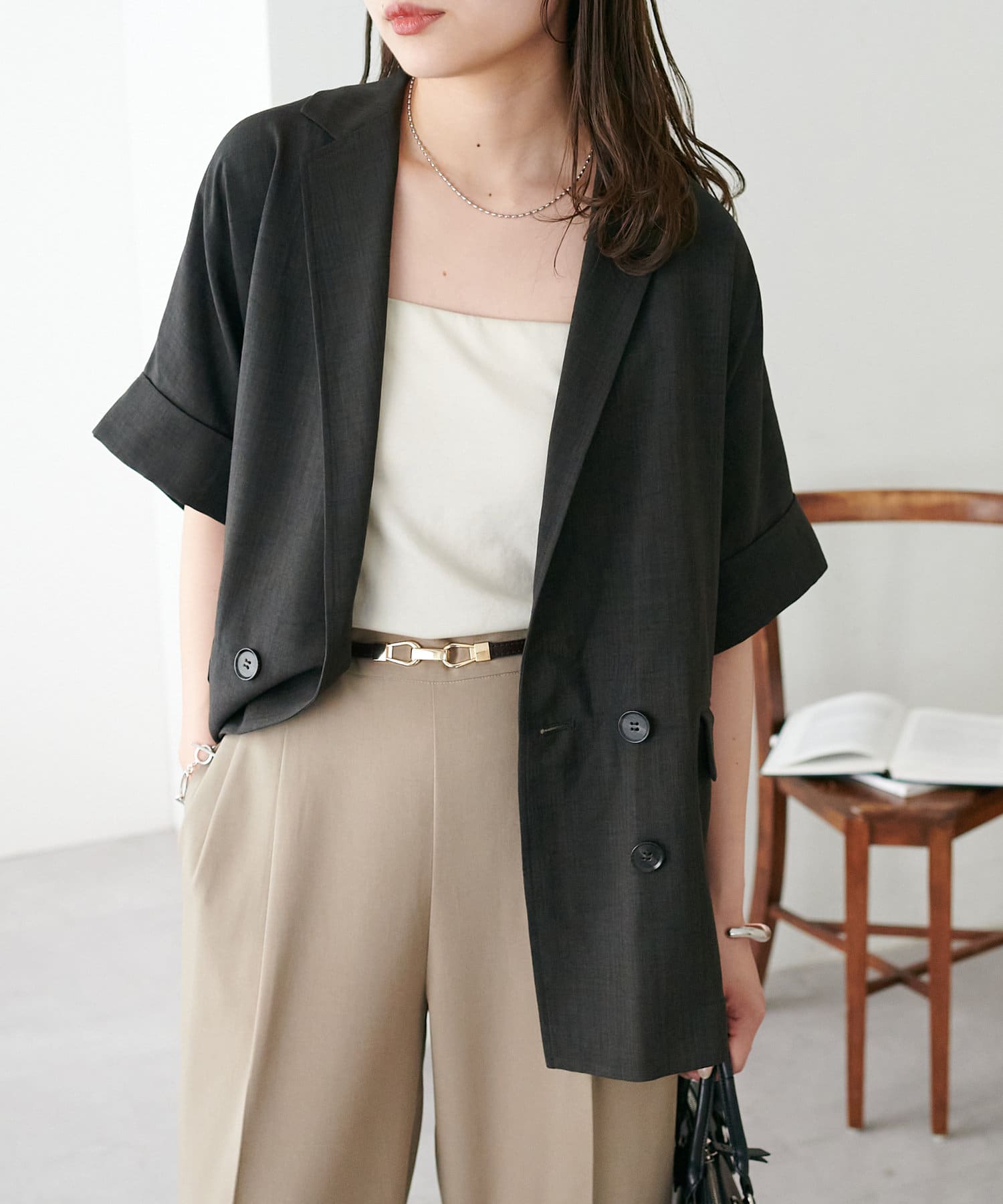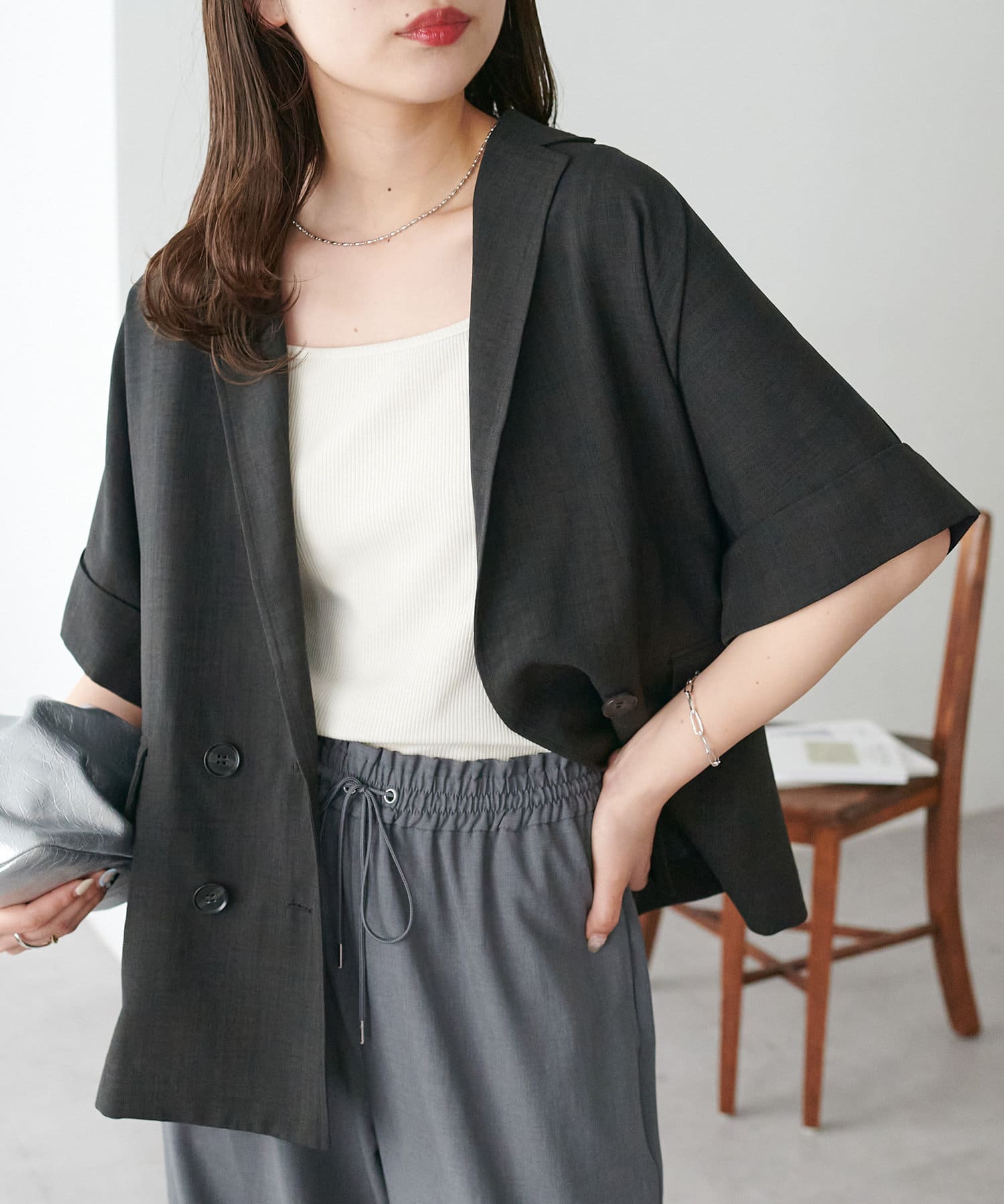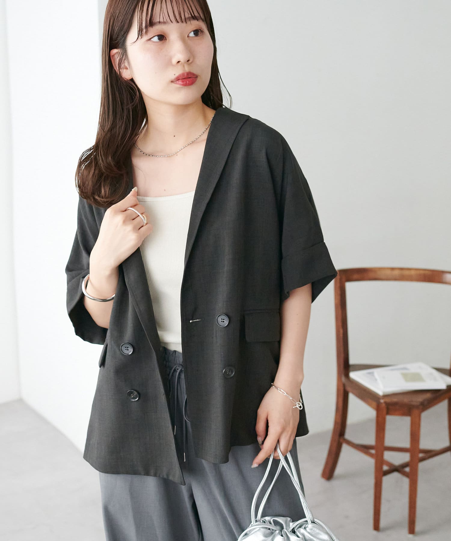 キャミワンピースやキャミ、タンクと合わせてキレイメコーデにも着こなせます〇