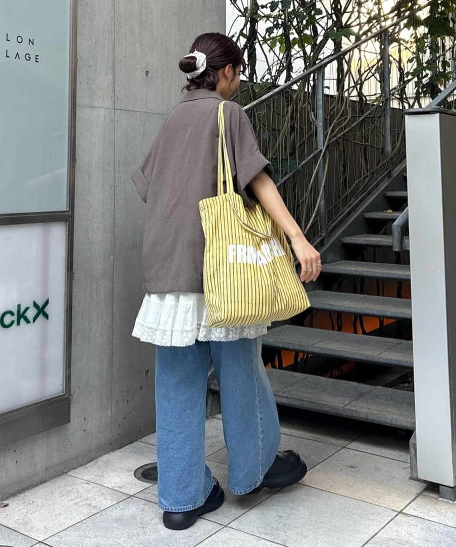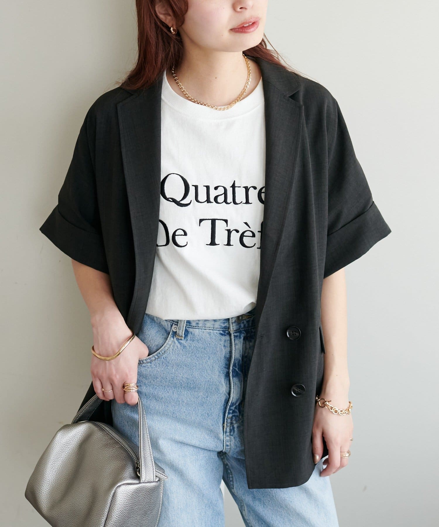 ゆとりのあるサイズ感なので、ロゴTシャツやデニムと合わせてるカジュアルな着こなしもおすすめです!
