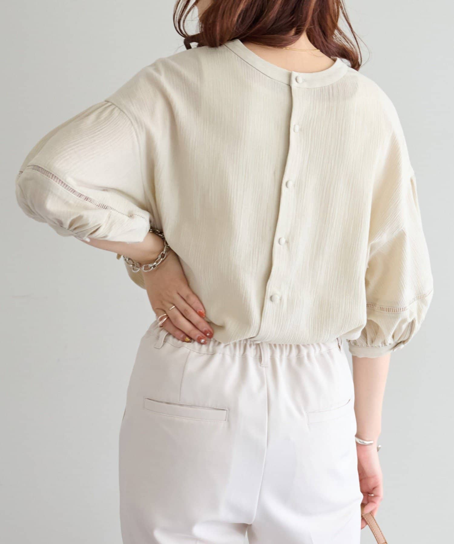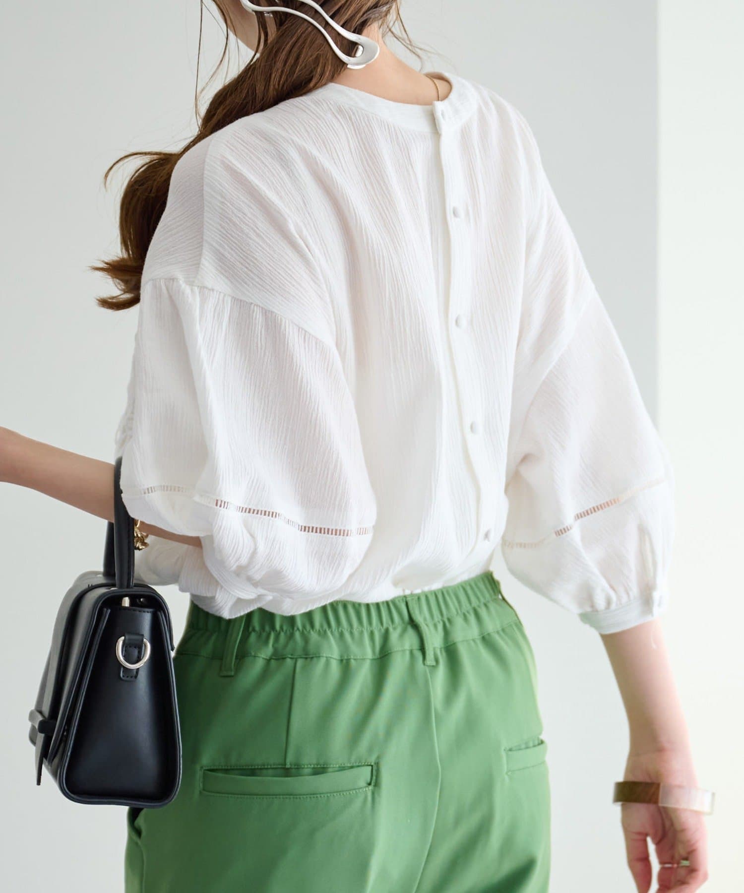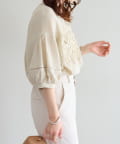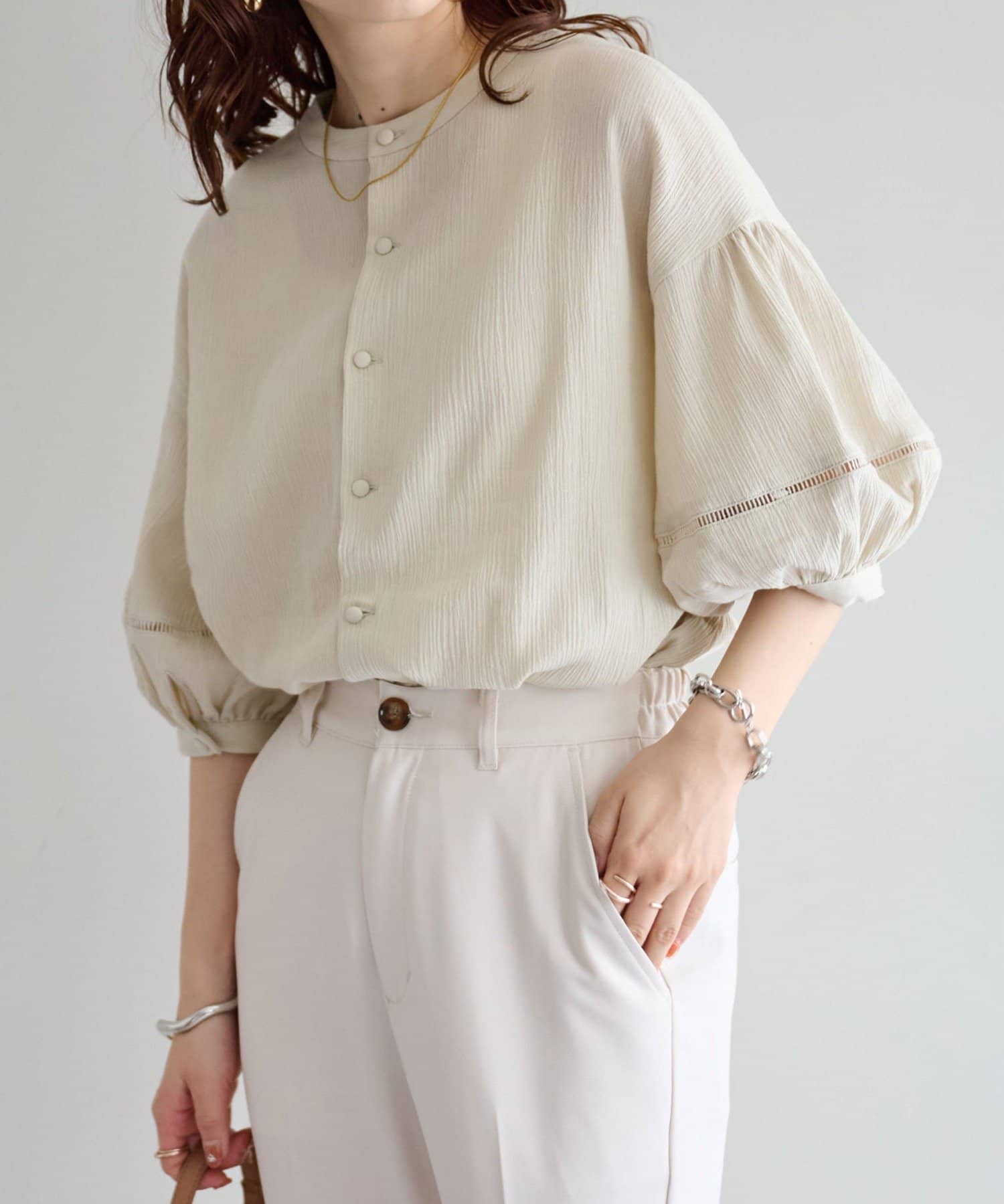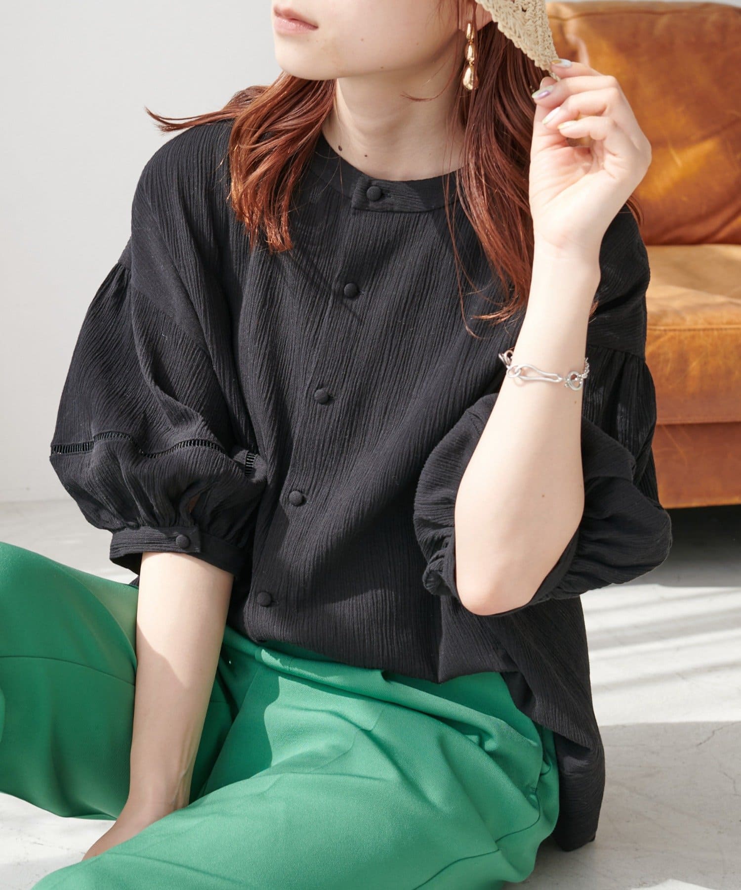 袖口にギャザーを施したふんわりとした袖デザインが、着こなしに華やかさをプラスします。
