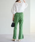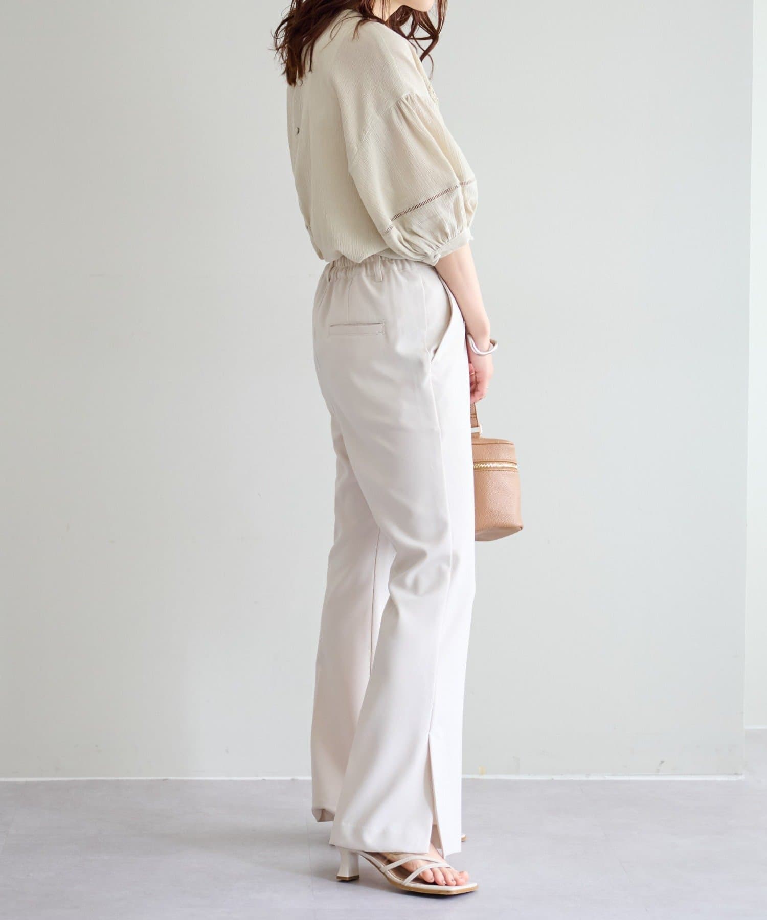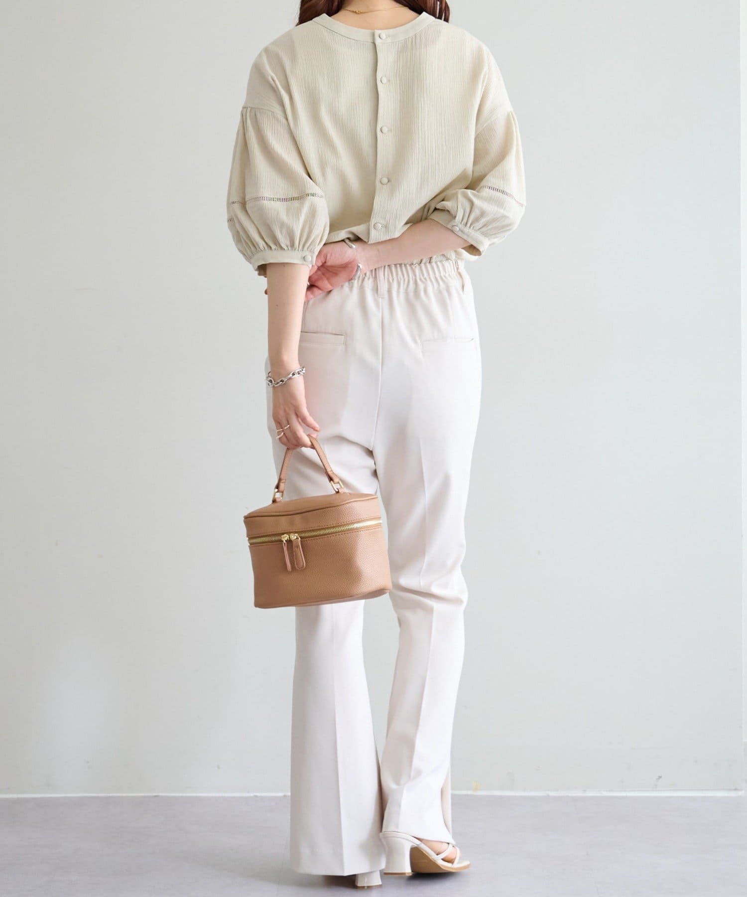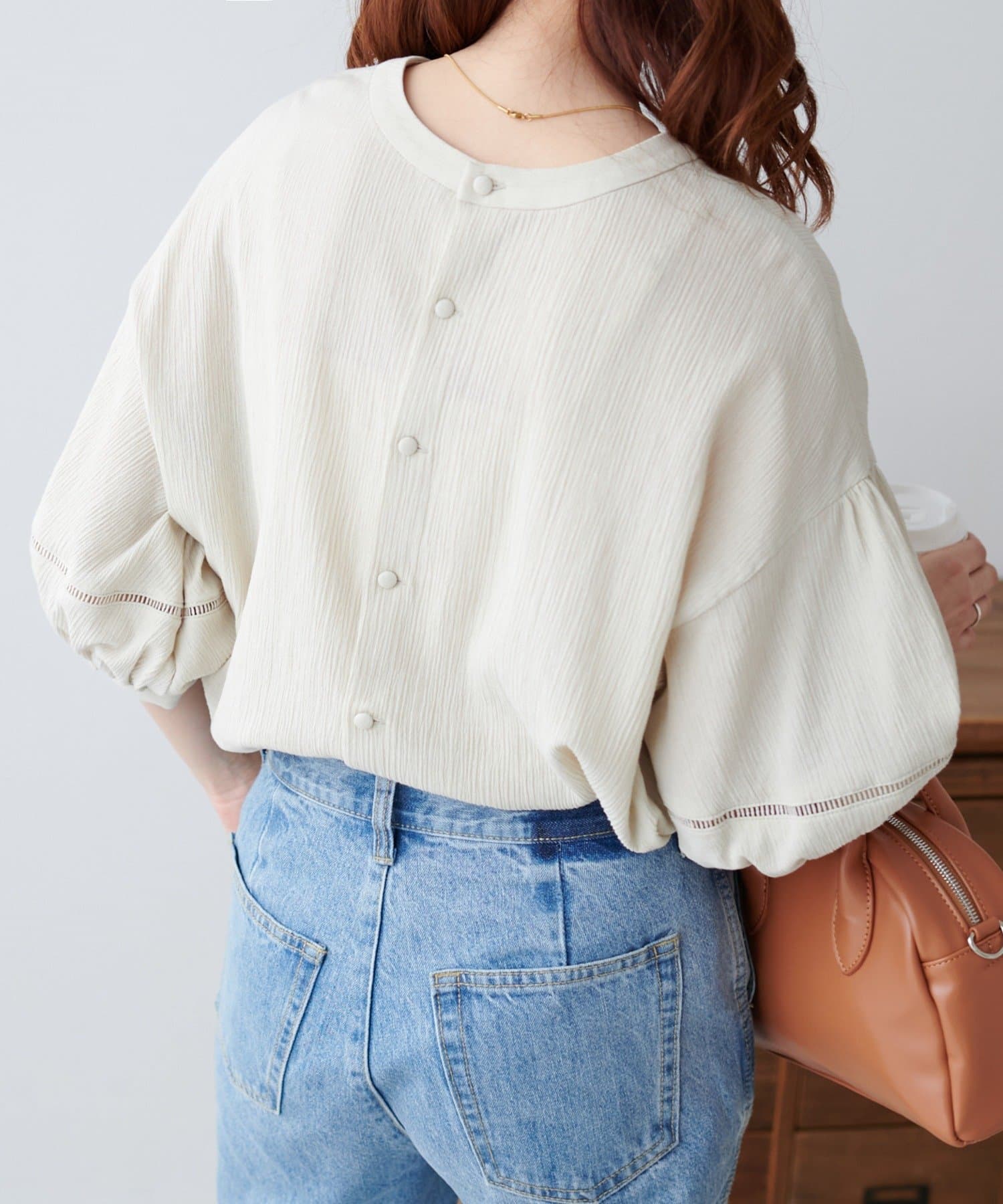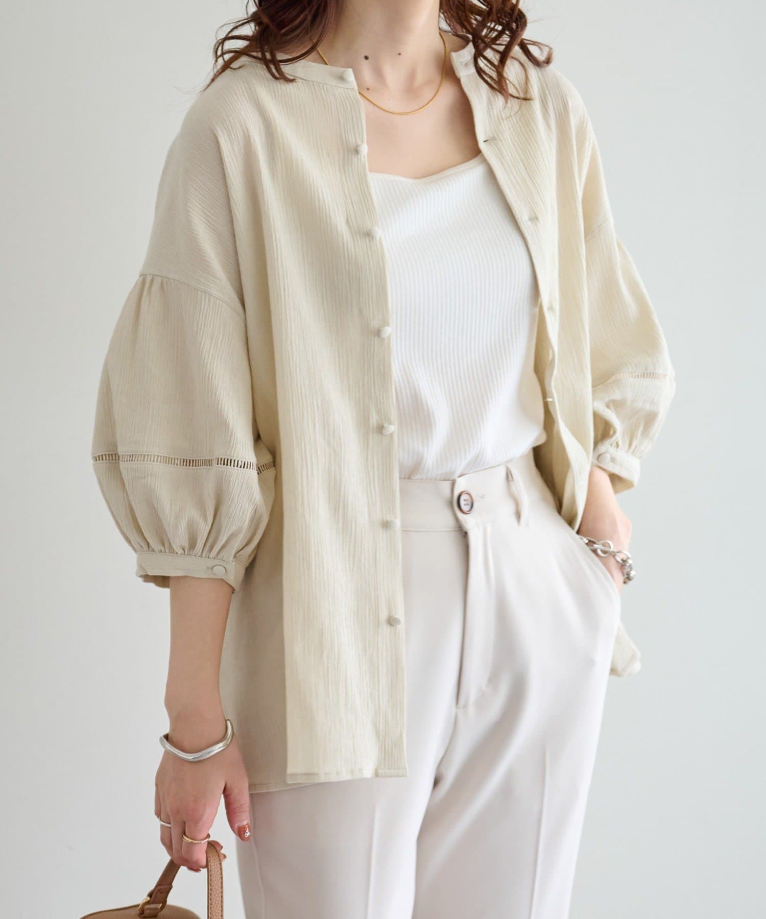 袖口にギャザーを施したふんわりとした袖デザインが、着こなしに華やかさをプラスします。