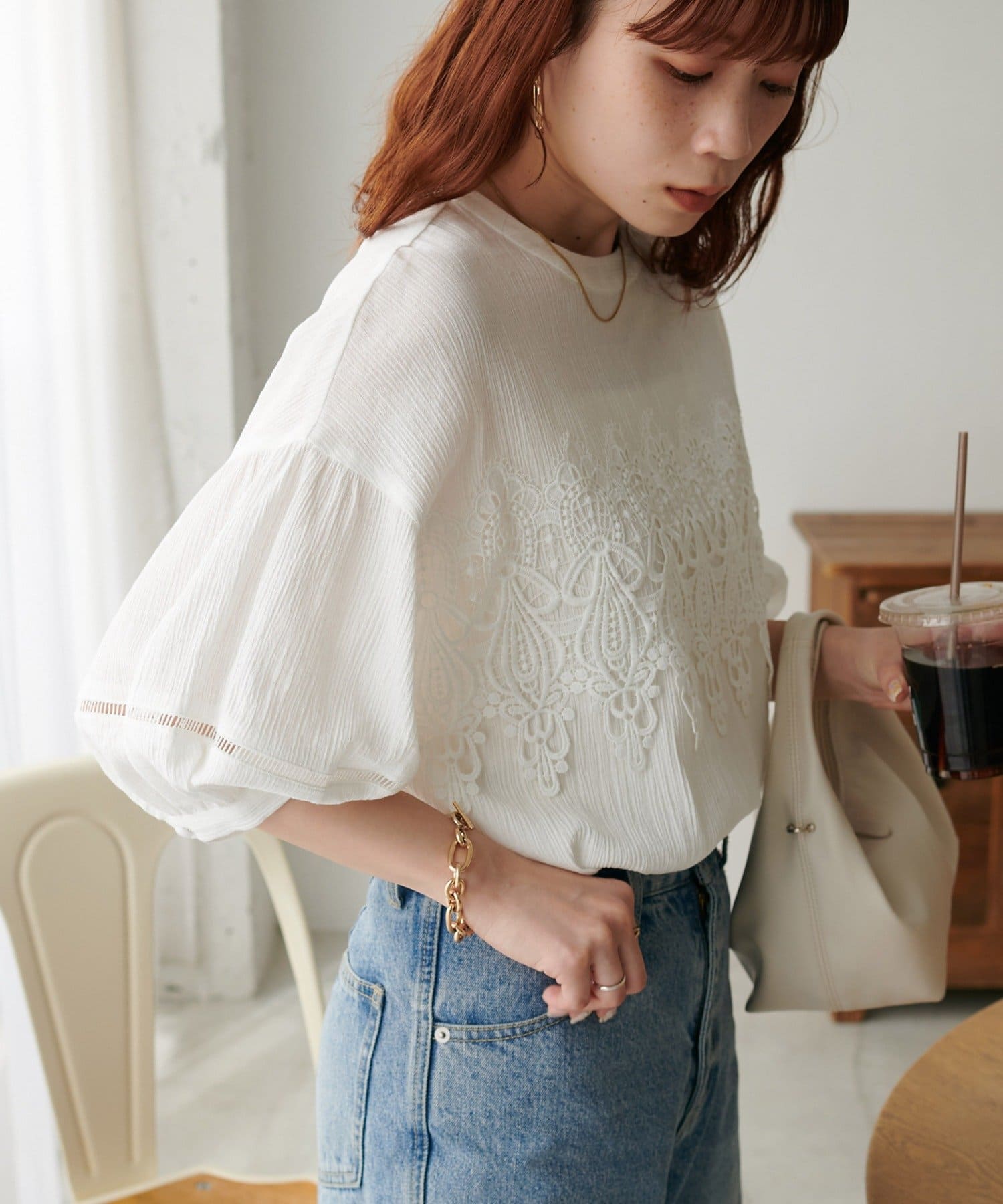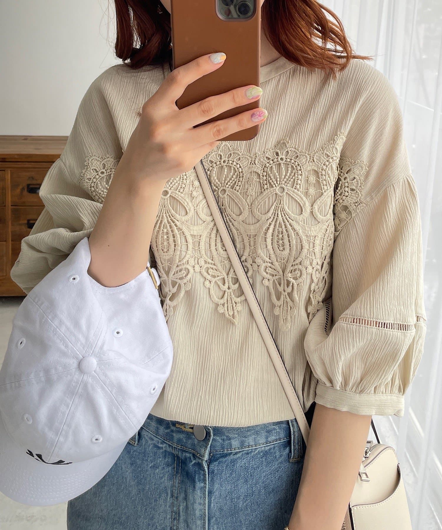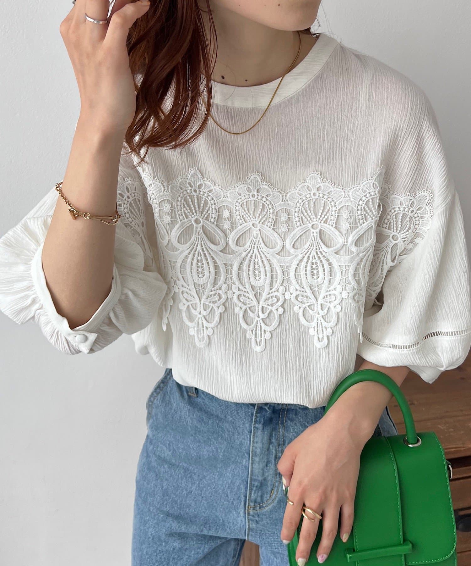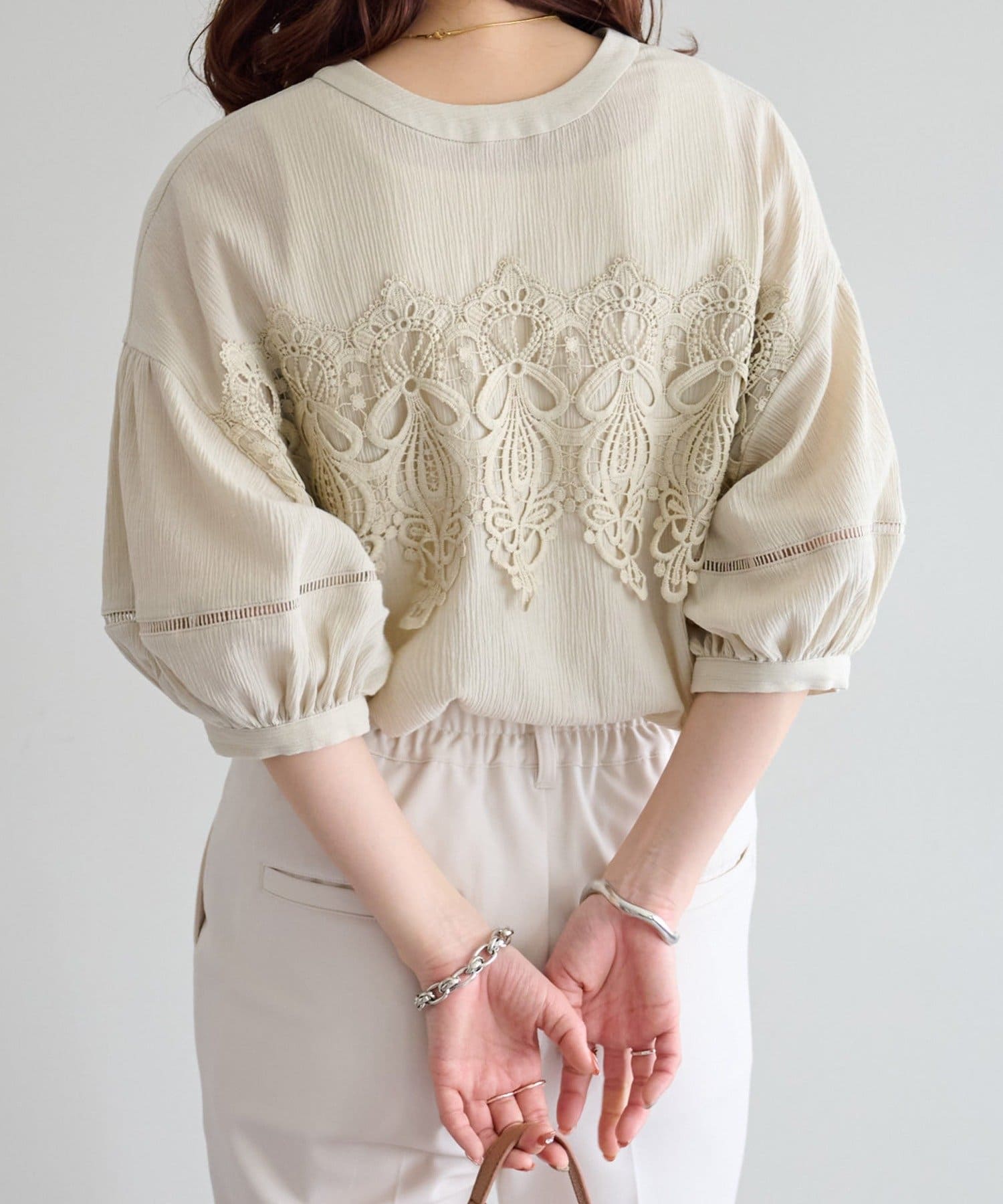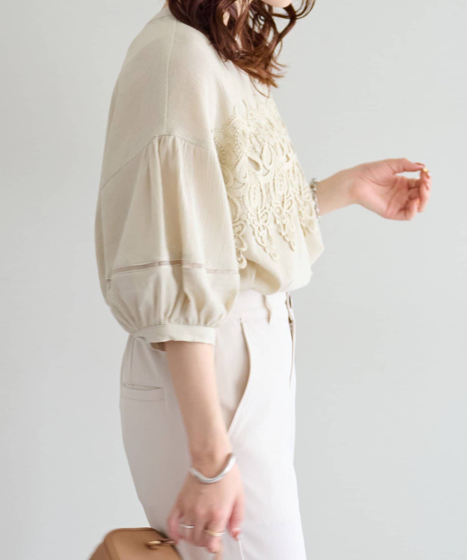 TOP > DISCOAT > レディース > トップス > シャツ/ブラウス(ボタン) > 【夏の着映えアイテム】2WAYレースモチーフヨウリュウブラウス5分袖《WEB限定》