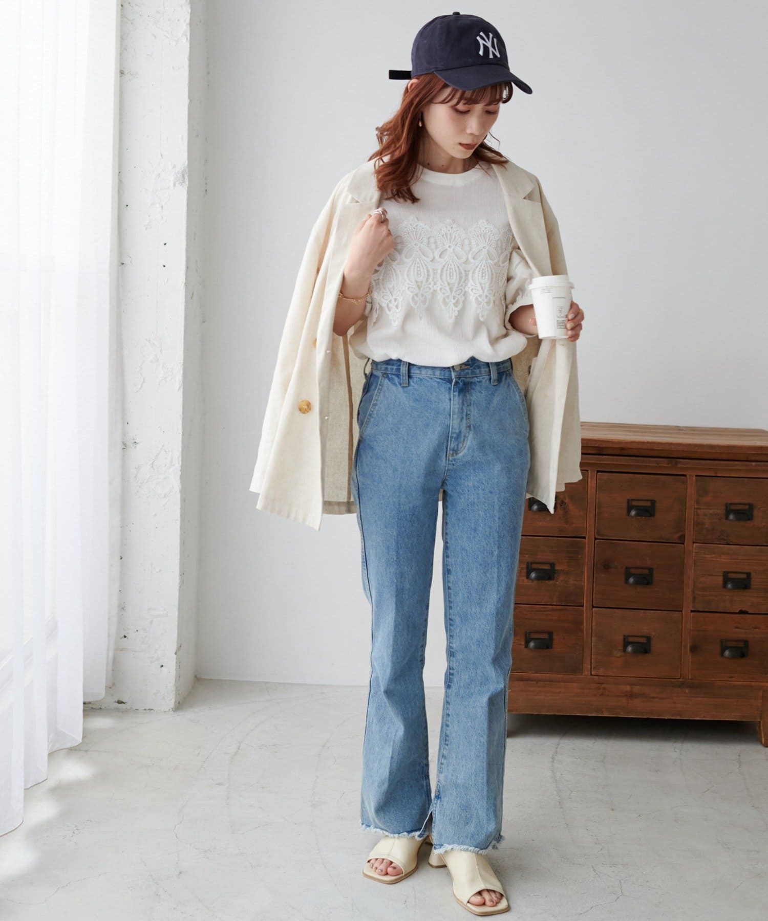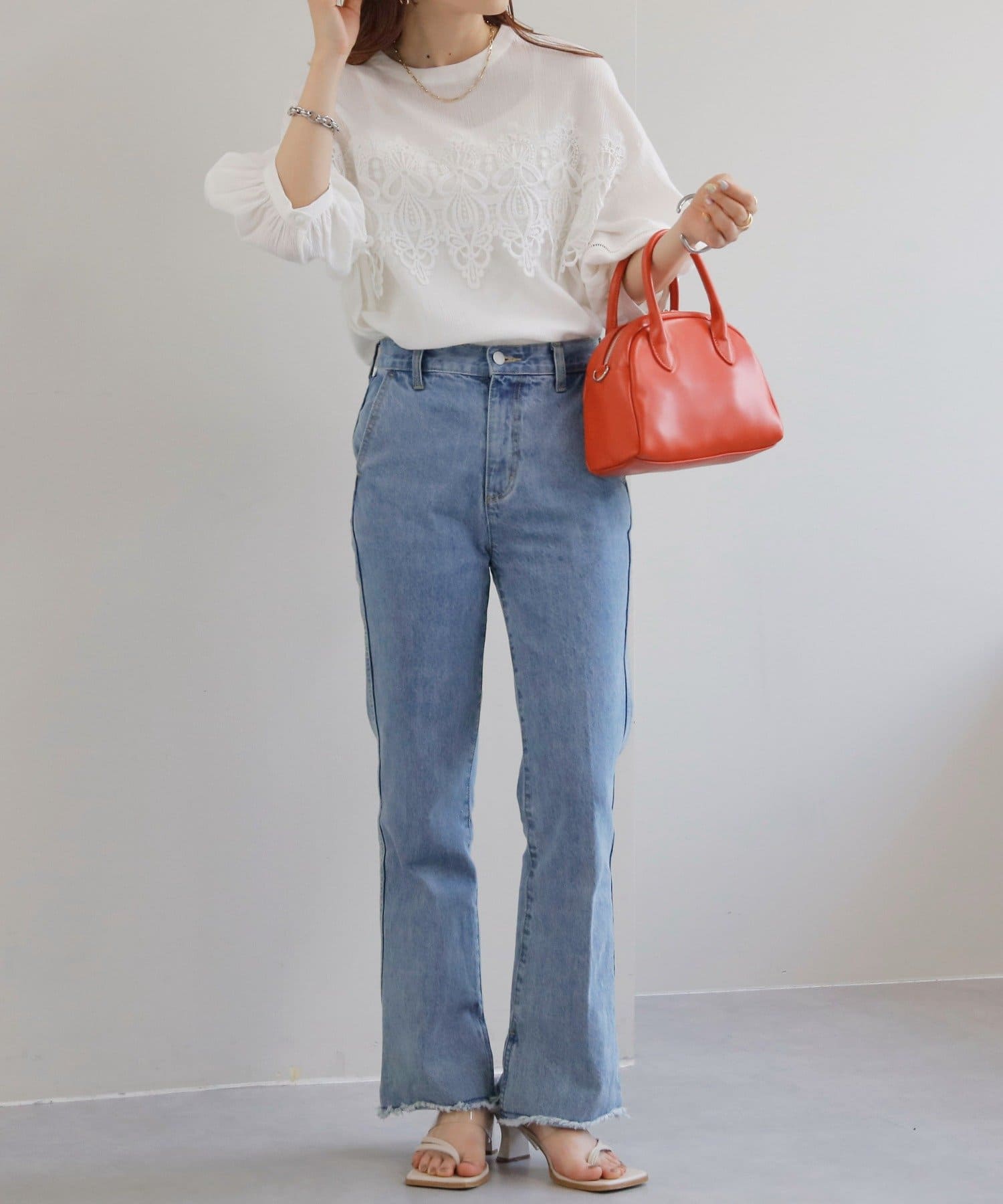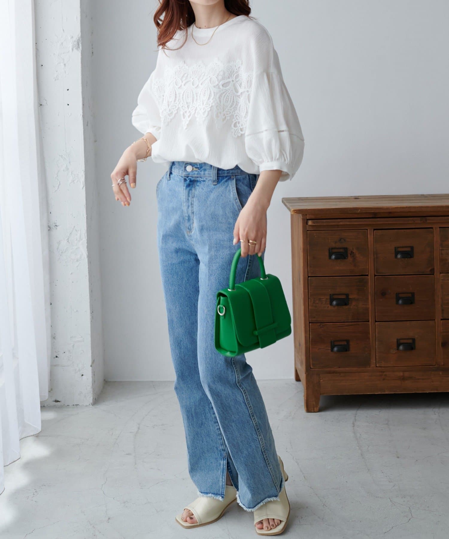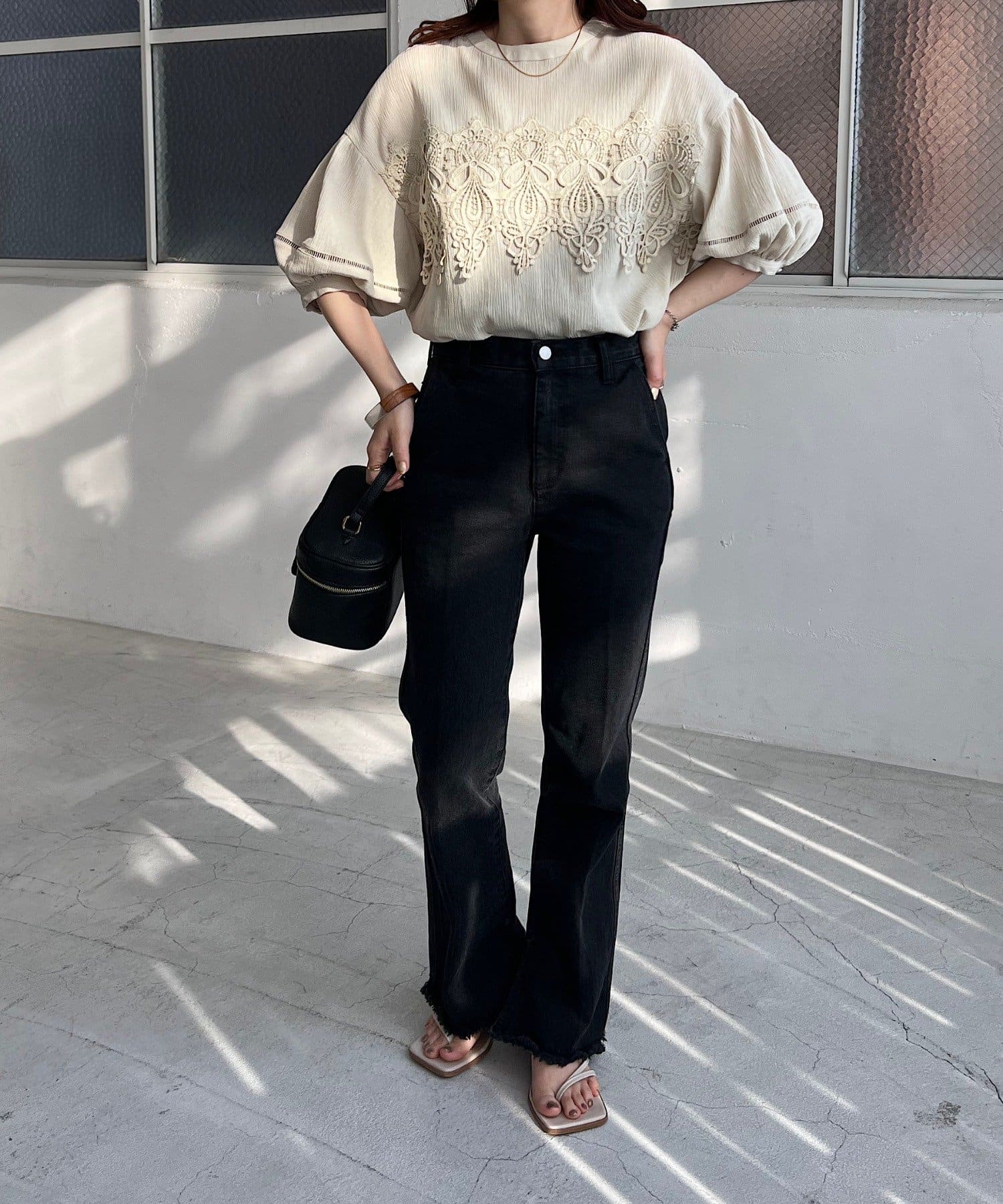 刺繍を前にして華やかさを楽しんだり、シンプルな面を前にして抜け感のあるスタイルに仕上げたり着こなしを楽しめます♪