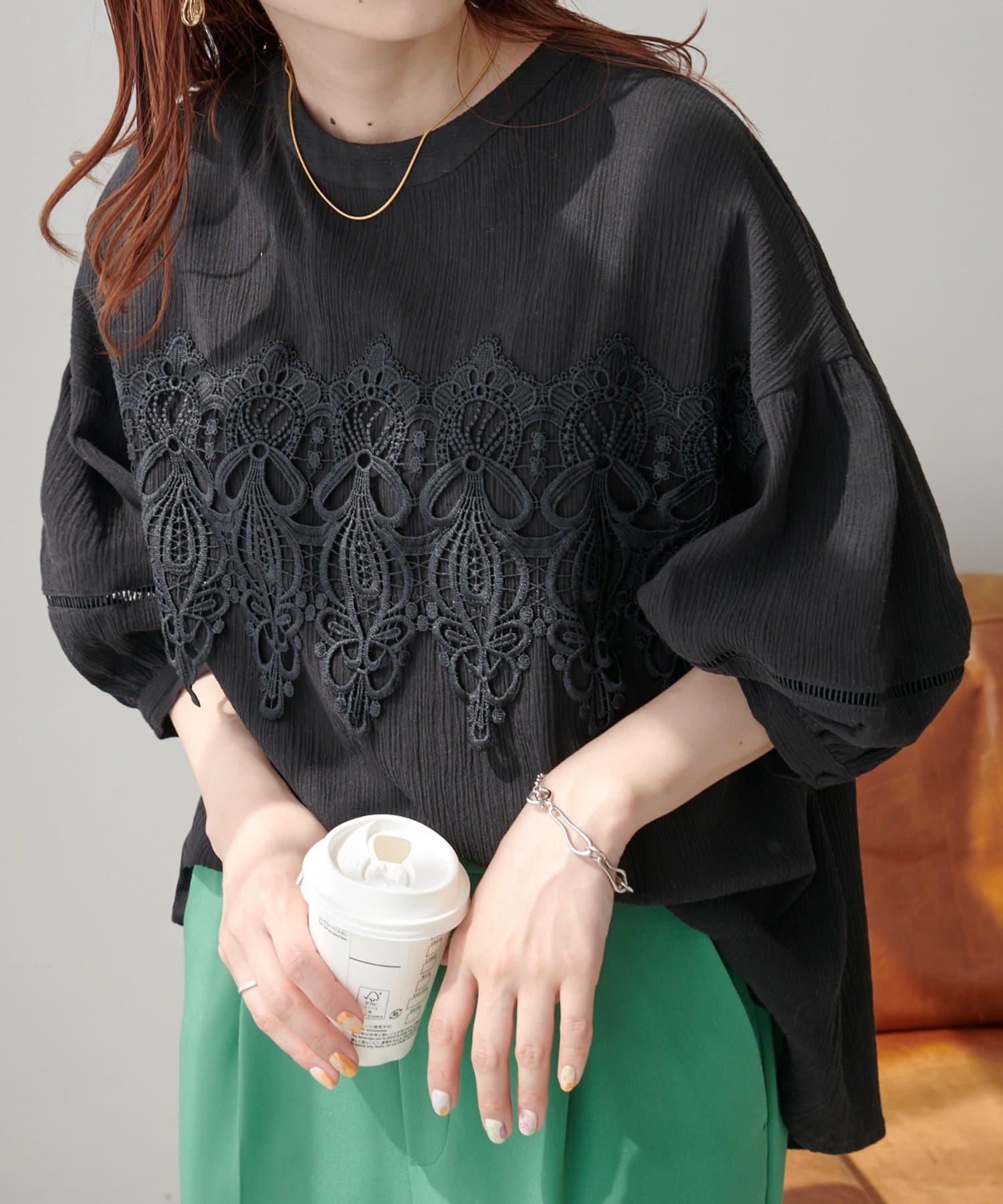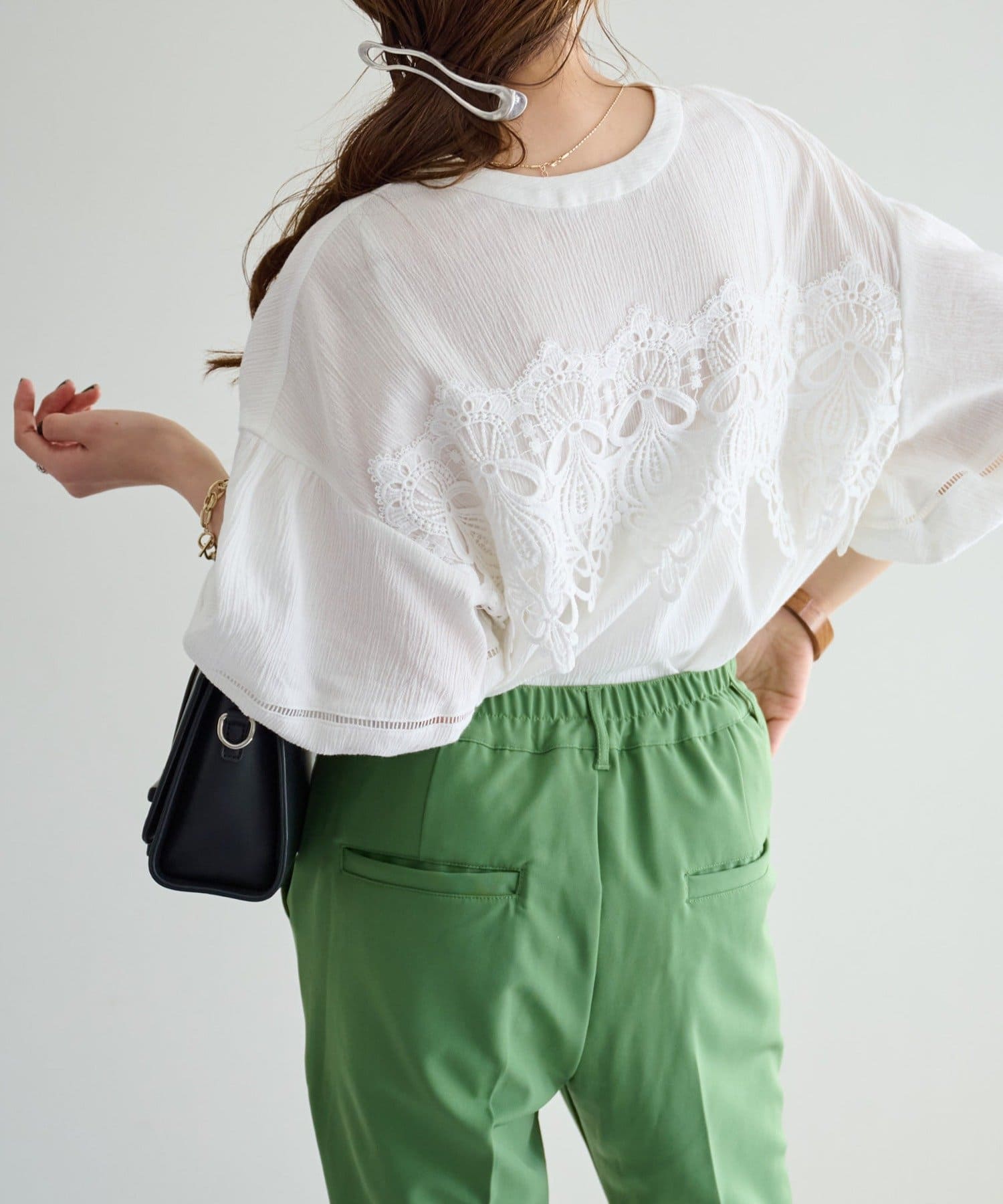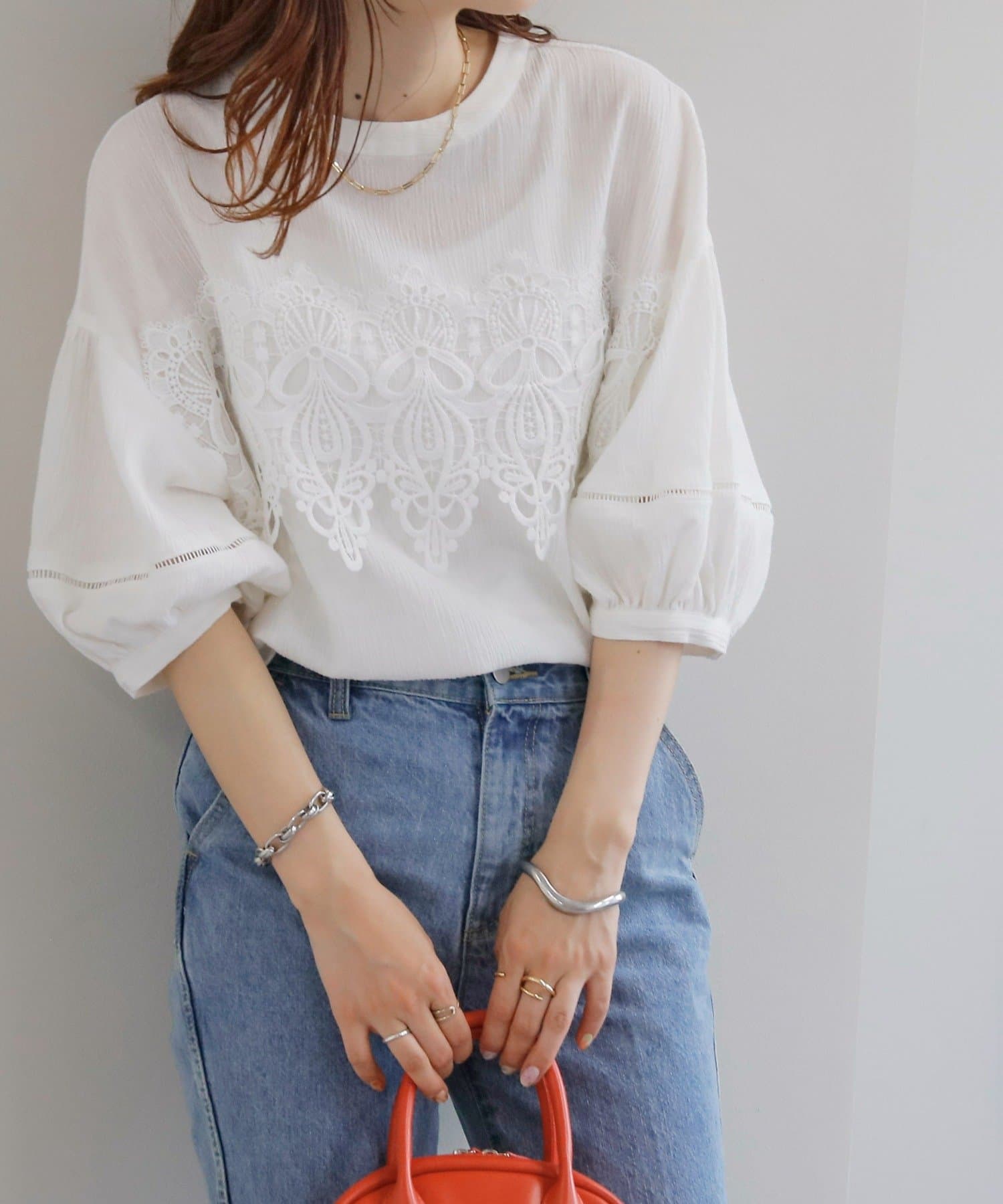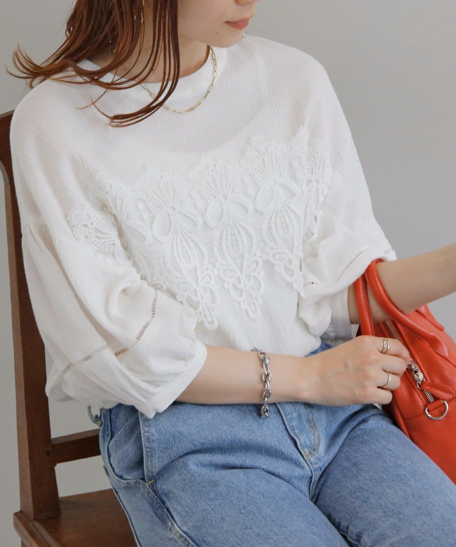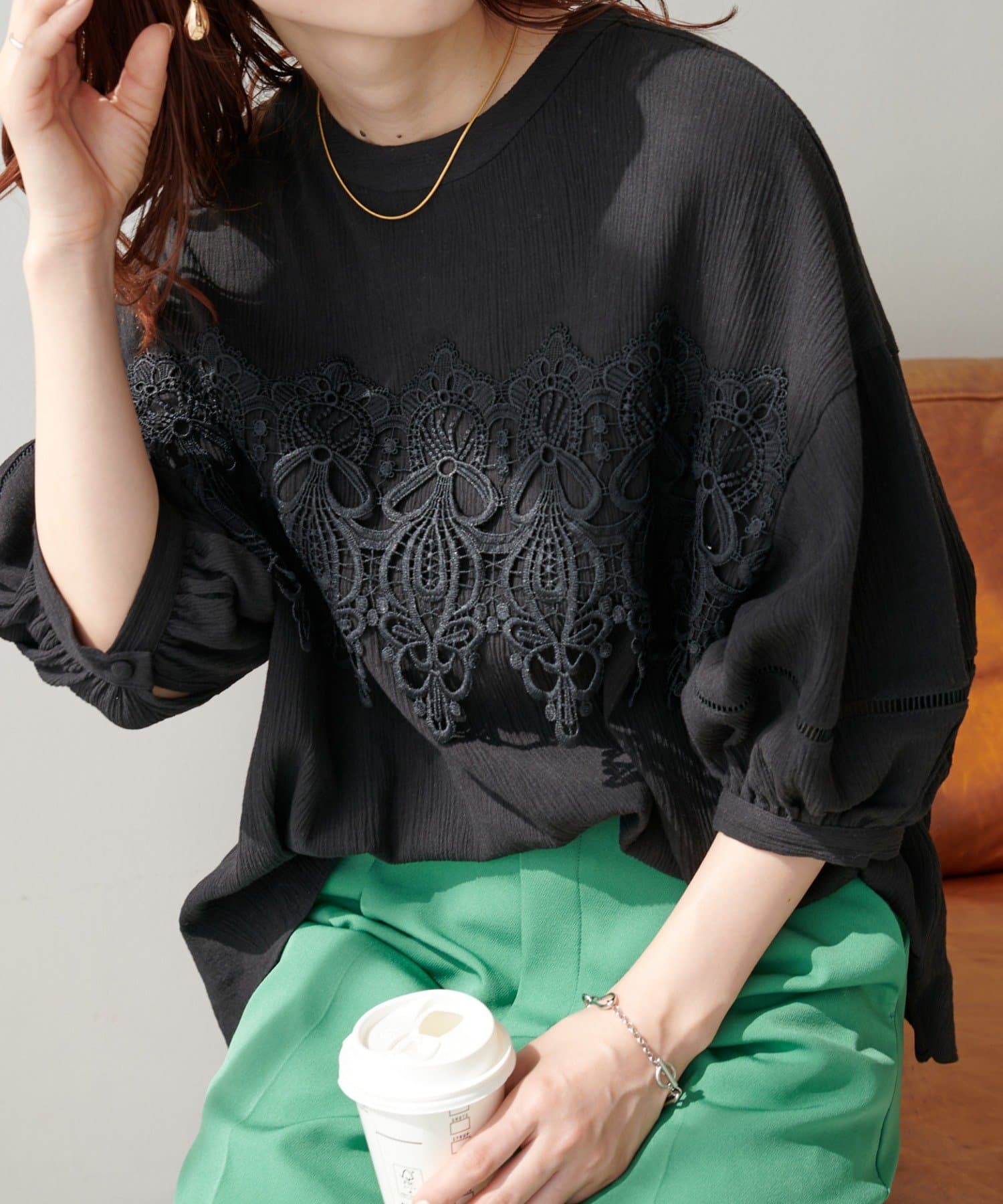 • DISCOAT(ディスコート) 【夏の着映えアイテム】2WAYレースモチーフヨウリュウブラウス5分袖《WEB限定》