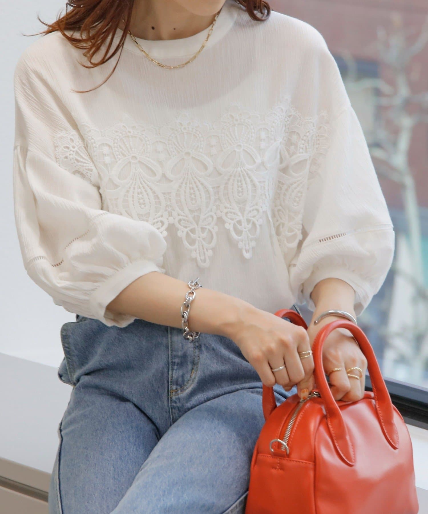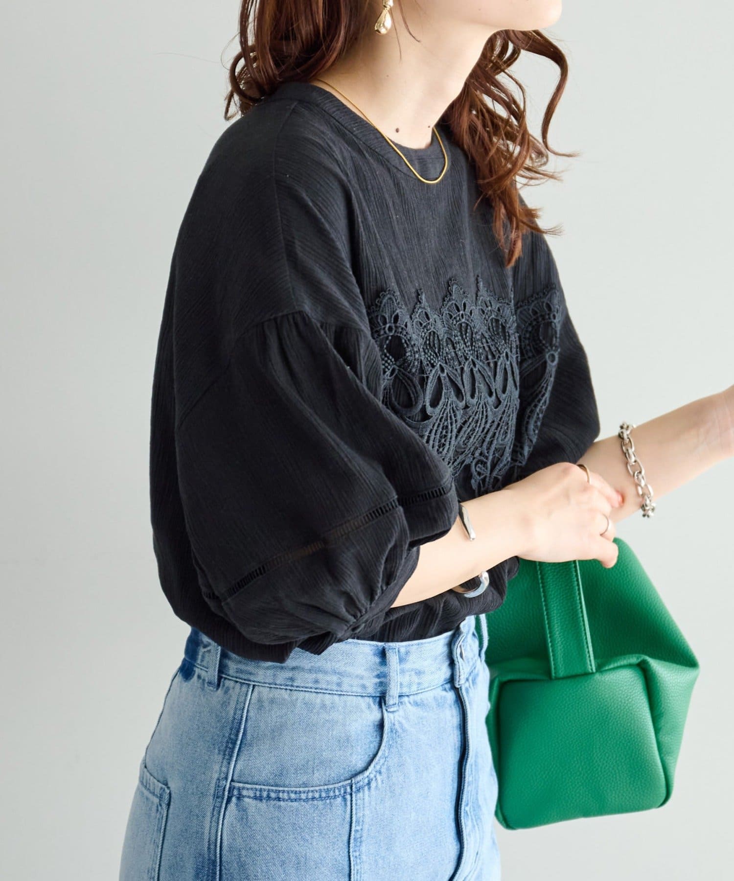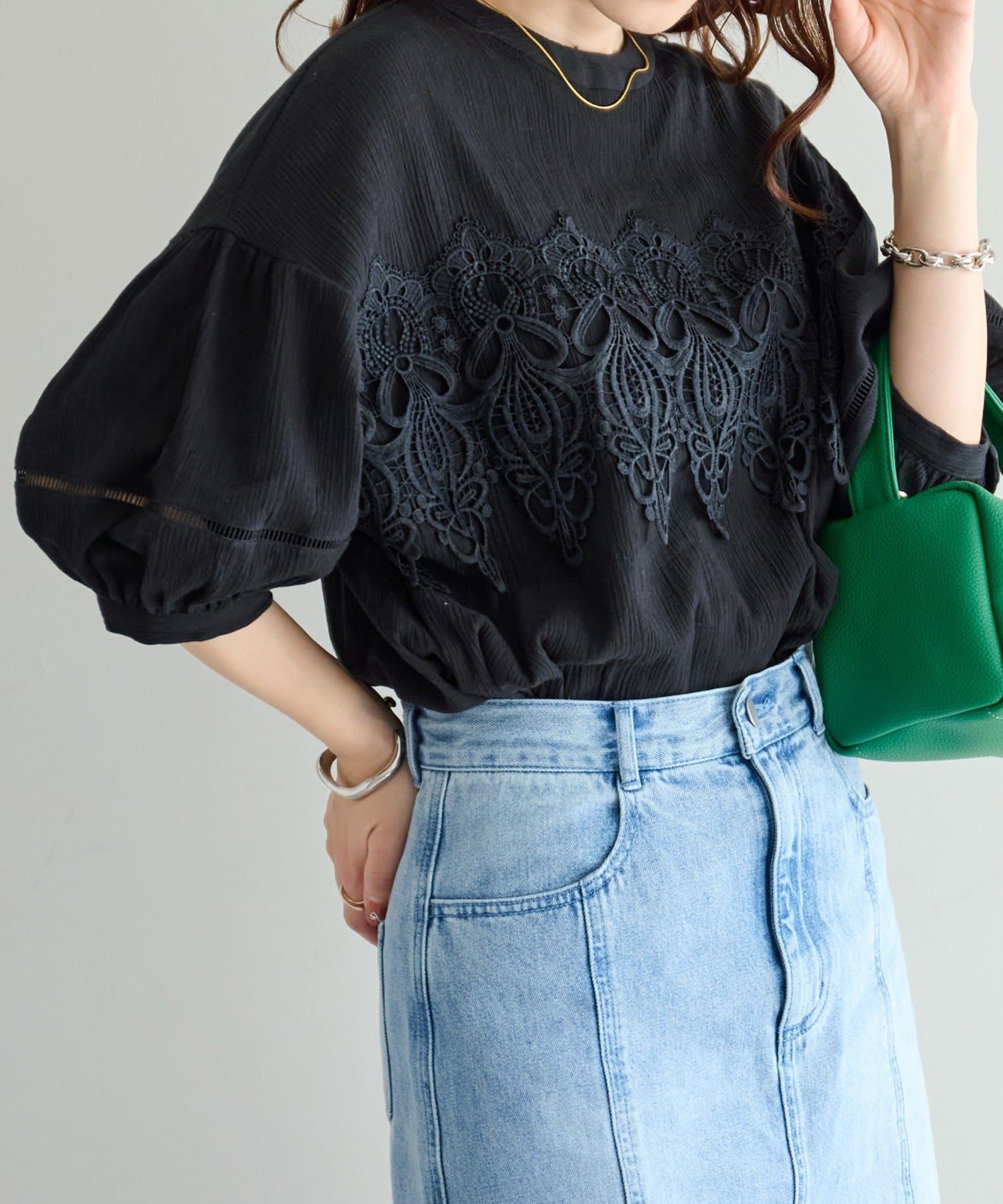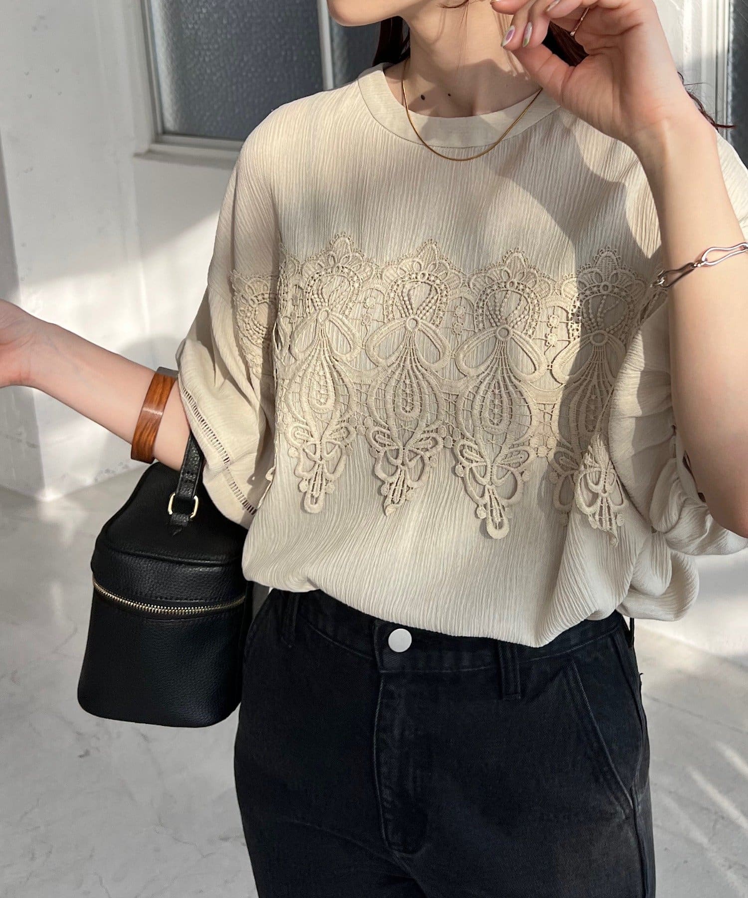• DISCOAT(ディスコート) 【夏の着映えアイテム】2WAYレースモチーフヨウリュウブラウス5分袖《WEB限定》