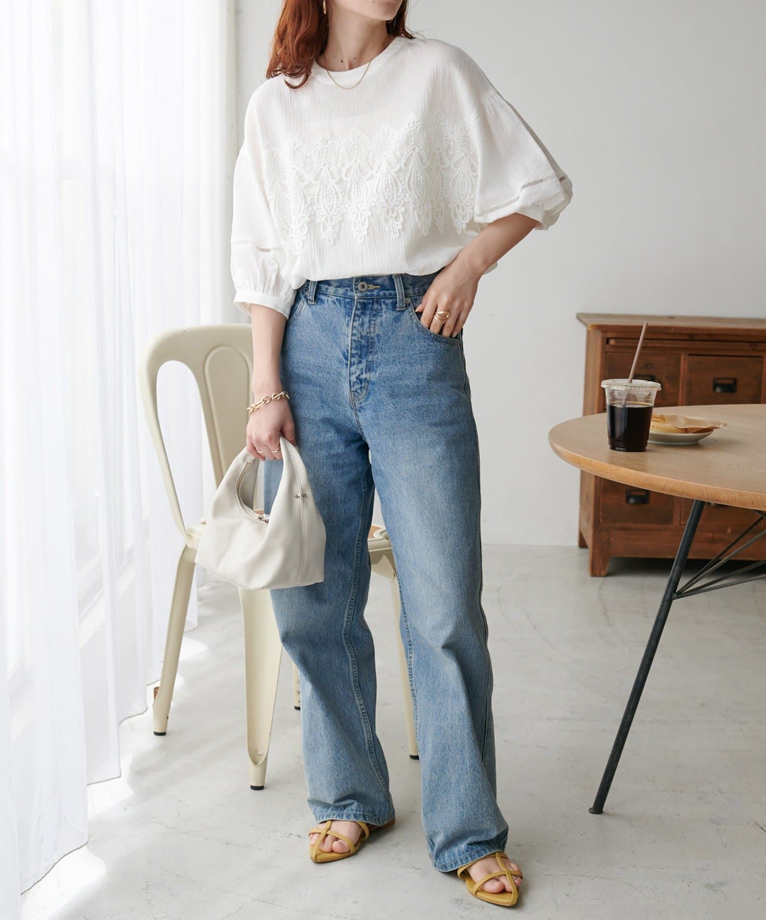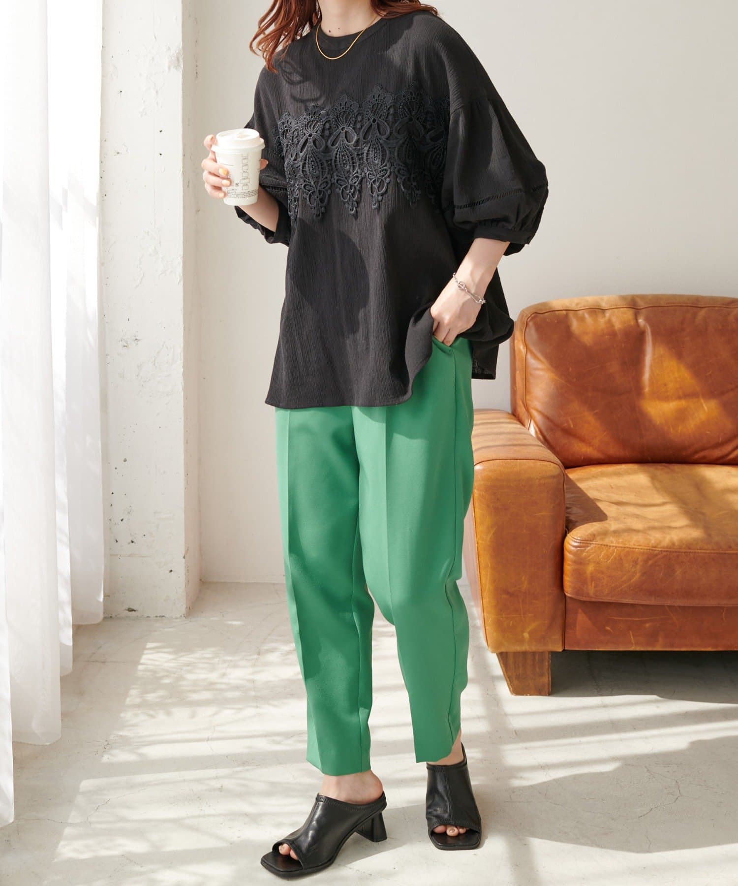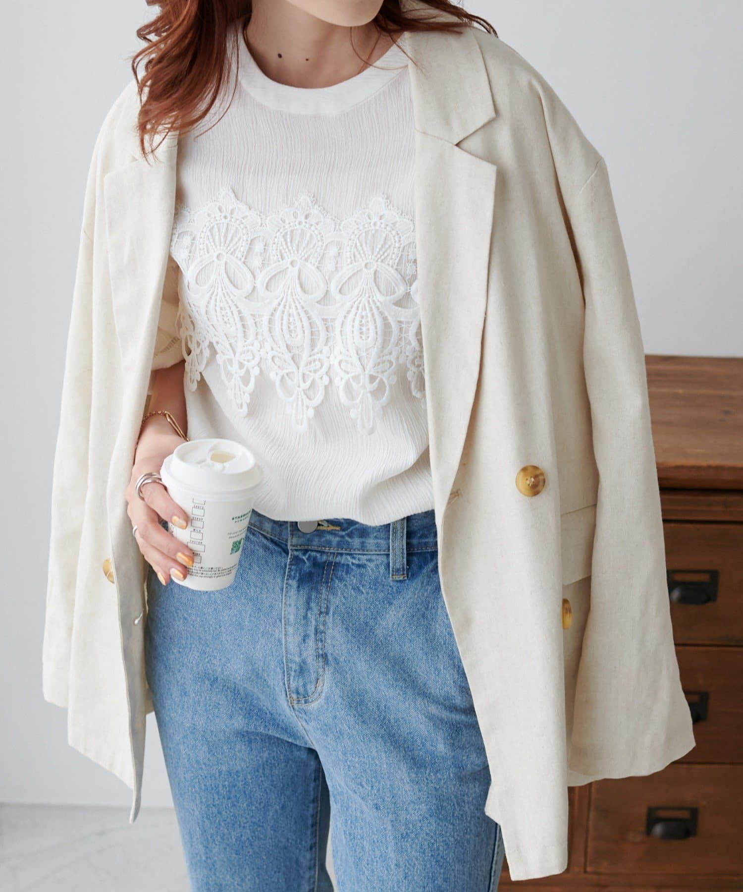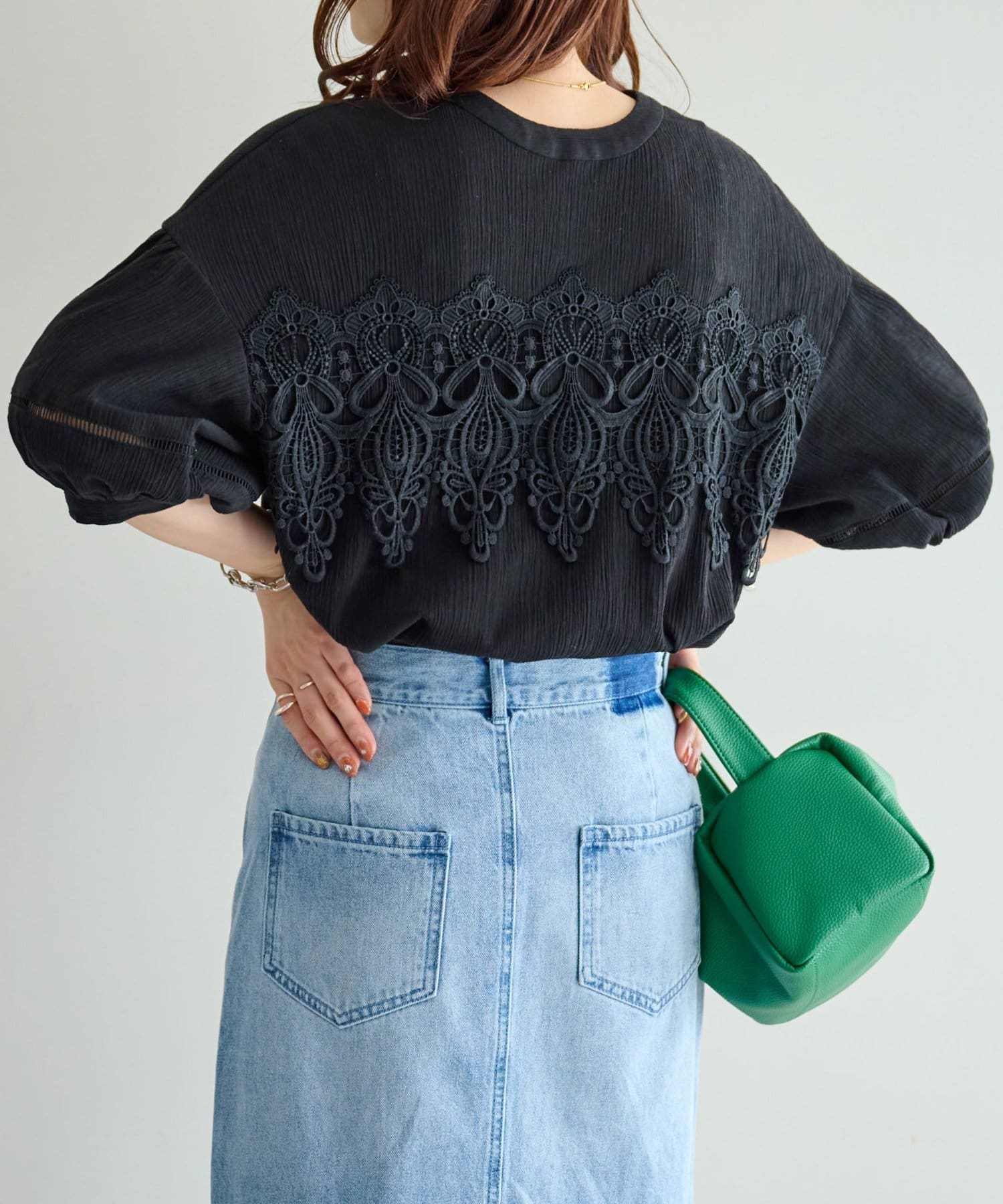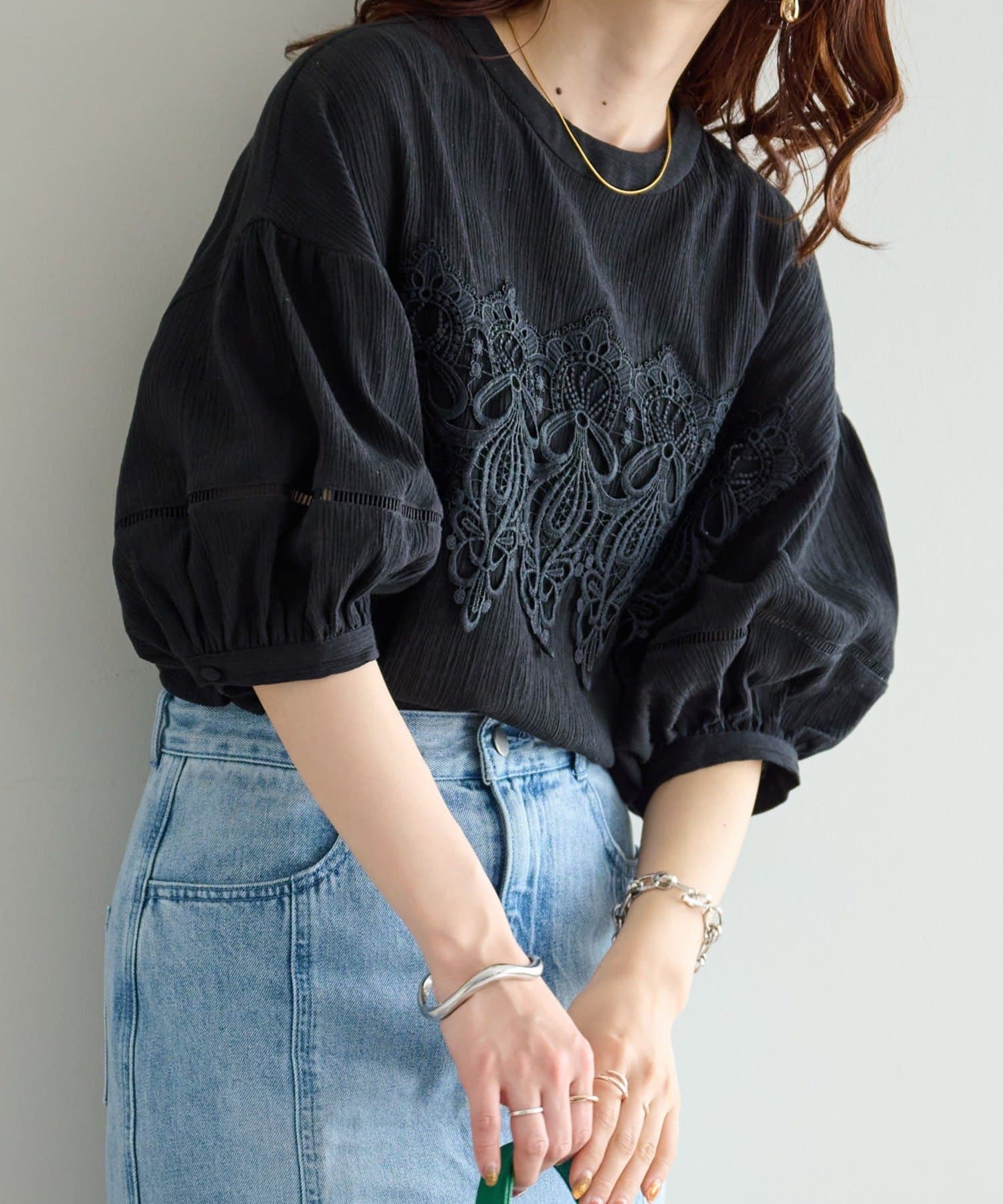 • DISCOAT(ディスコート) 【夏の着映えアイテム】2WAYレースモチーフヨウリュウブラウス5分袖《WEB限定》