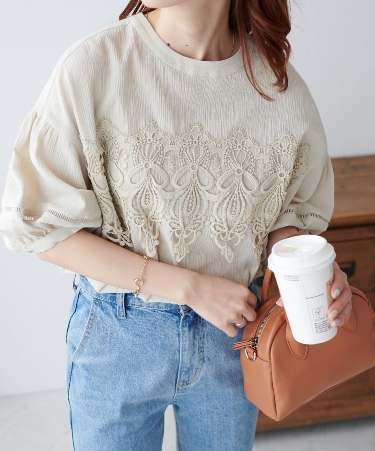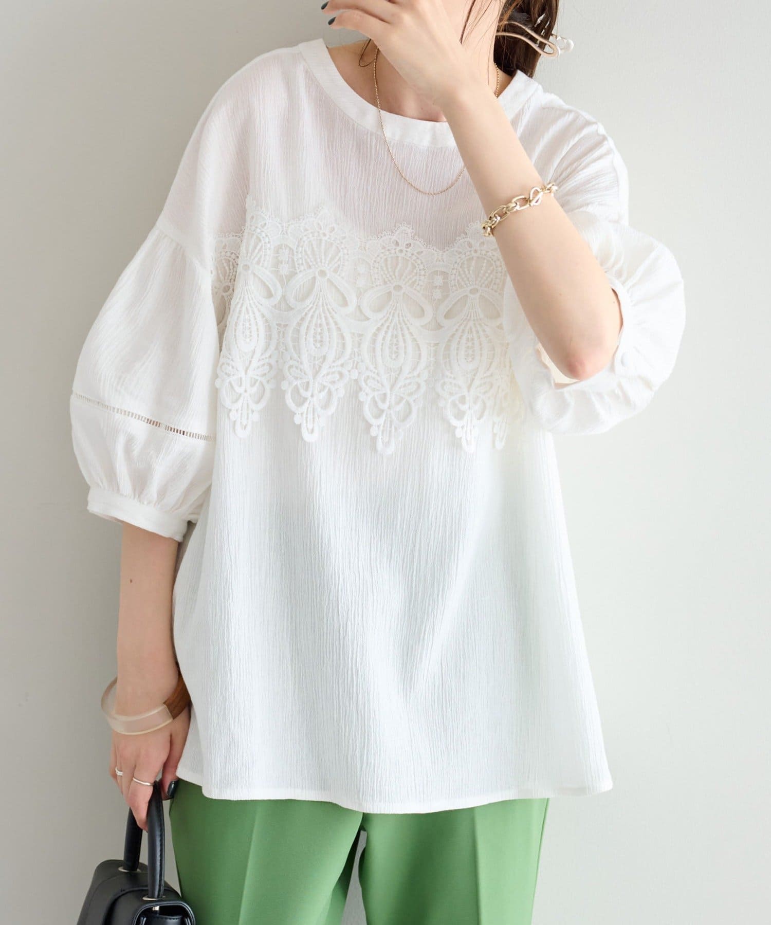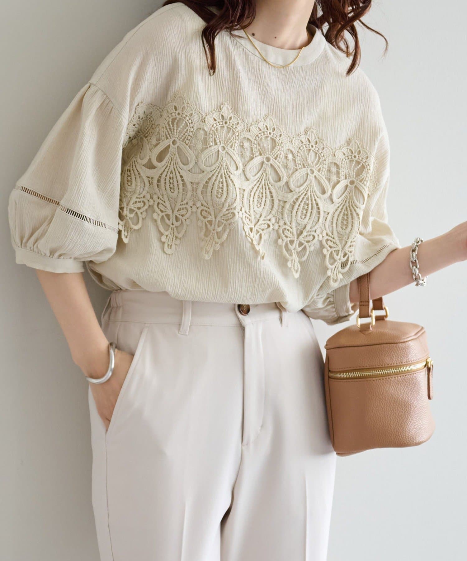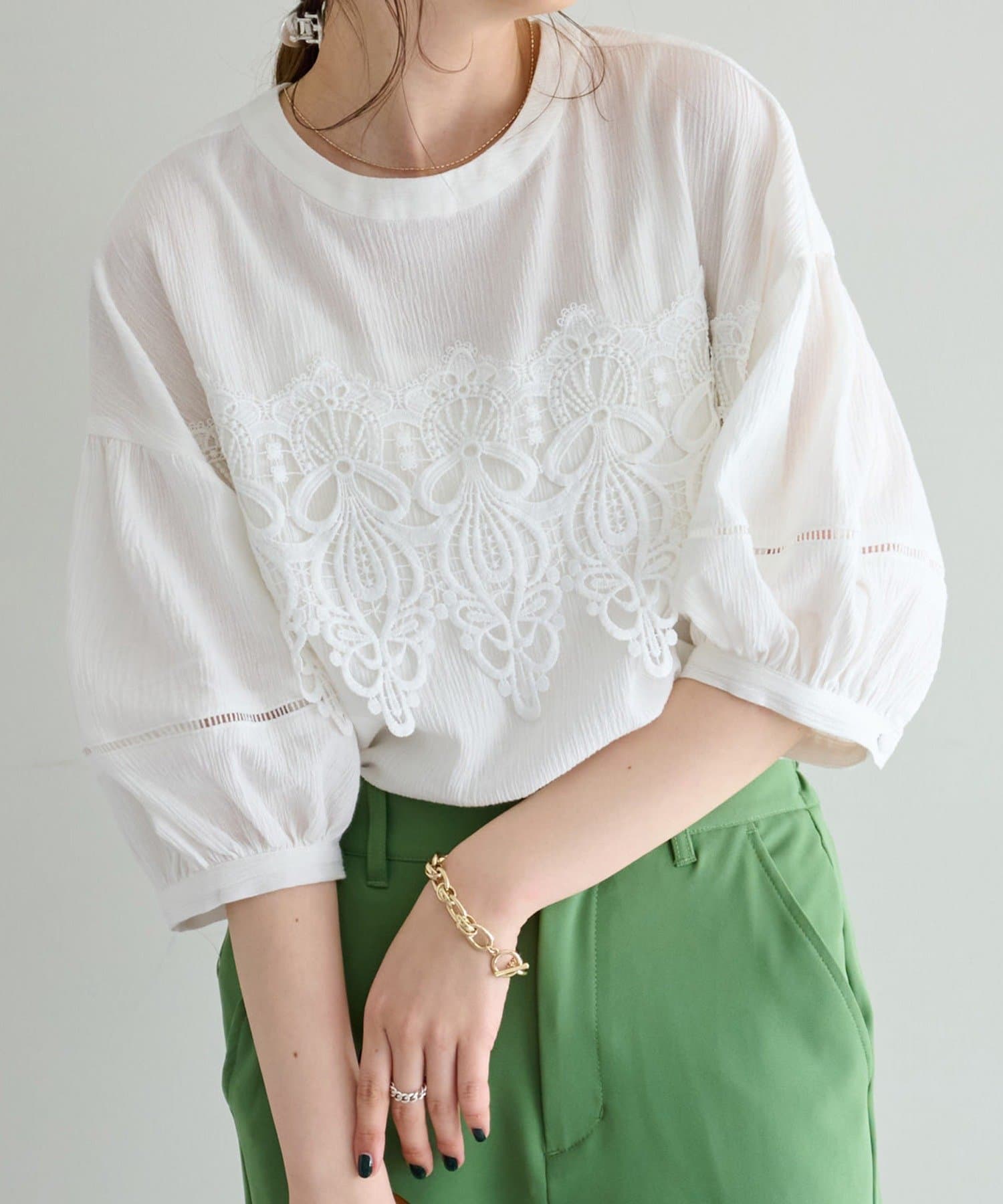 DISCOAT(ディスコート) 【夏の着映えアイテム】2WAYレースモチーフヨウリュウブラウス5分袖《WEB限定》
