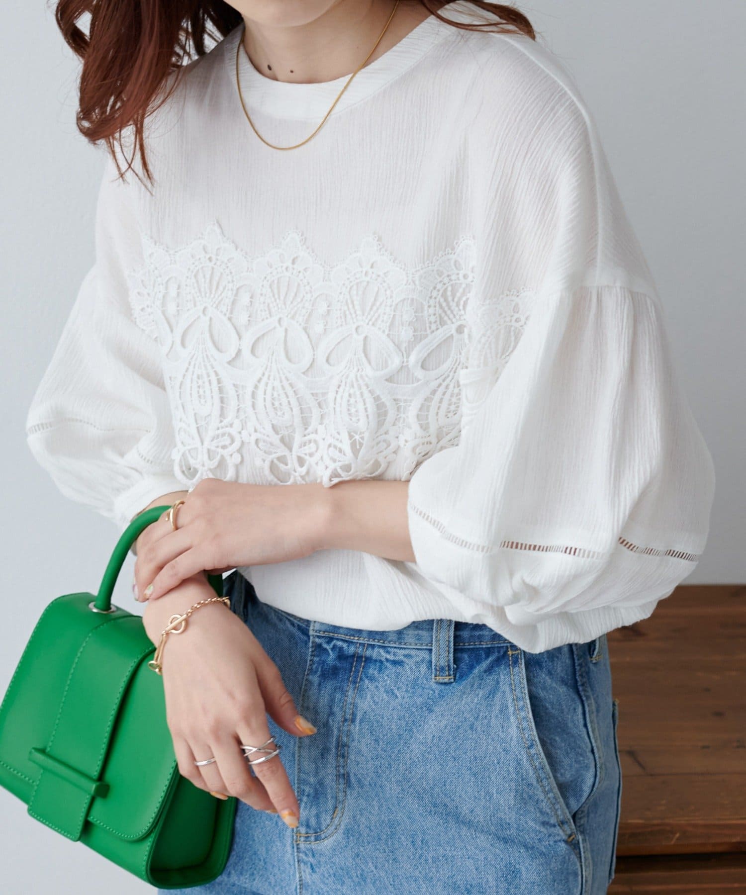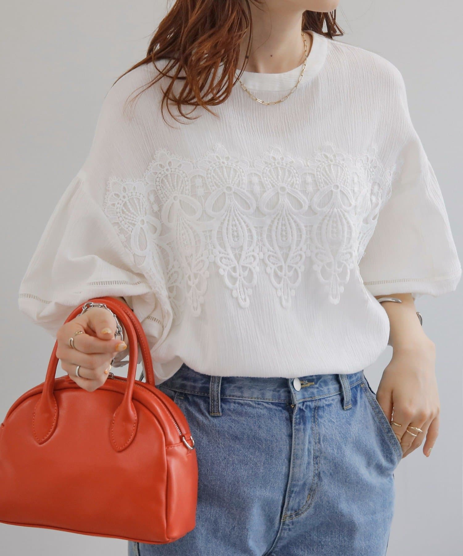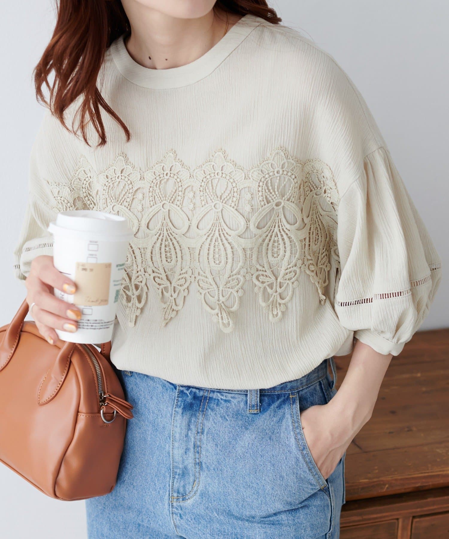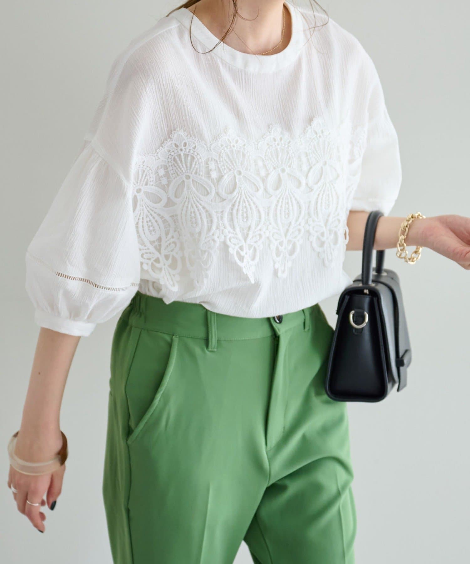 DISCOAT(ディスコート) 【夏の着映えアイテム】2WAYレースモチーフヨウリュウブラウス5分袖《WEB限定》