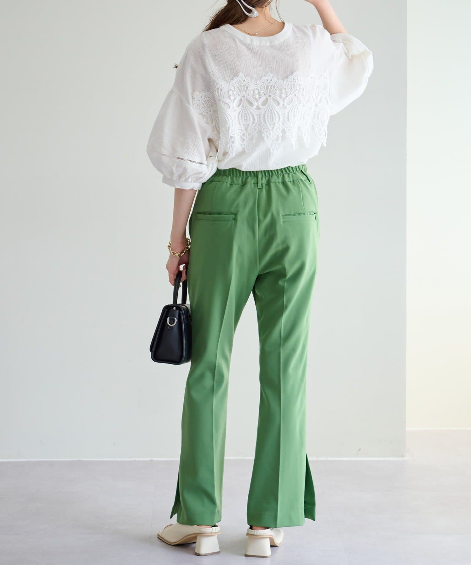 レースがとても可愛いです。2wayですが、レースを前にして、ボトムスはデニムと合わせて着用することが多いです。涼しい素材なのでサラッと着れます。5分袖で控えめなところも良いです♪