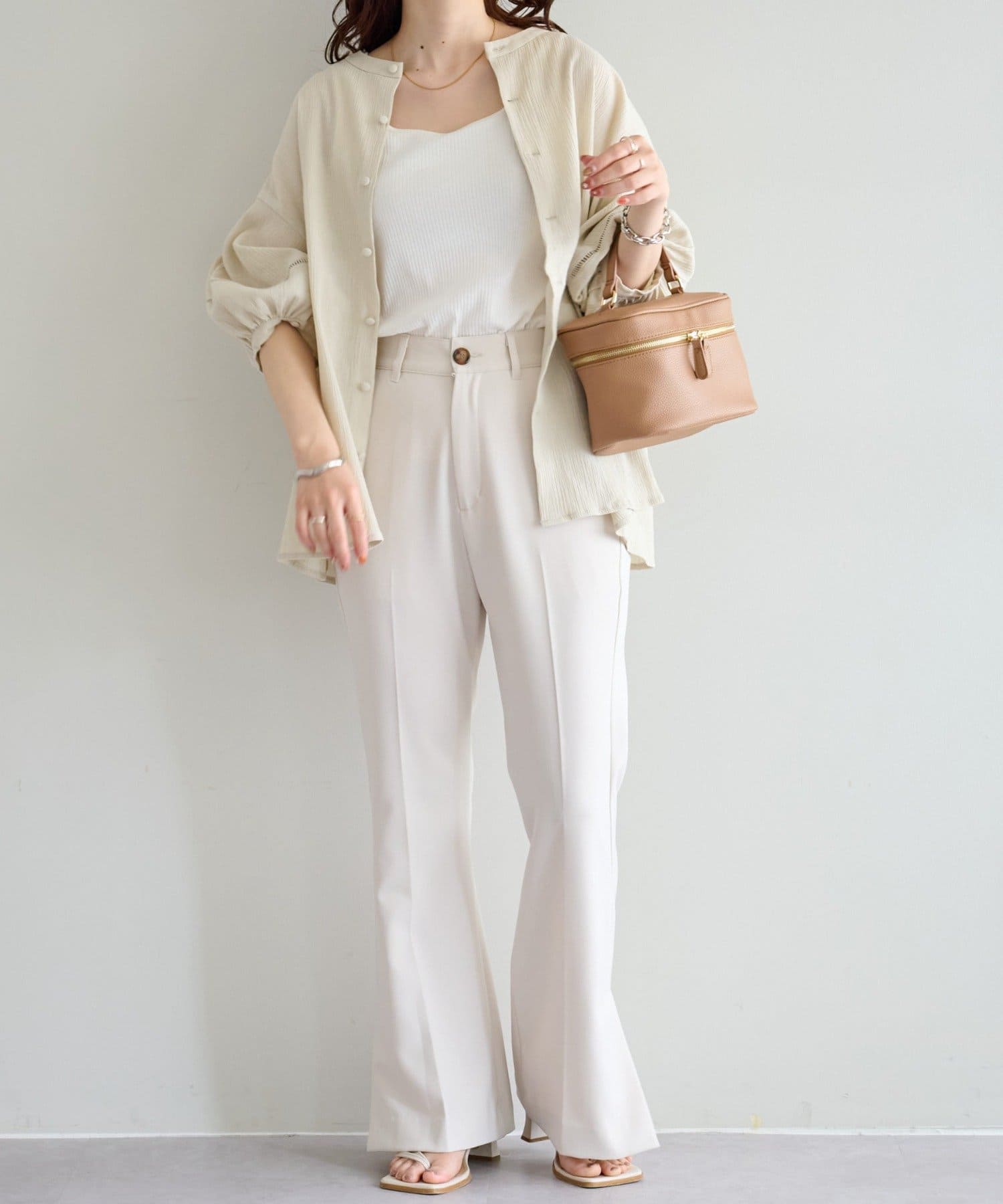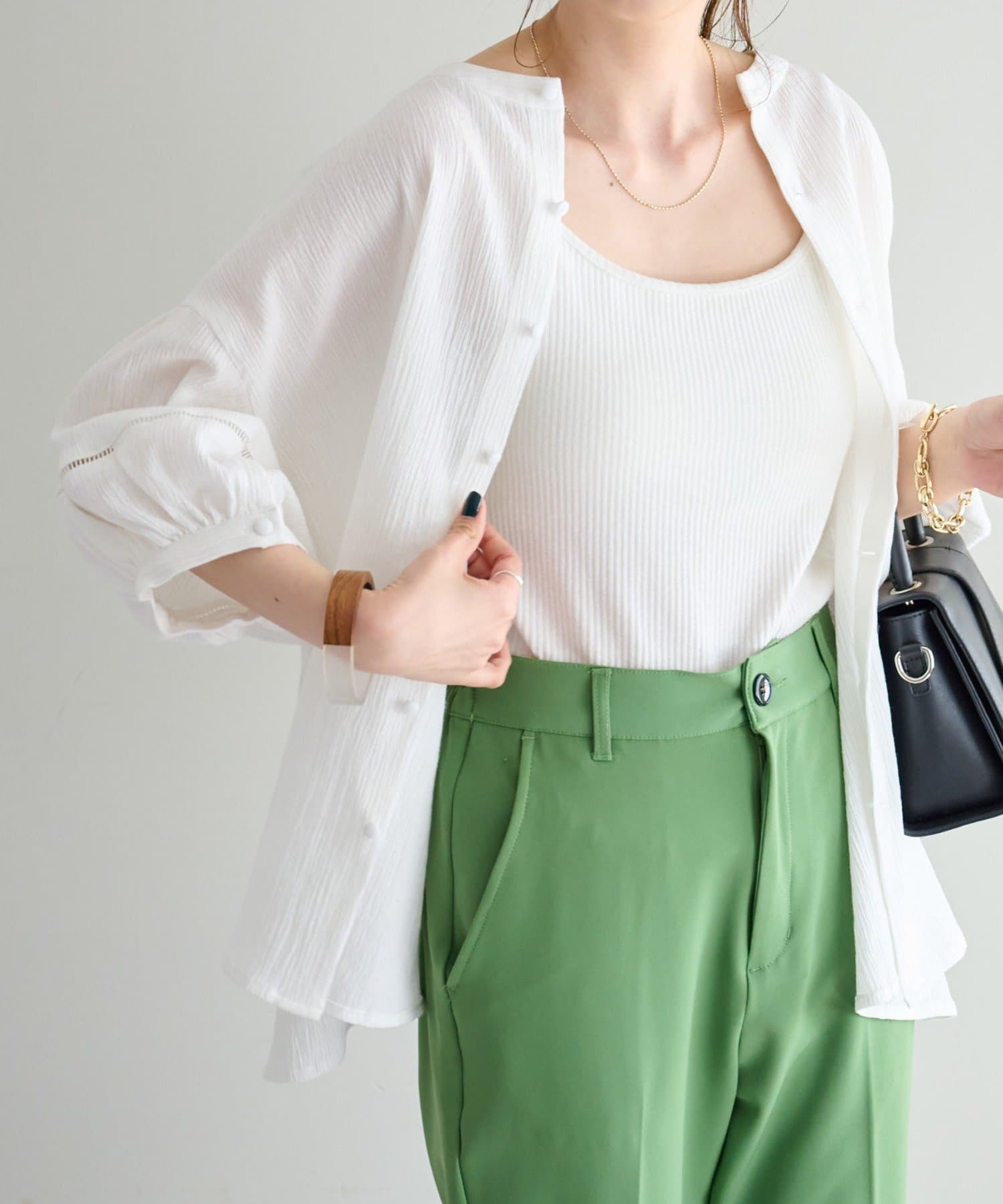 スラックスやスカートと合わせて通勤にも使えるキレイめコーデもおすすめです◎
