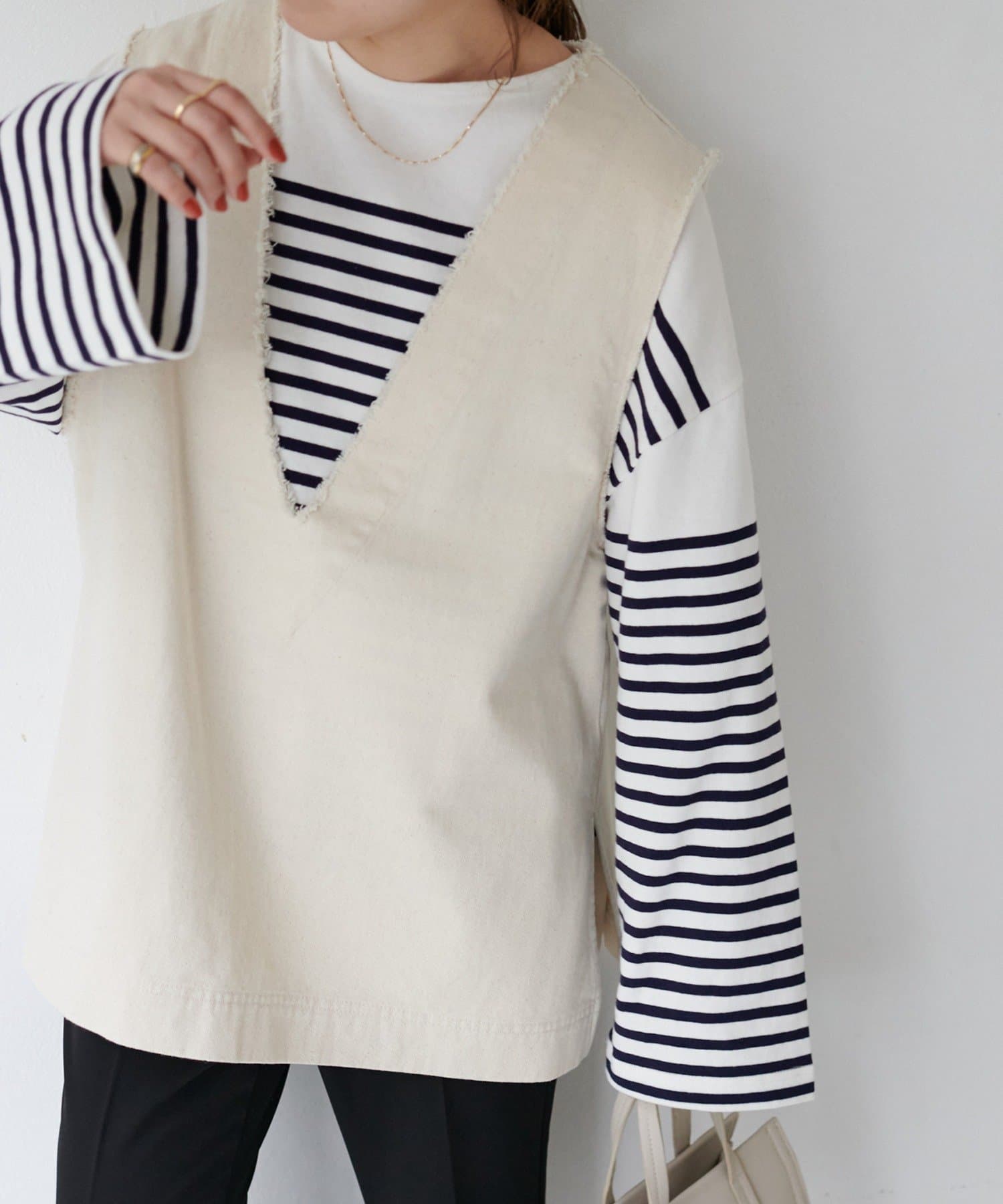 ・襟元・袖口はカットオフ仕様でこなれ感を演出