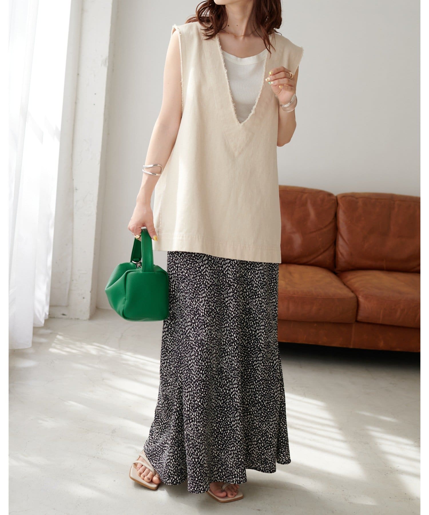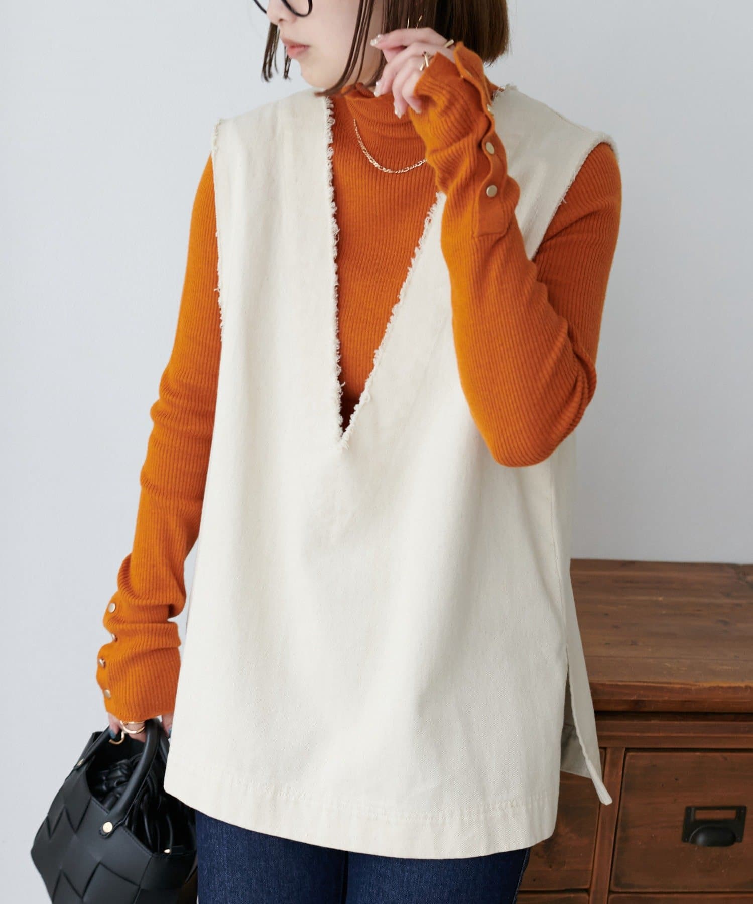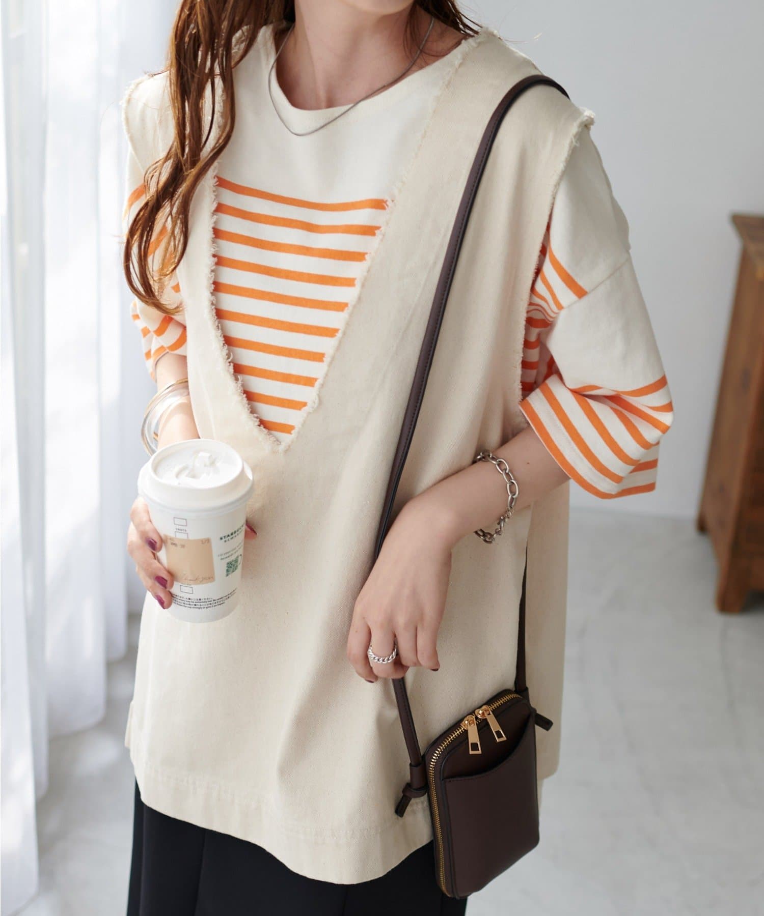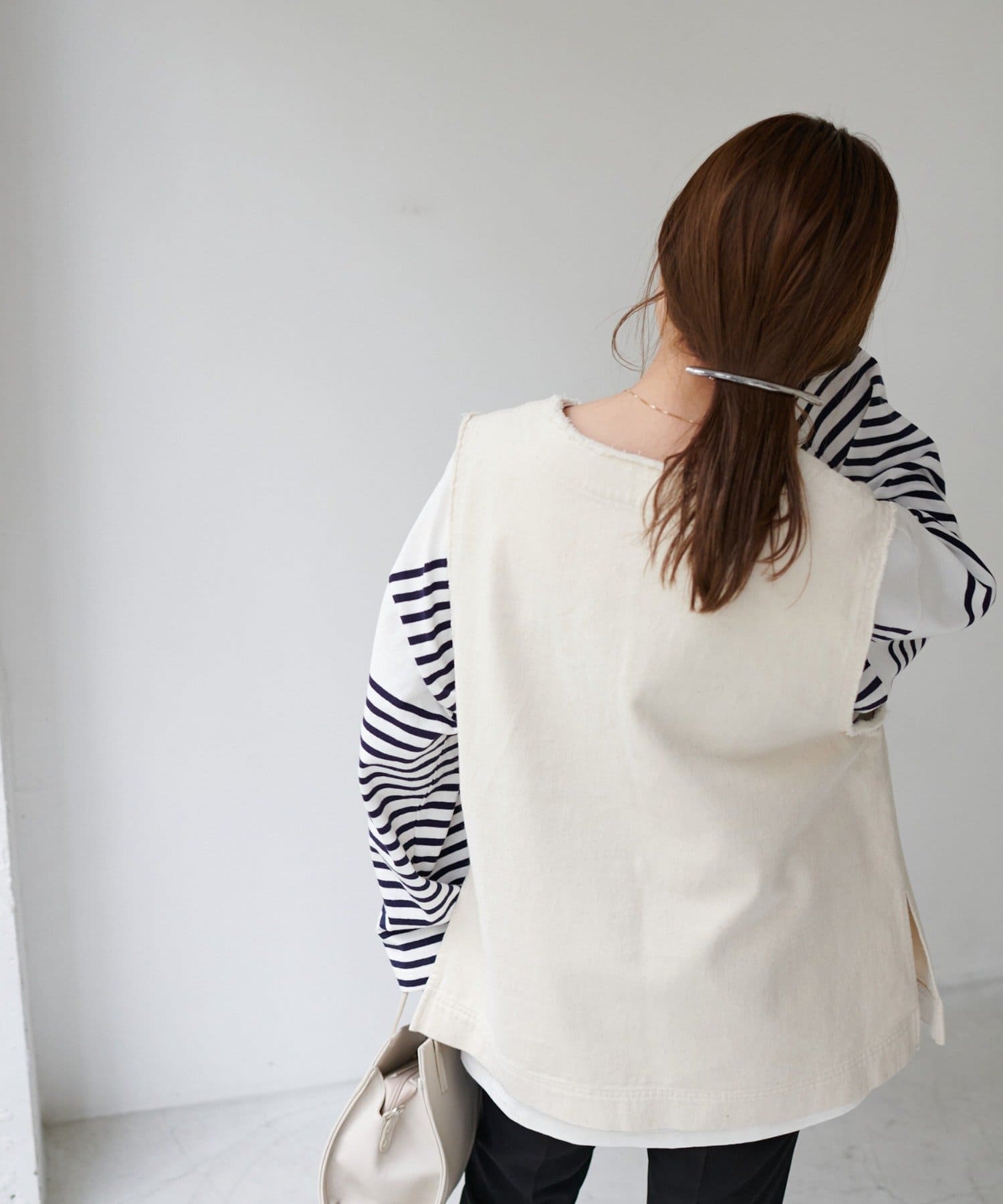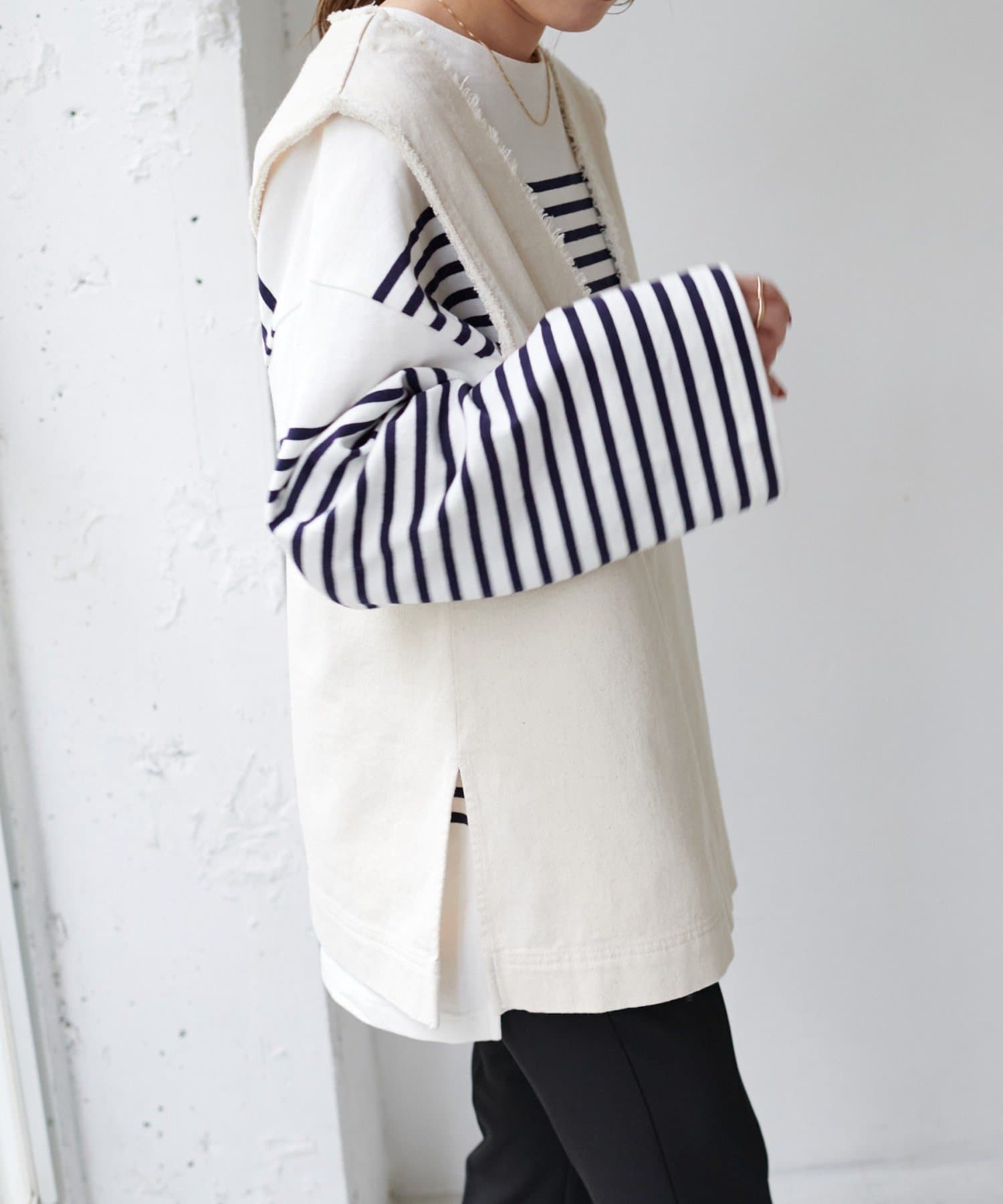 【シーズンレスに活躍◎/WEB限定】USコットンフリンジ深Vベスト