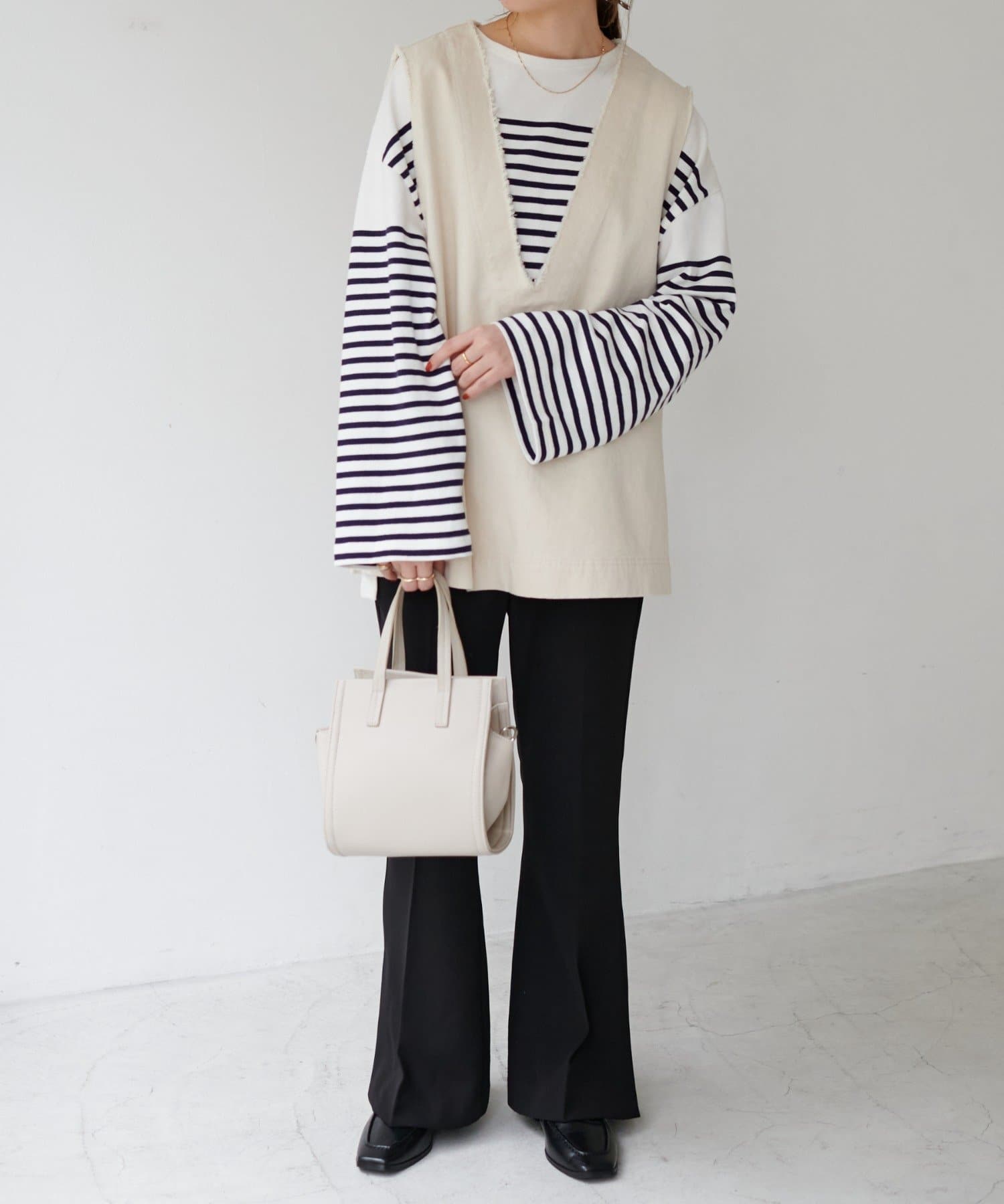 深Vなのでインナーを見せるレイヤードが楽しめます。ワイドパンツを合わせても重たくならず、バランス良く着られました!