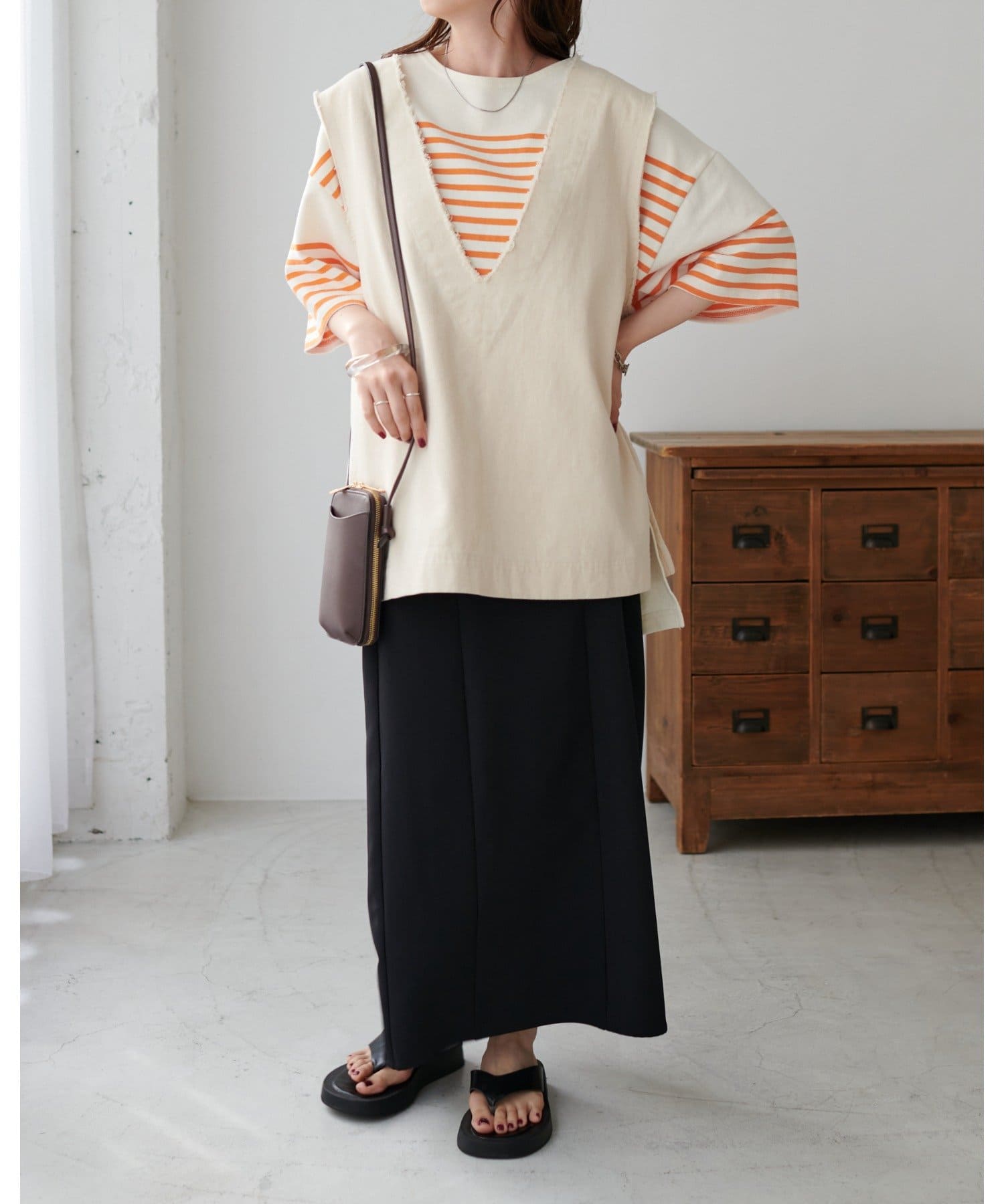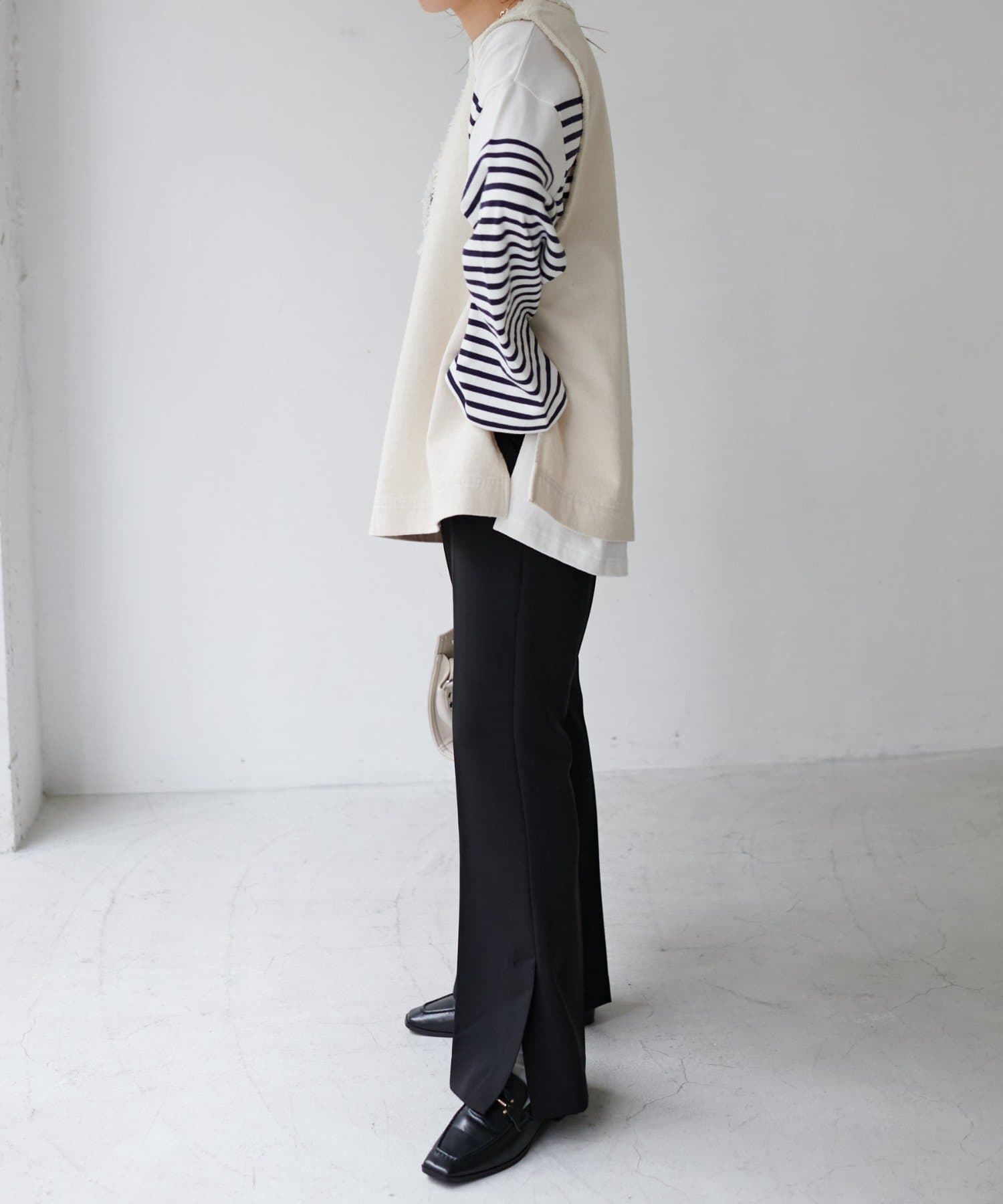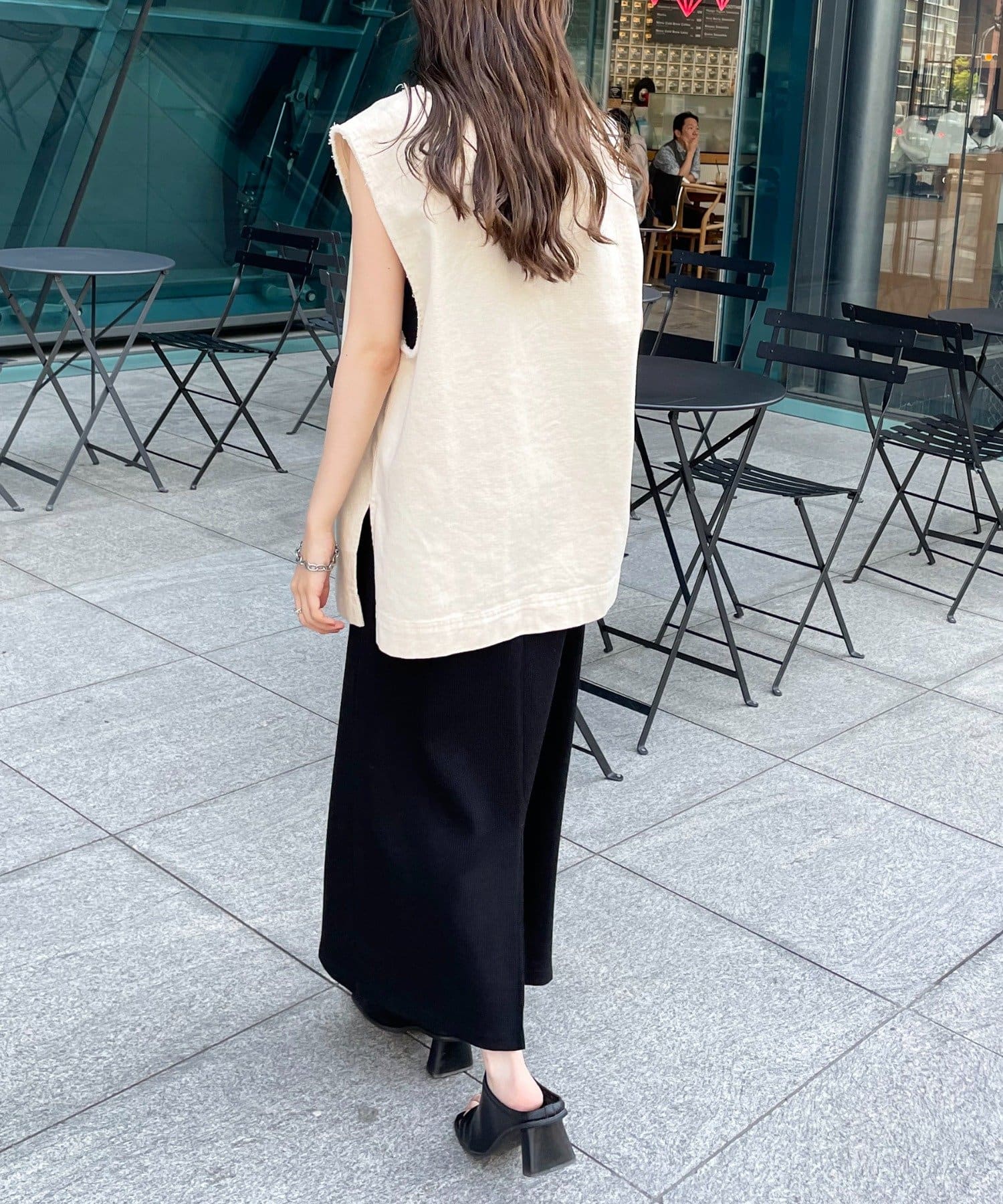 サイドスリットがあるので動きやすく、すっきり見えするのも嬉しいポイント。ロンTやシャツを合わせてシーズンレスに活躍できるアイテムです。