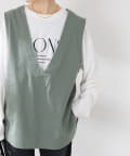深めのVネックに、ゆとりのあるシルエットで様々なアイテムにレイヤードしやすい一着。