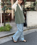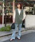 深Vなのでインナーを見せるレイヤードが楽しめます。ワイドパンツを合わせても重たくならず、バランス良く着られました!