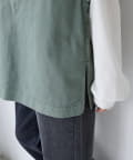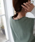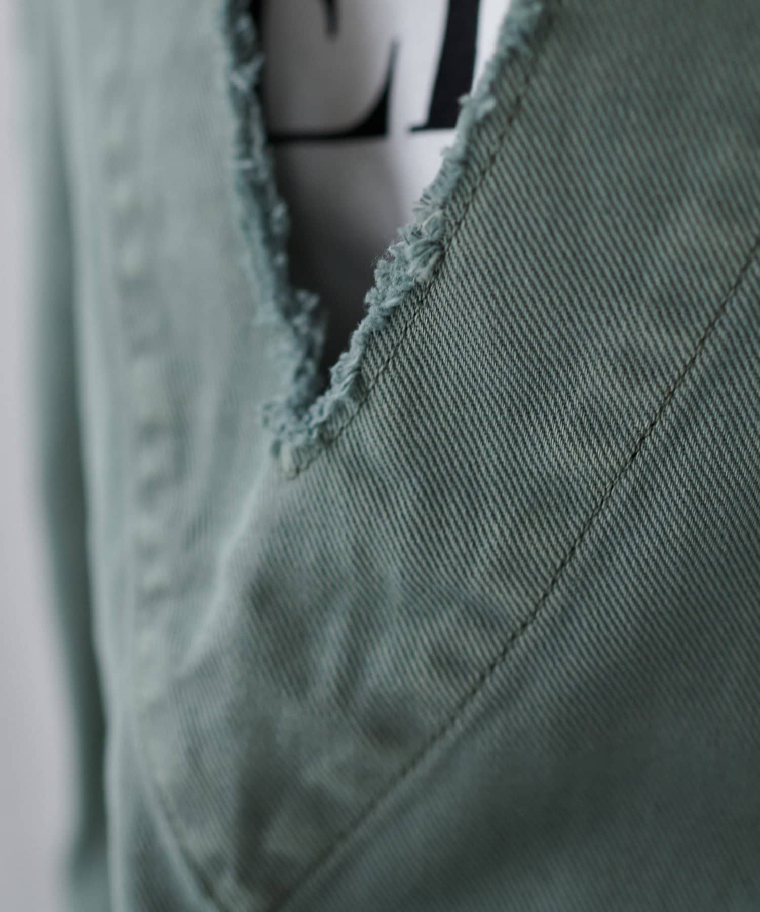 サイドにはスリットを施し、すっきり感をプラスしています。襟元や袖口をカットオフで仕上げた、こなれ感漂うディテールもポイント。