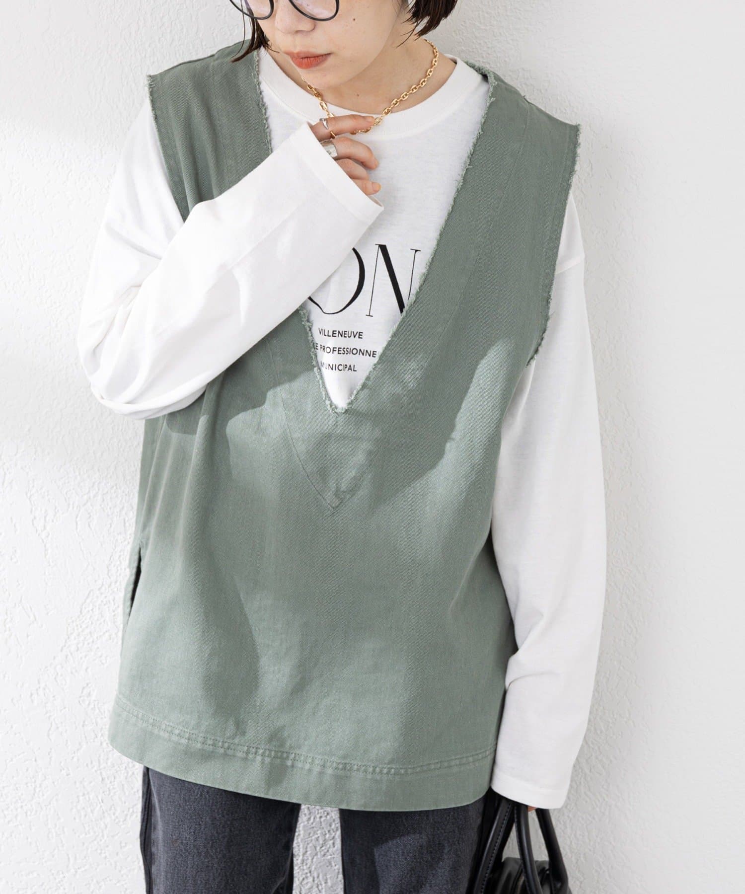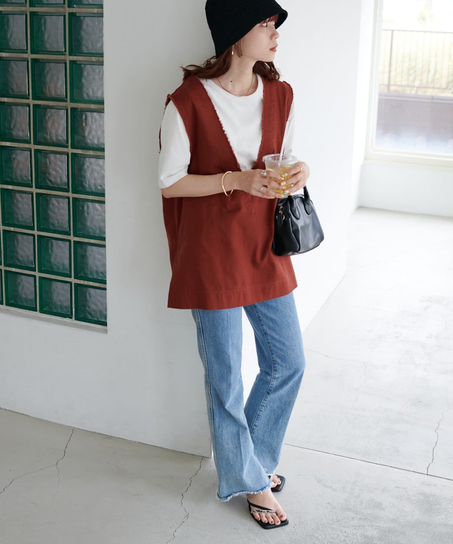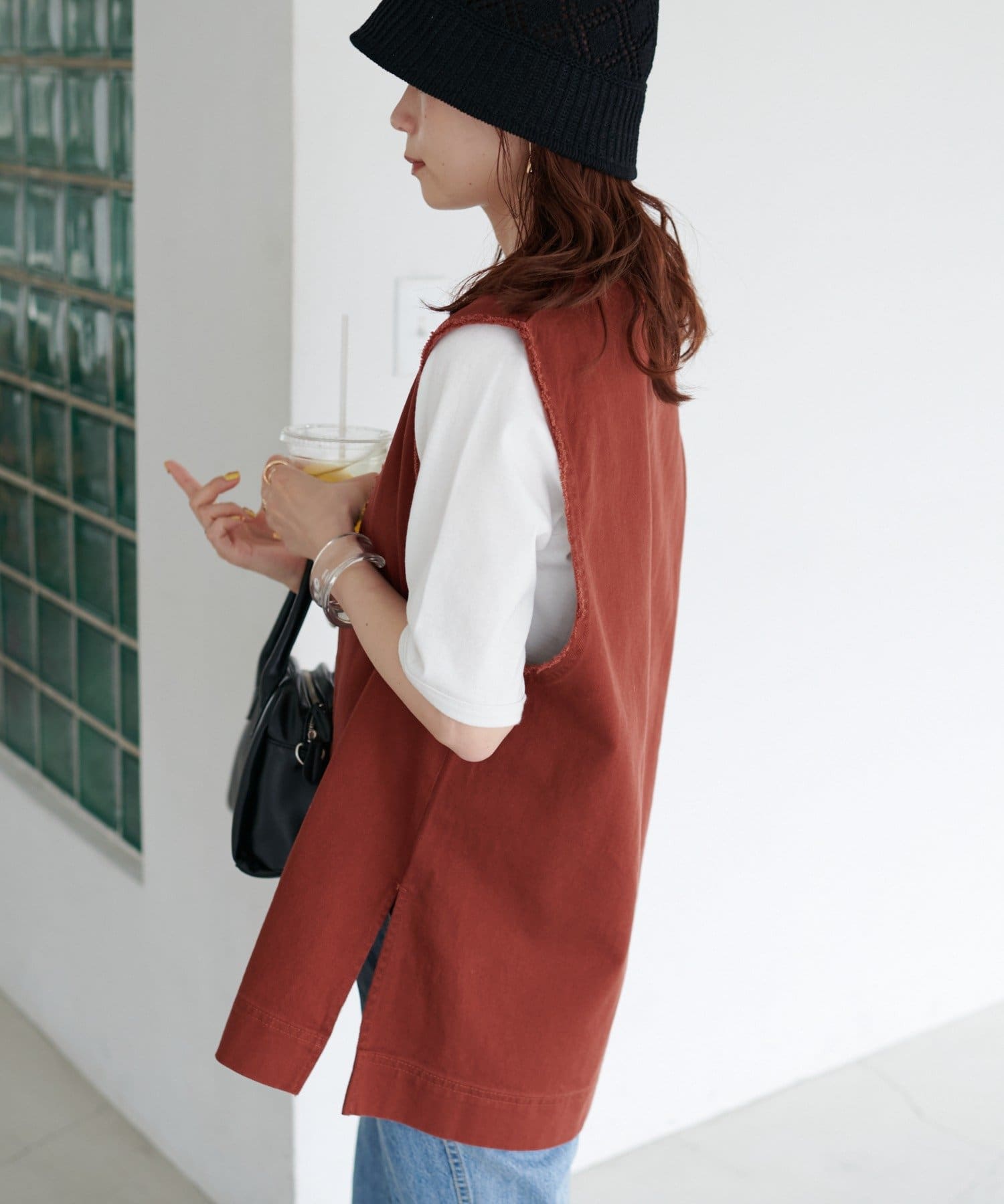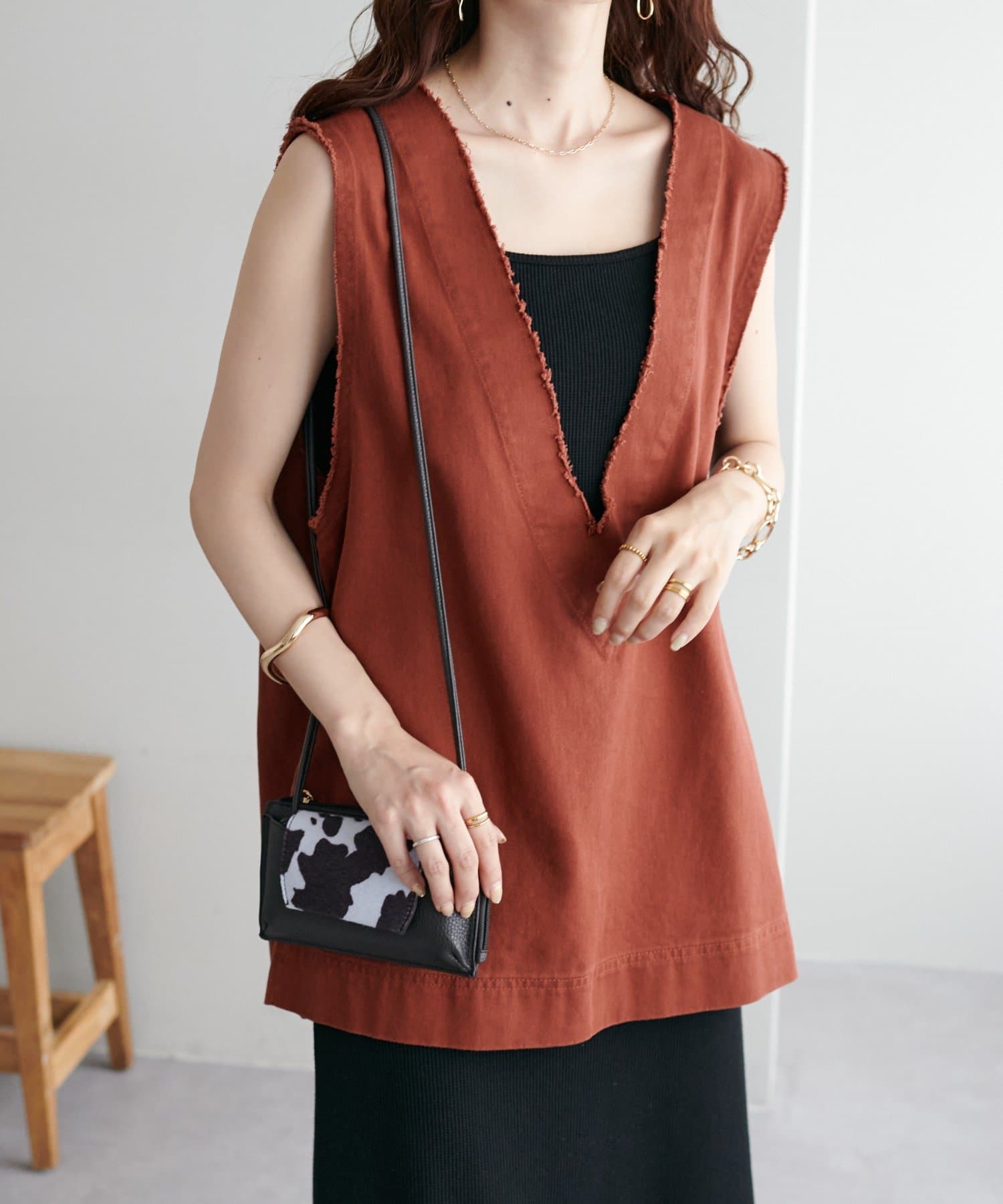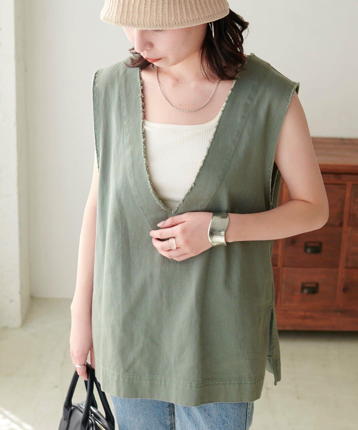 【シーズンレスに活躍◎/WEB限定】USコットンフリンジ深Vベスト