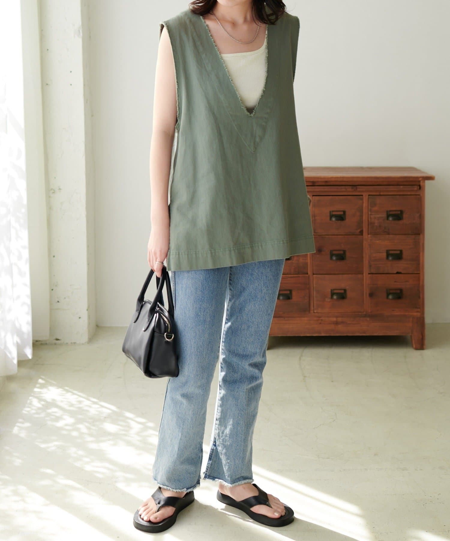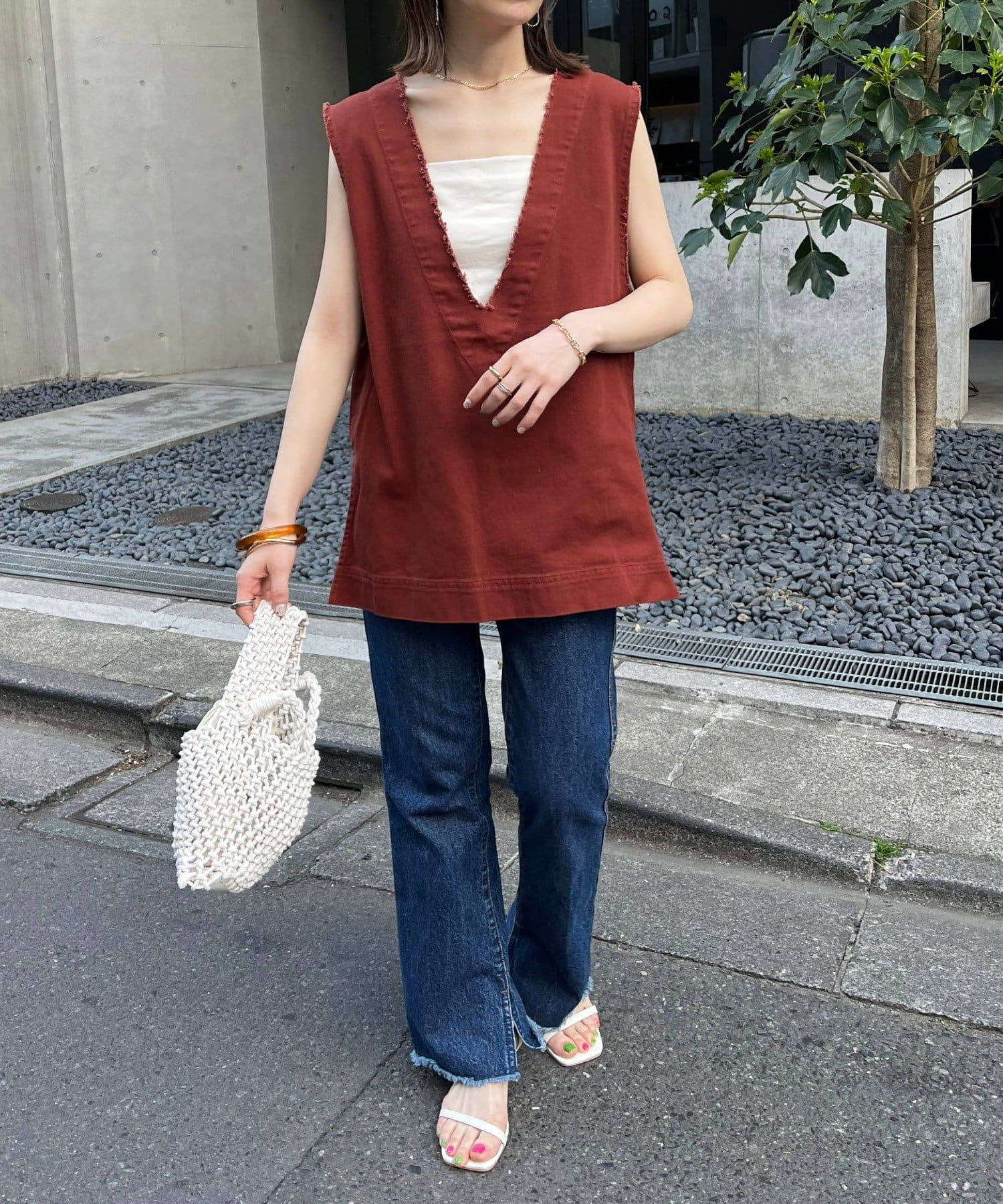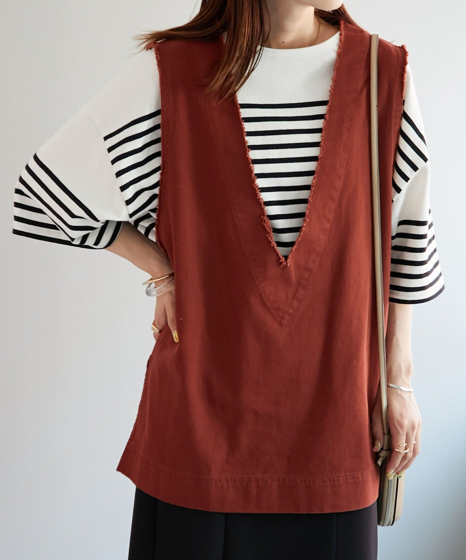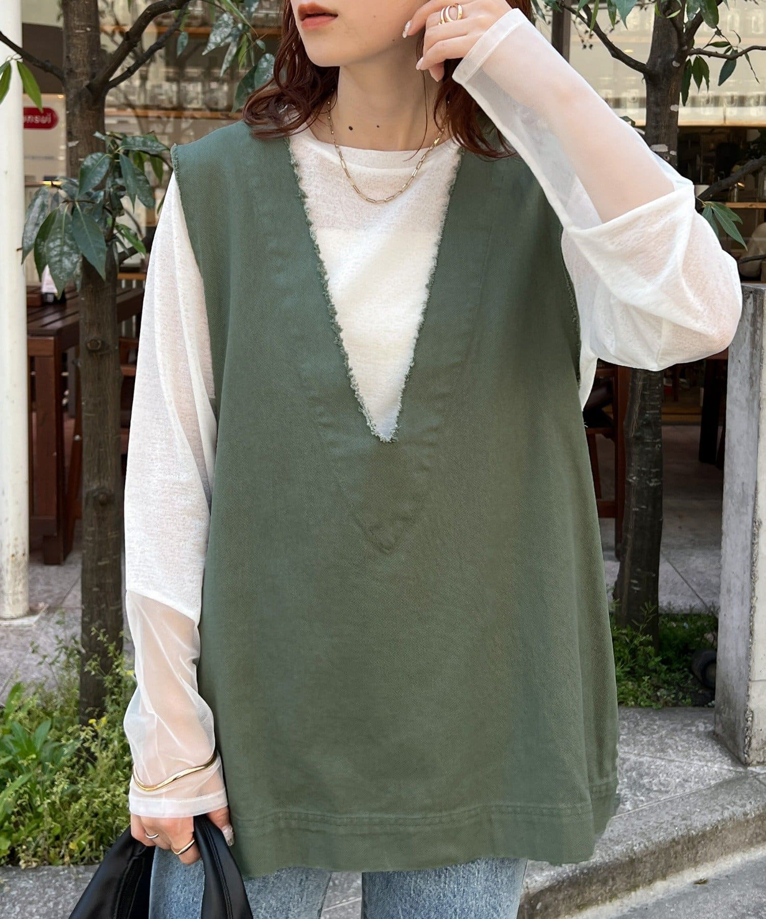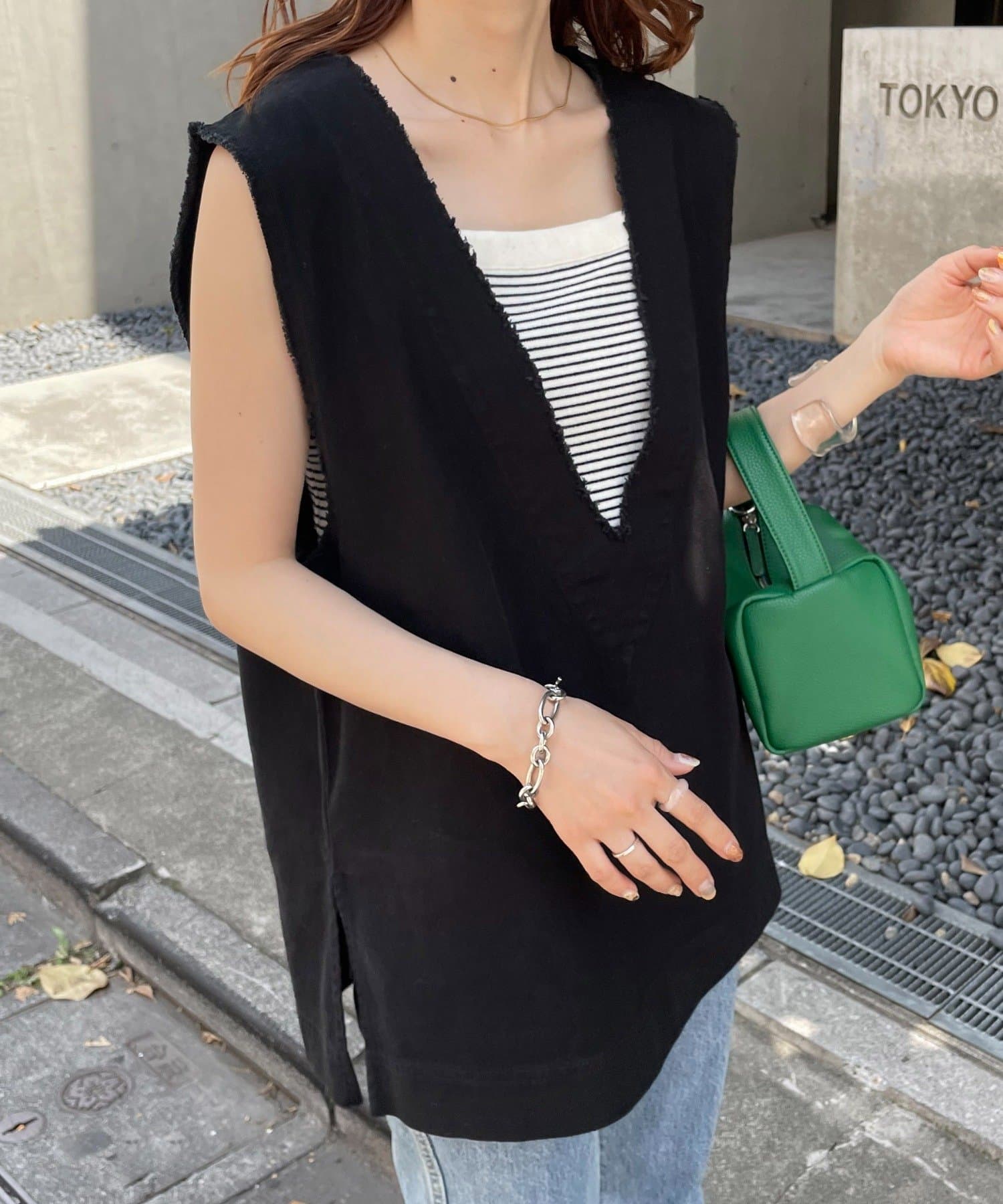【シーズンレスに活躍◎/WEB限定】USコットンフリンジ深Vベスト