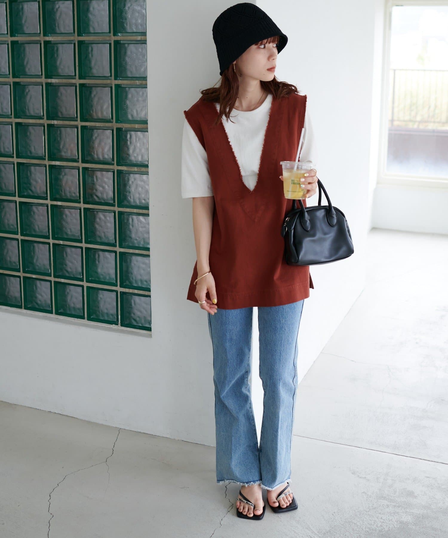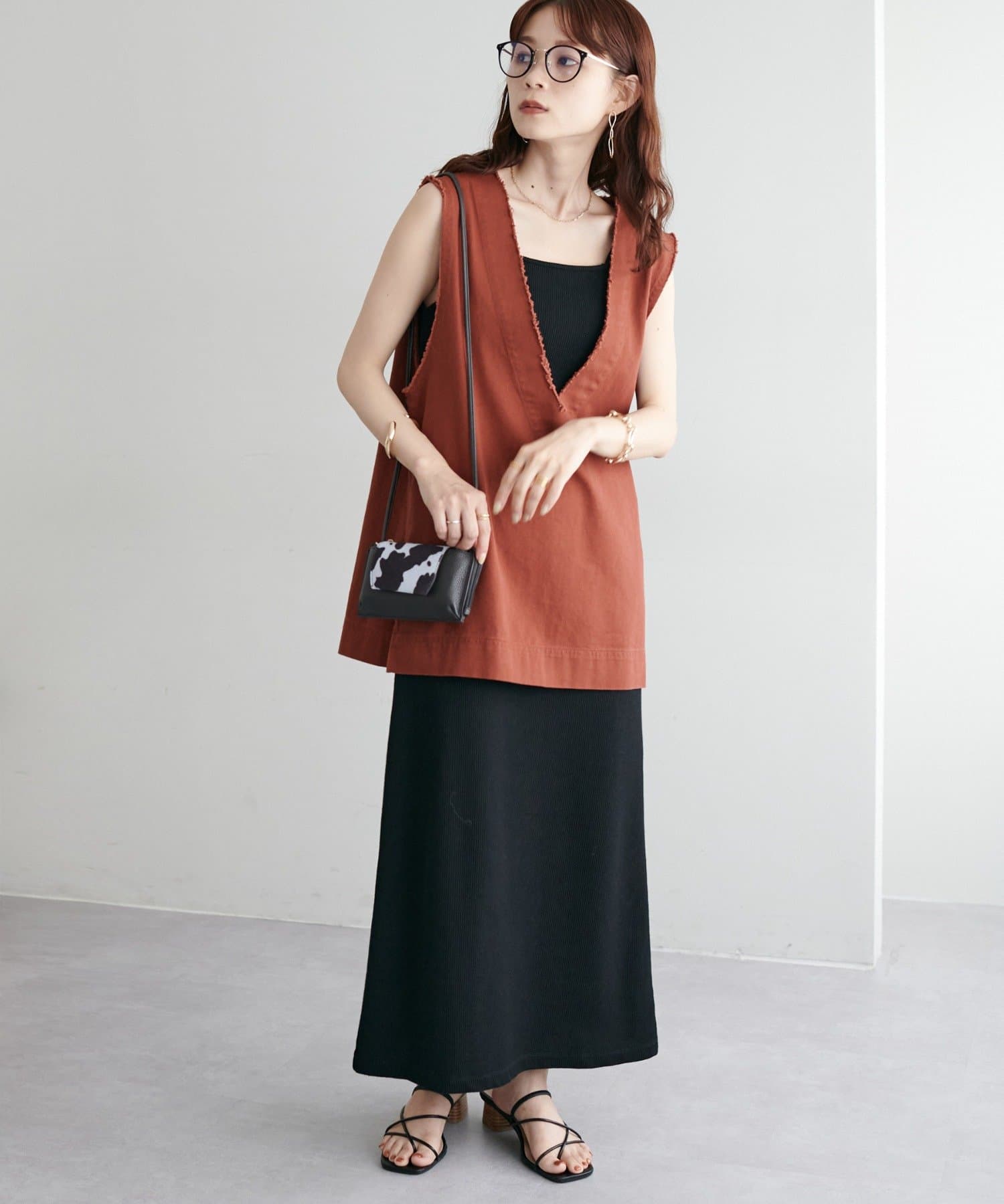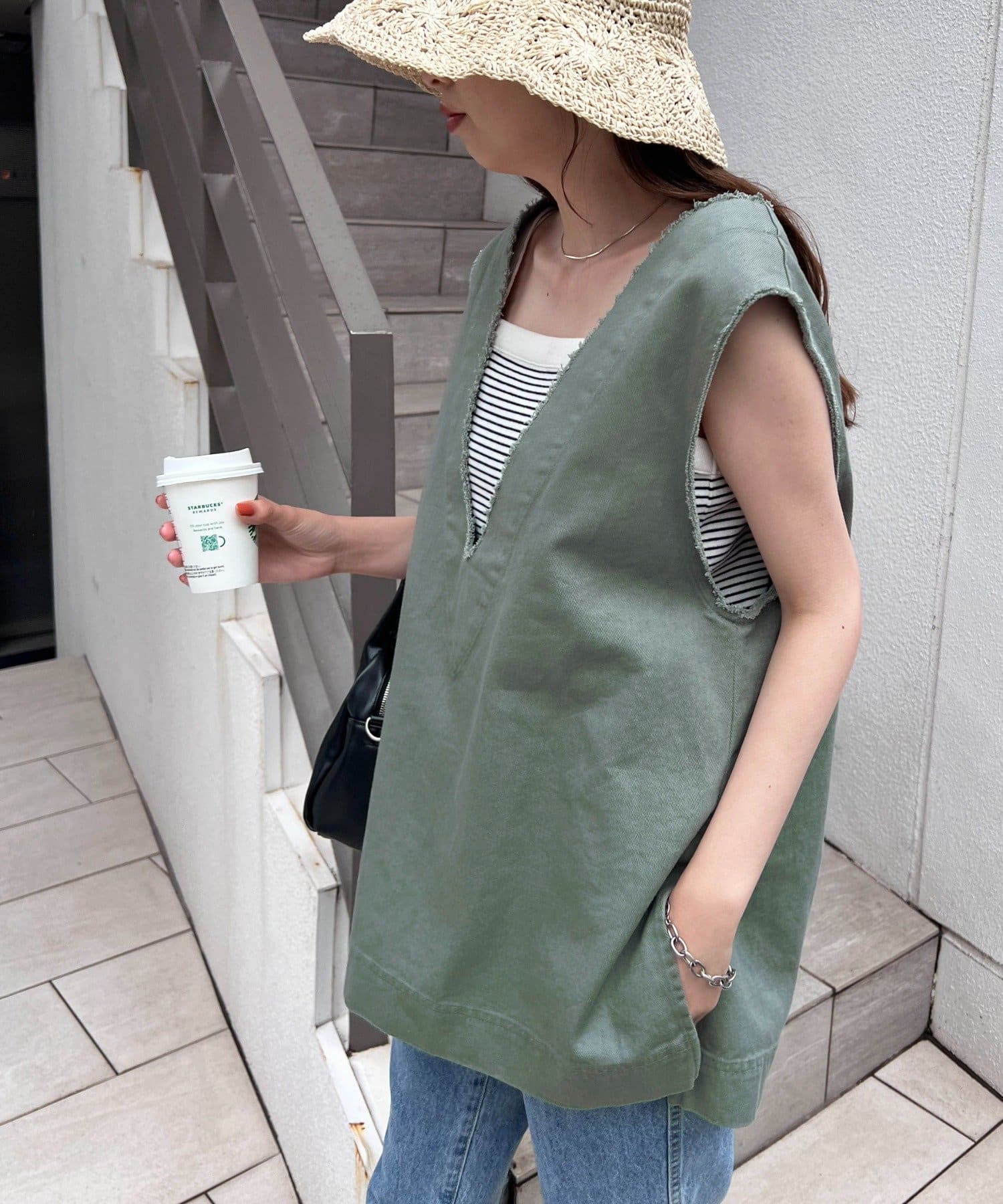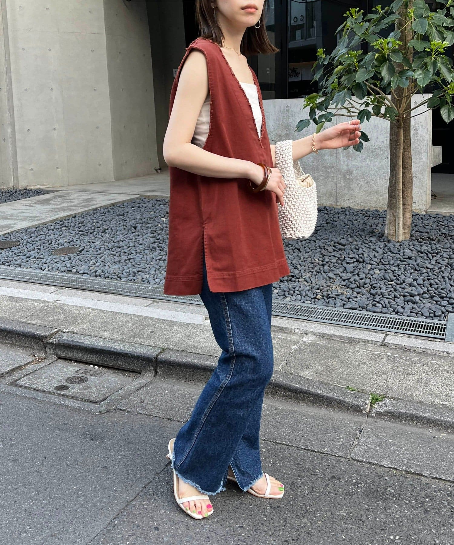 【シーズンレスに活躍◎/WEB限定】USコットンフリンジ深Vベスト