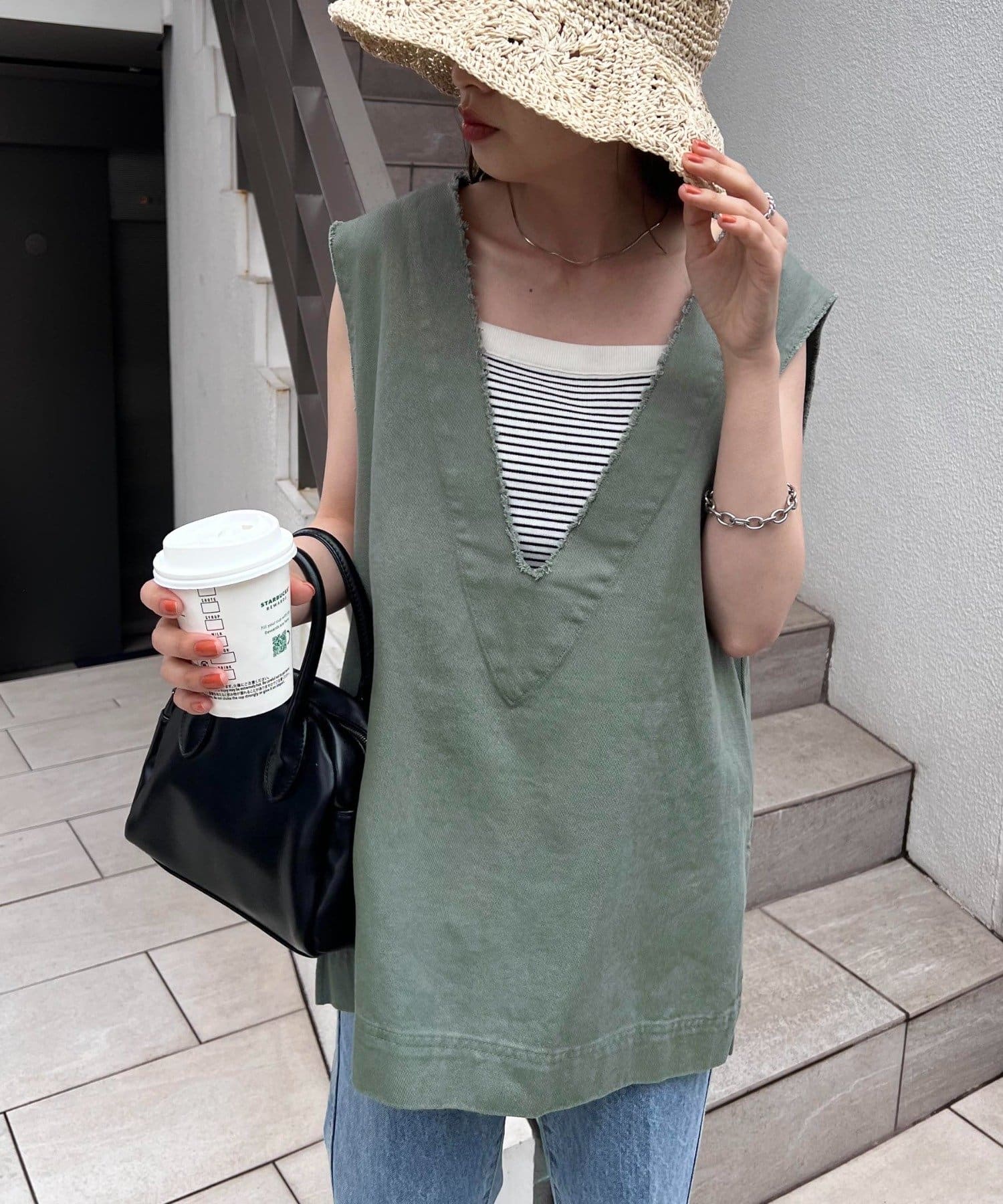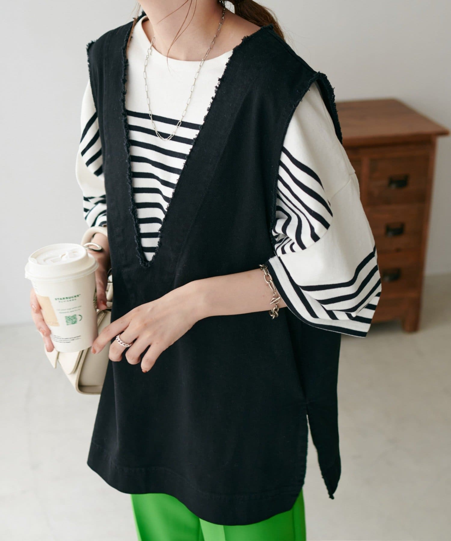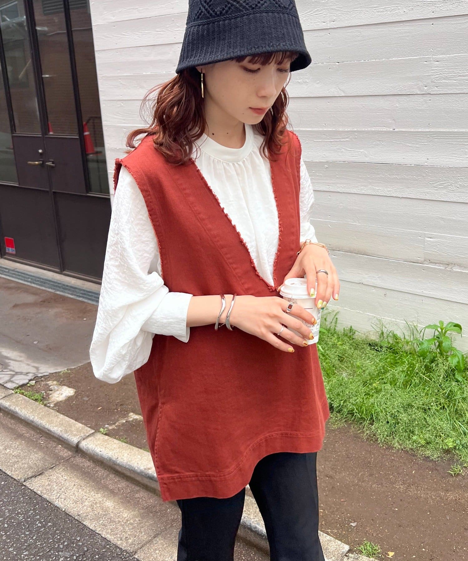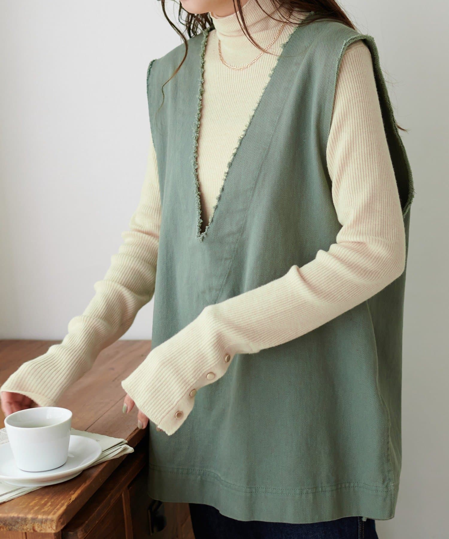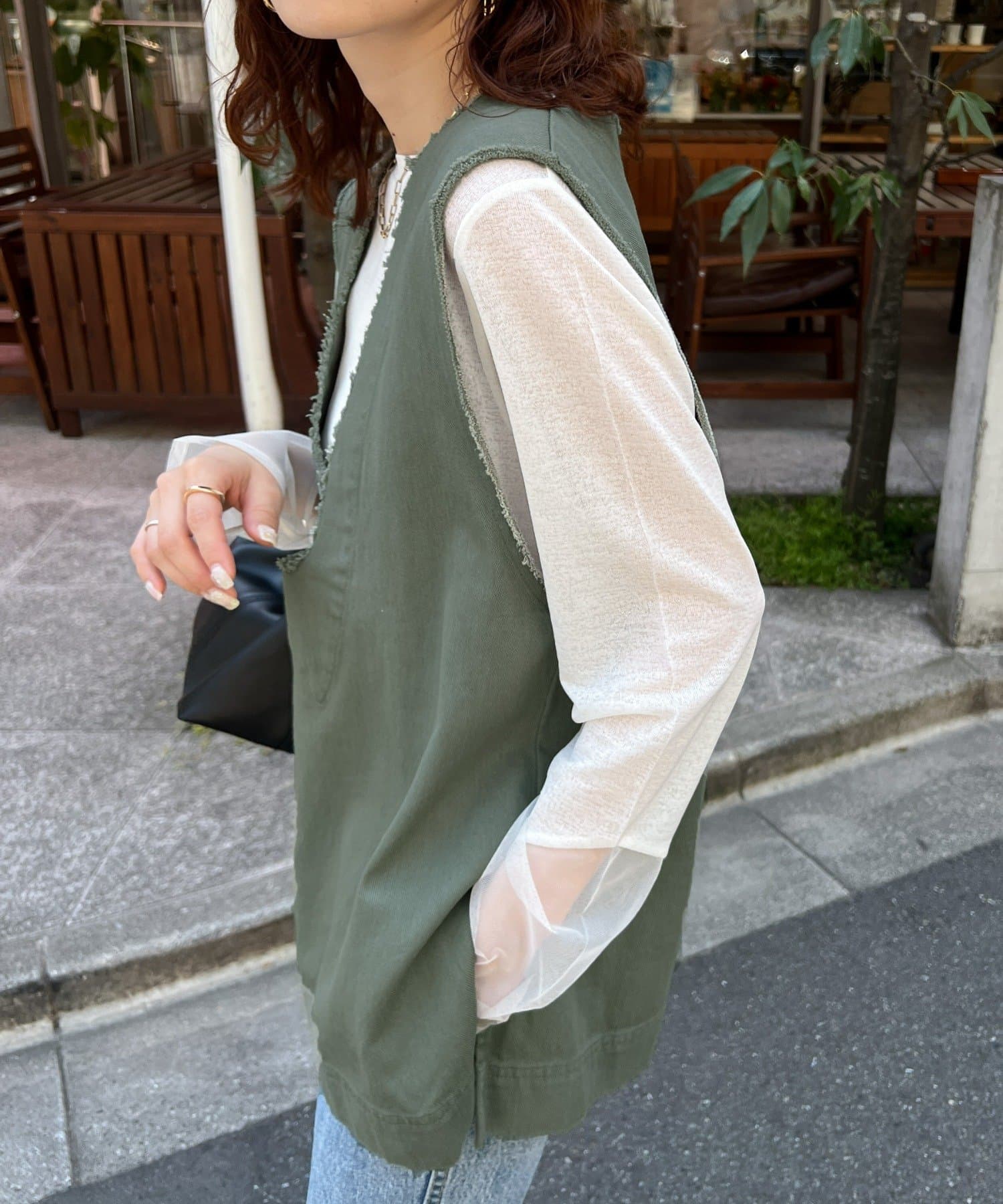 【シーズンレスに活躍◎/WEB限定】USコットンフリンジ深Vベスト