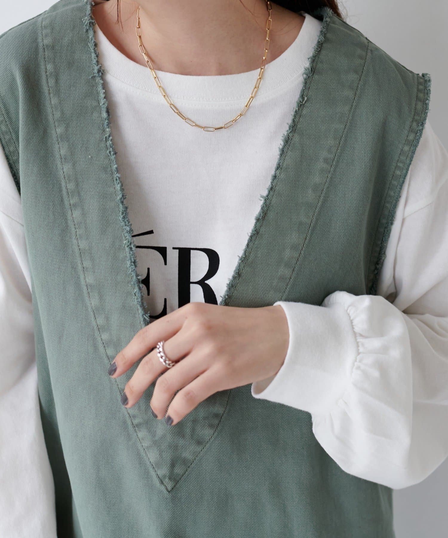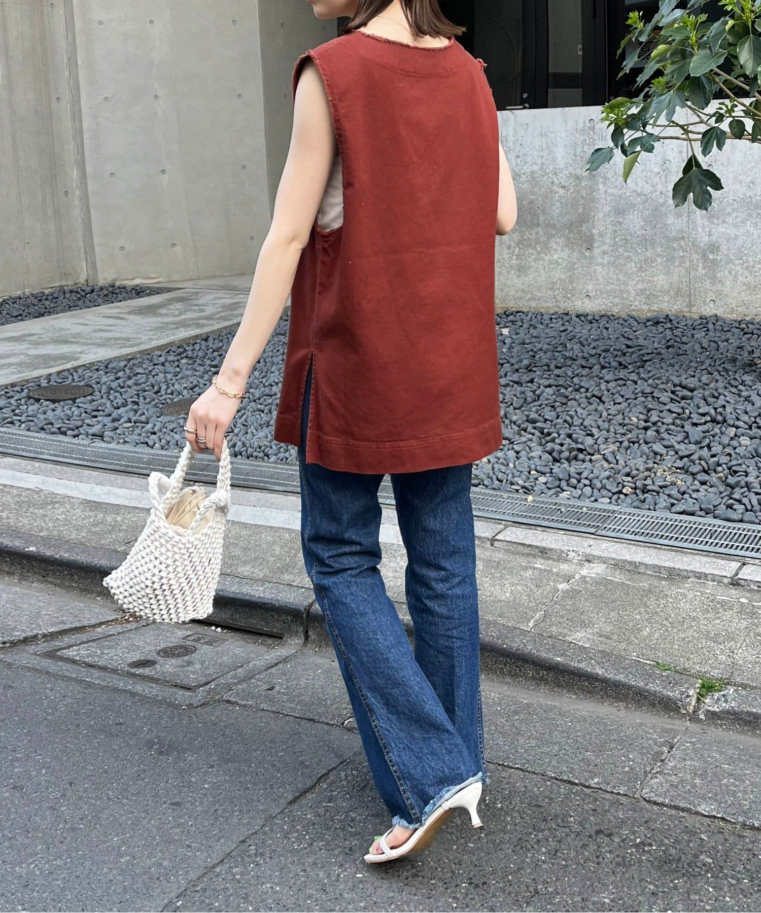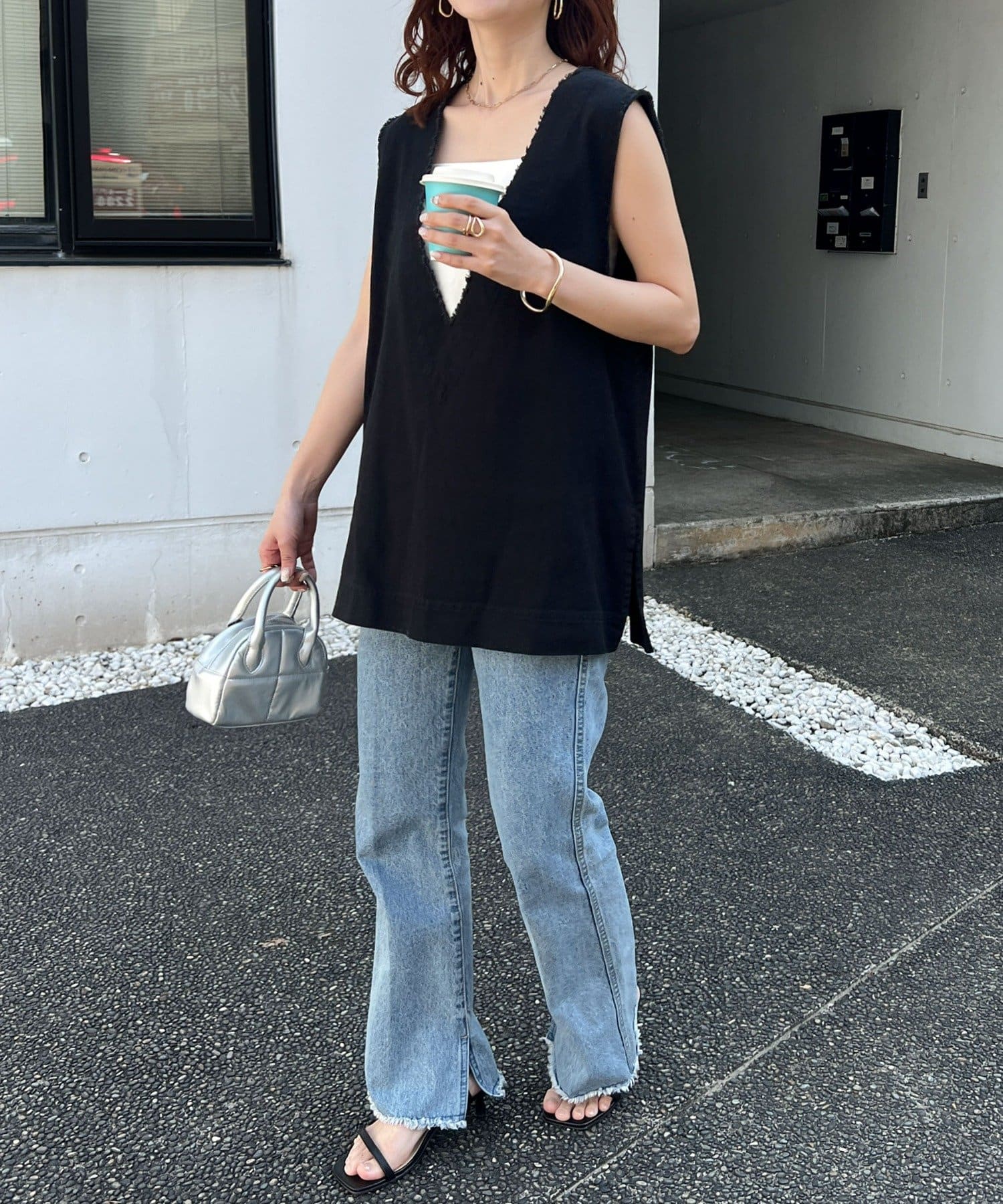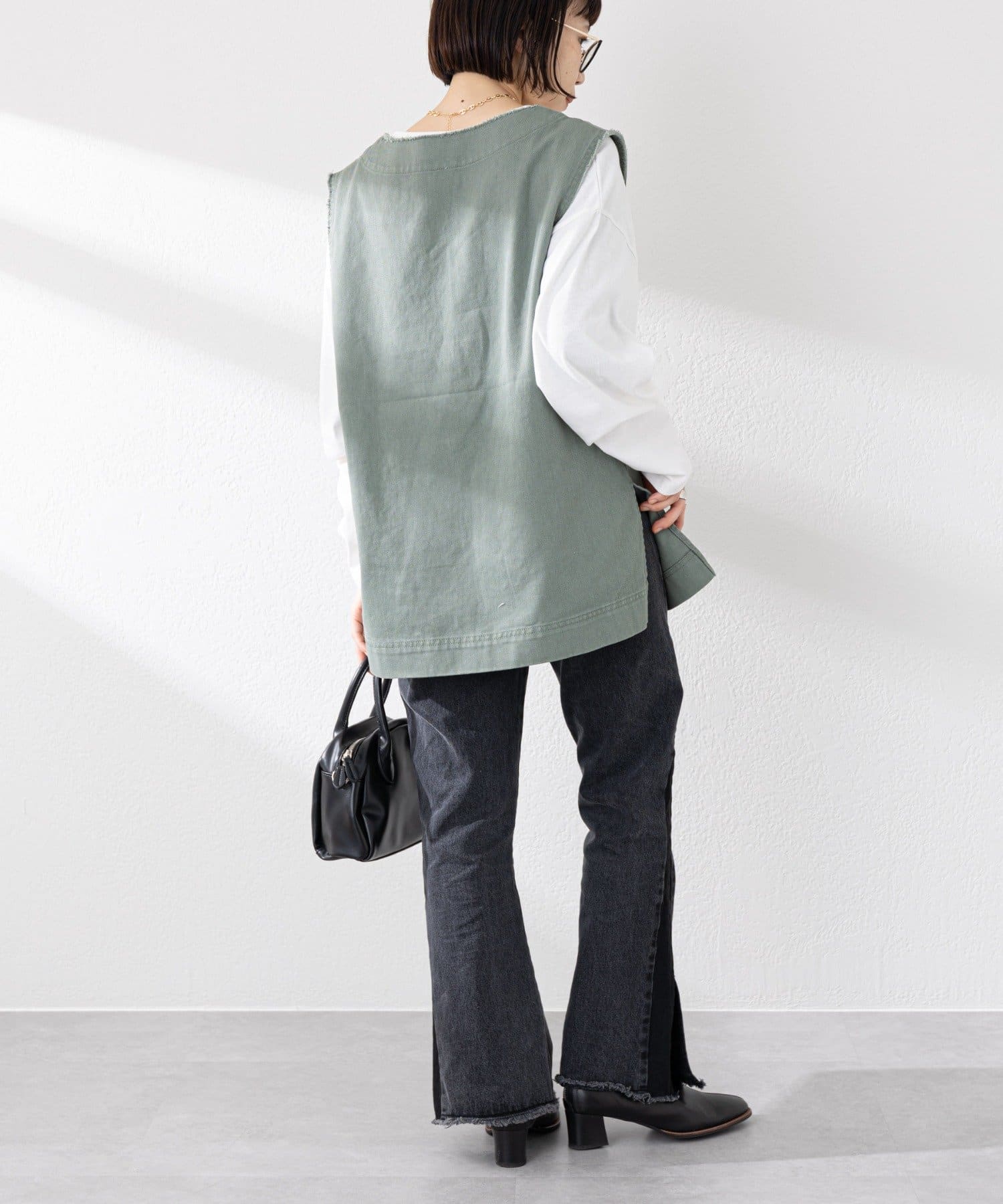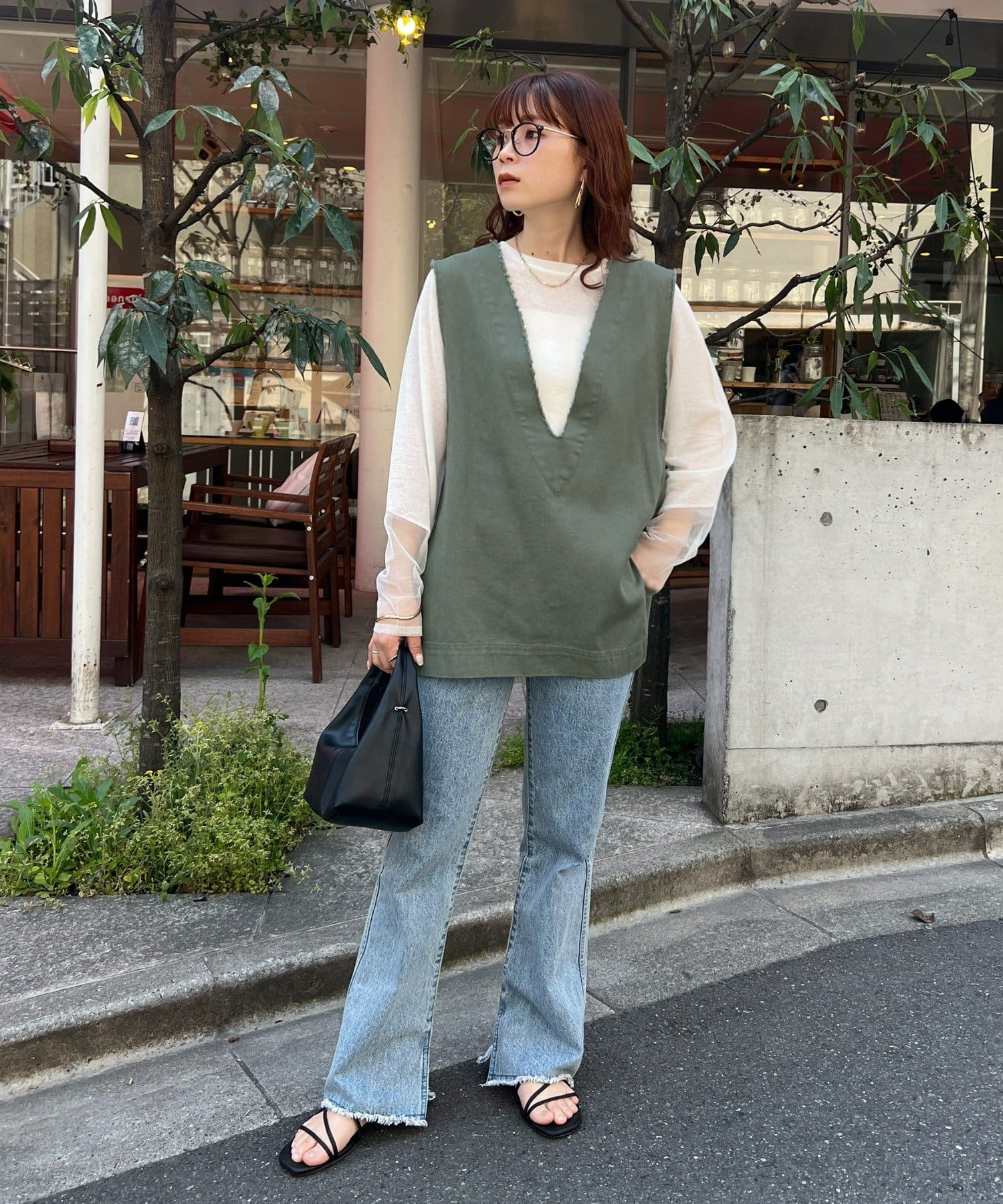 【シーズンレスに活躍◎/WEB限定】USコットンフリンジ深Vベスト