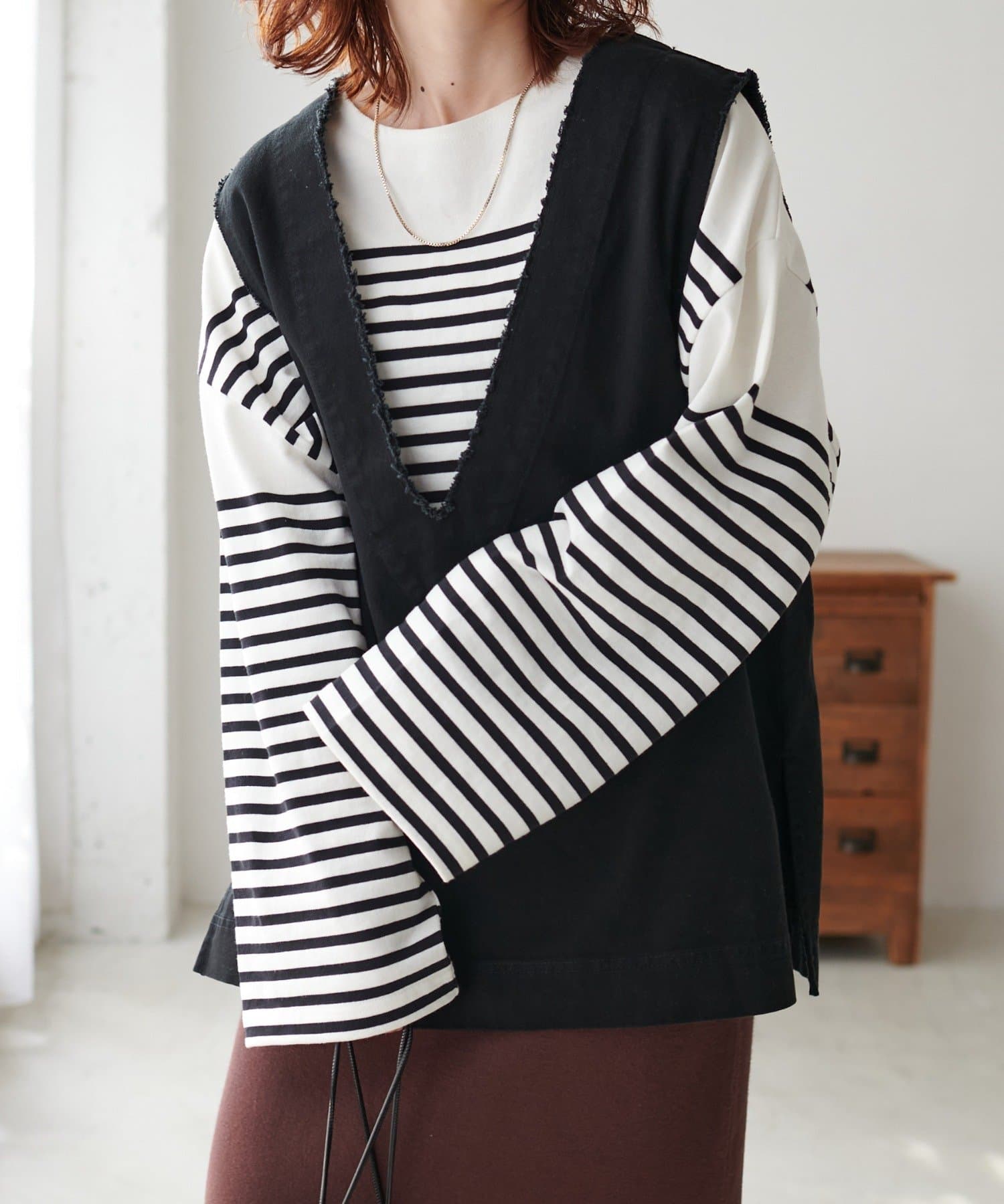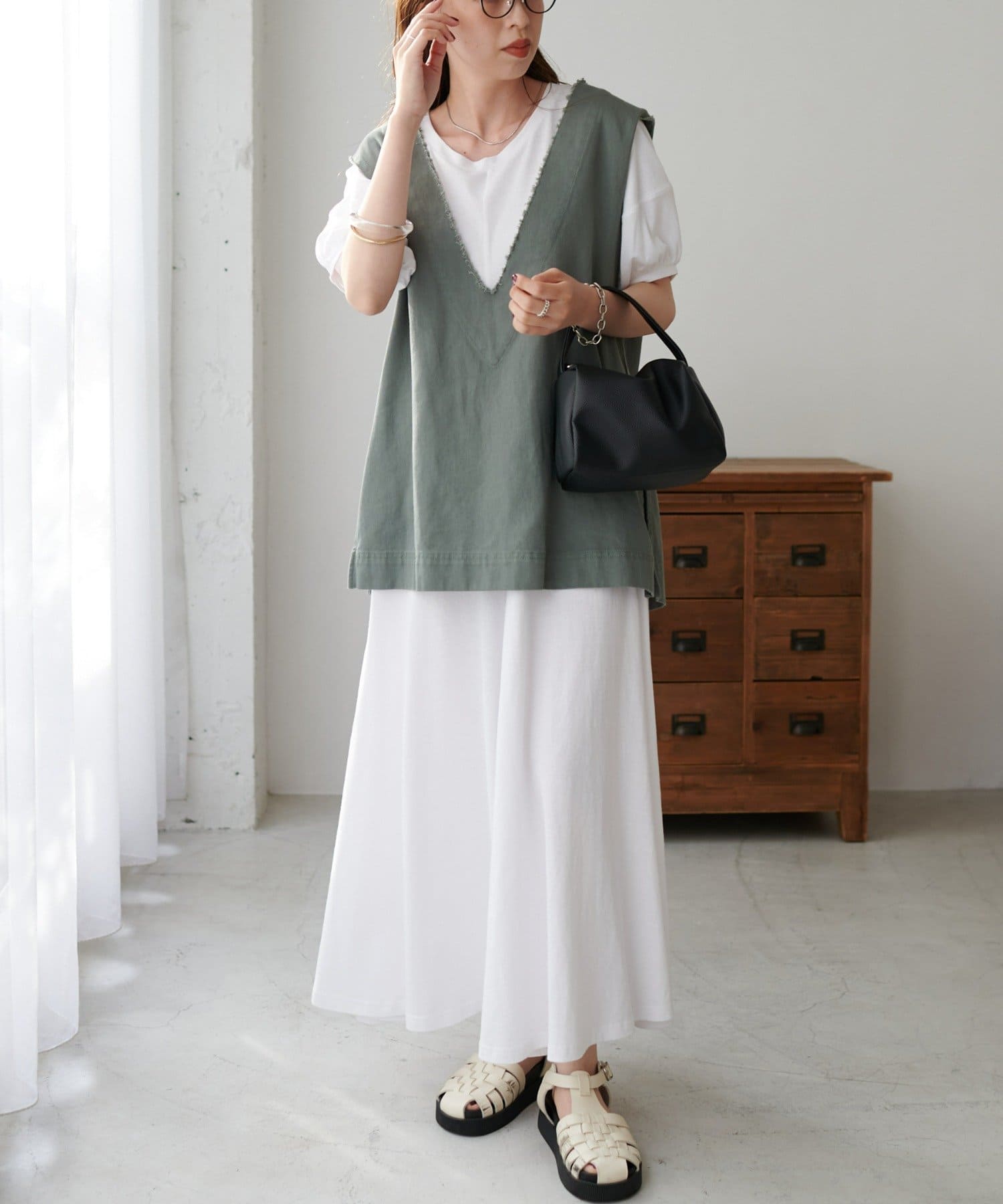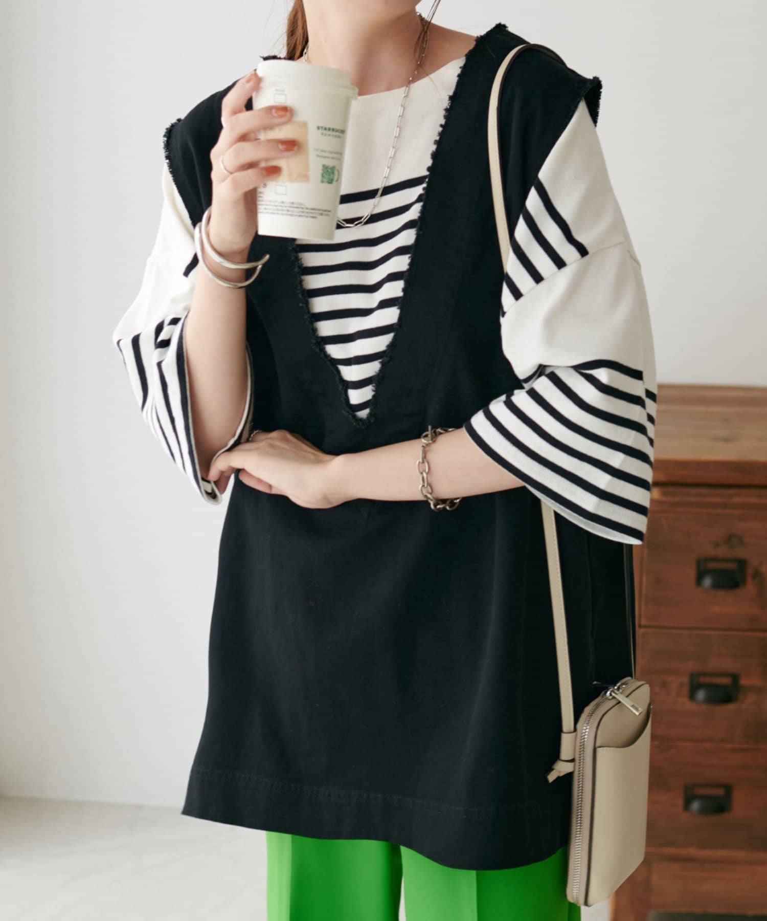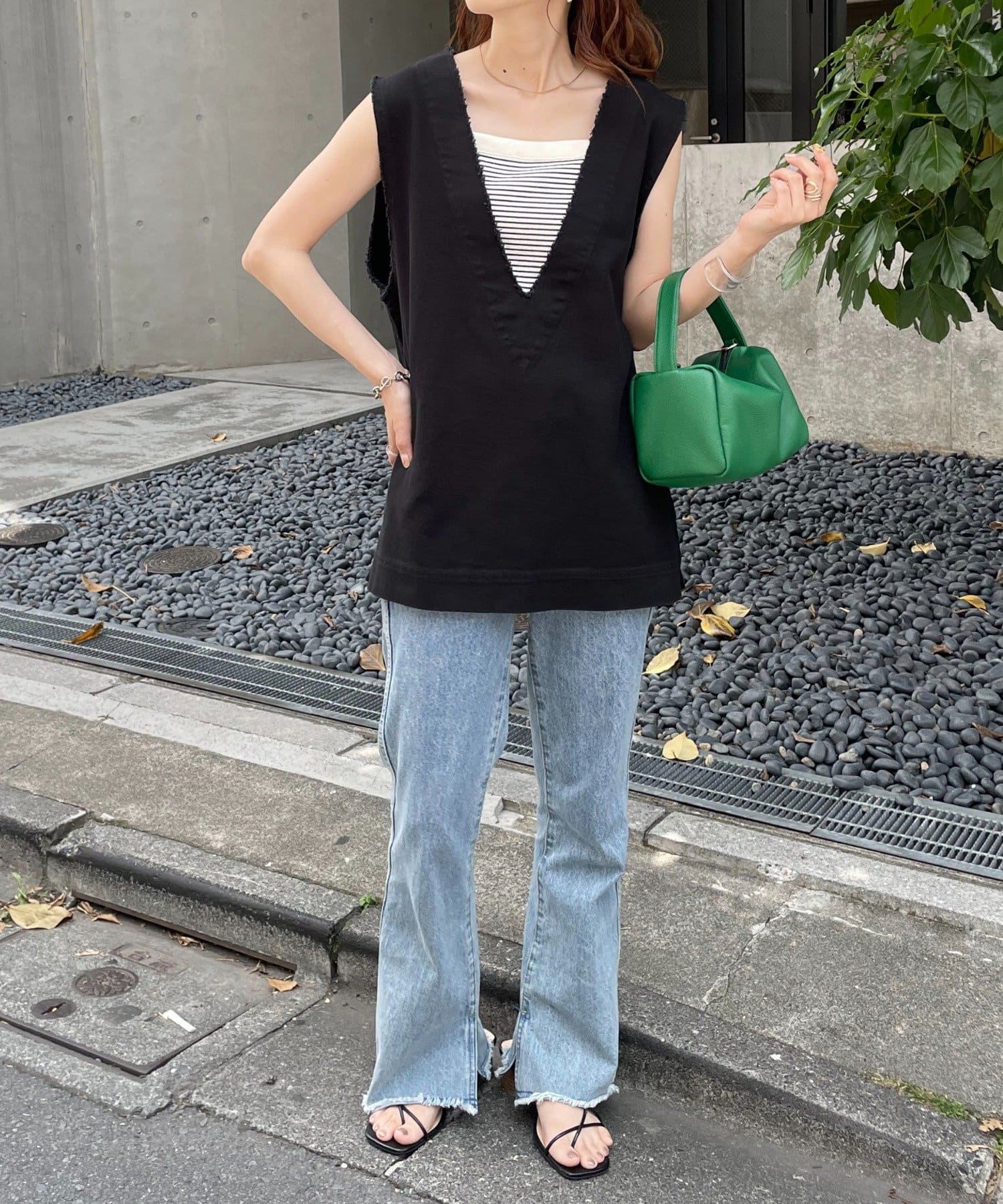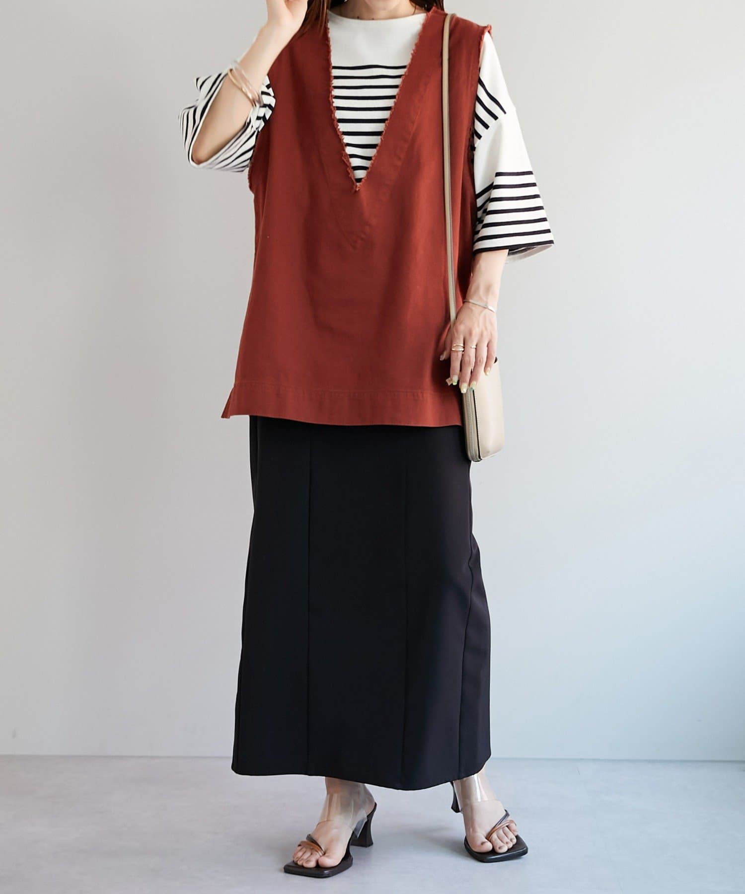 【シーズンレスに活躍◎/WEB限定】USコットンフリンジ深Vベスト