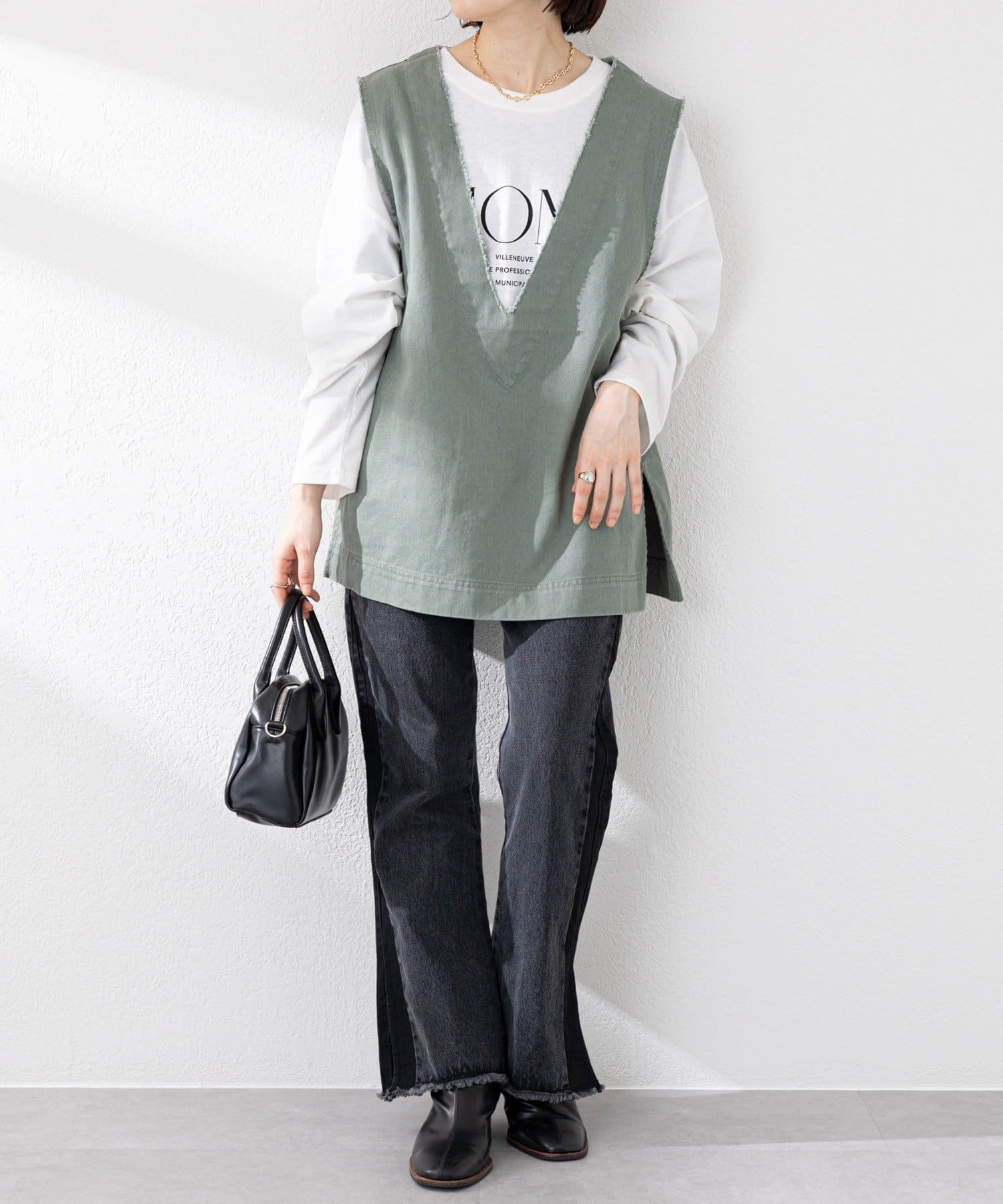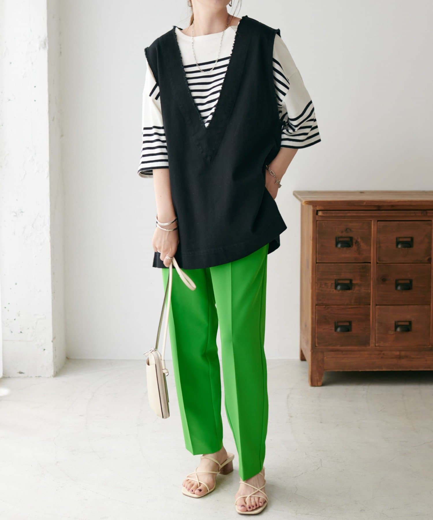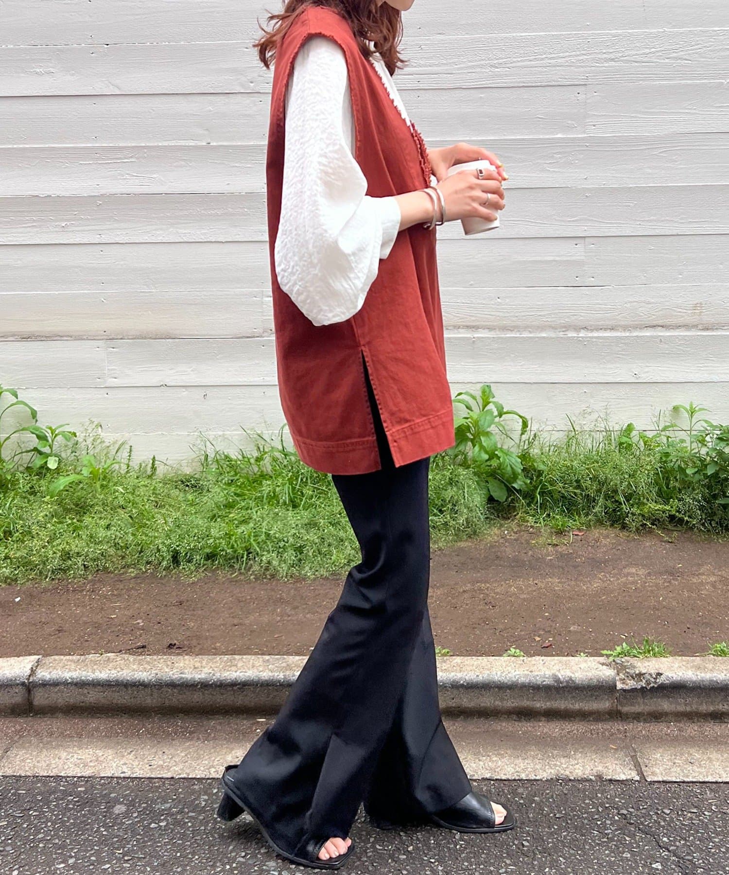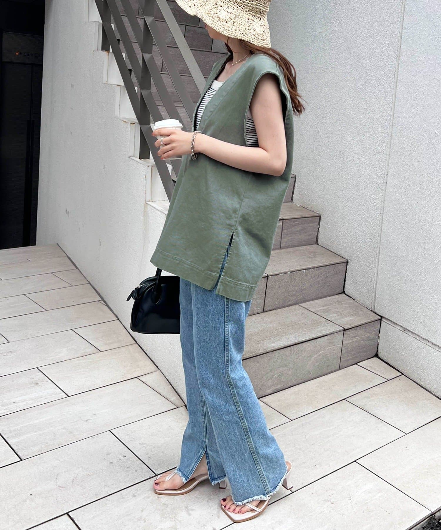 サイドスリットがあるので動きやすく、すっきり見えするのも嬉しいポイント。ロンTやシャツを合わせてシーズンレスに活躍できるアイテムです。