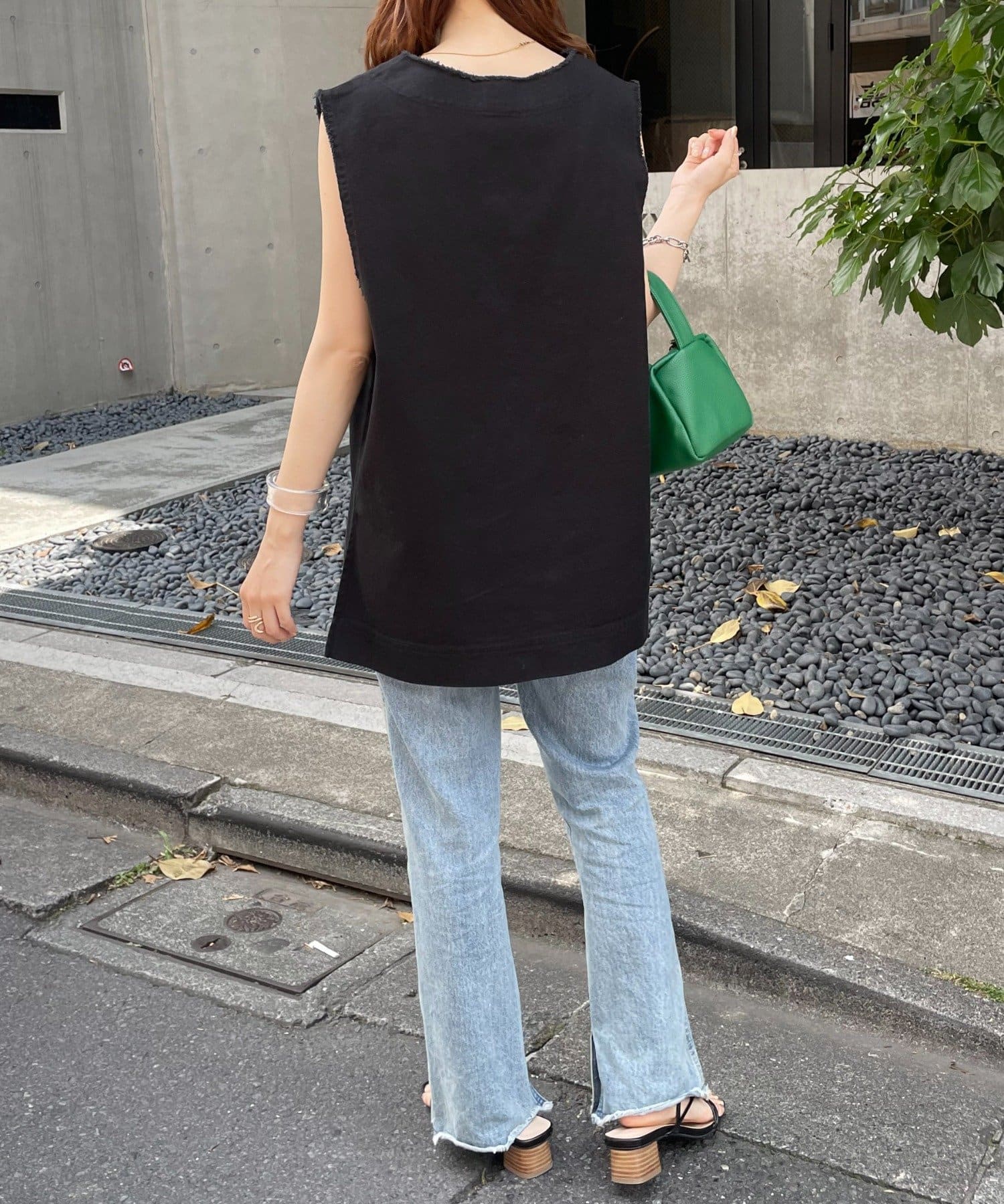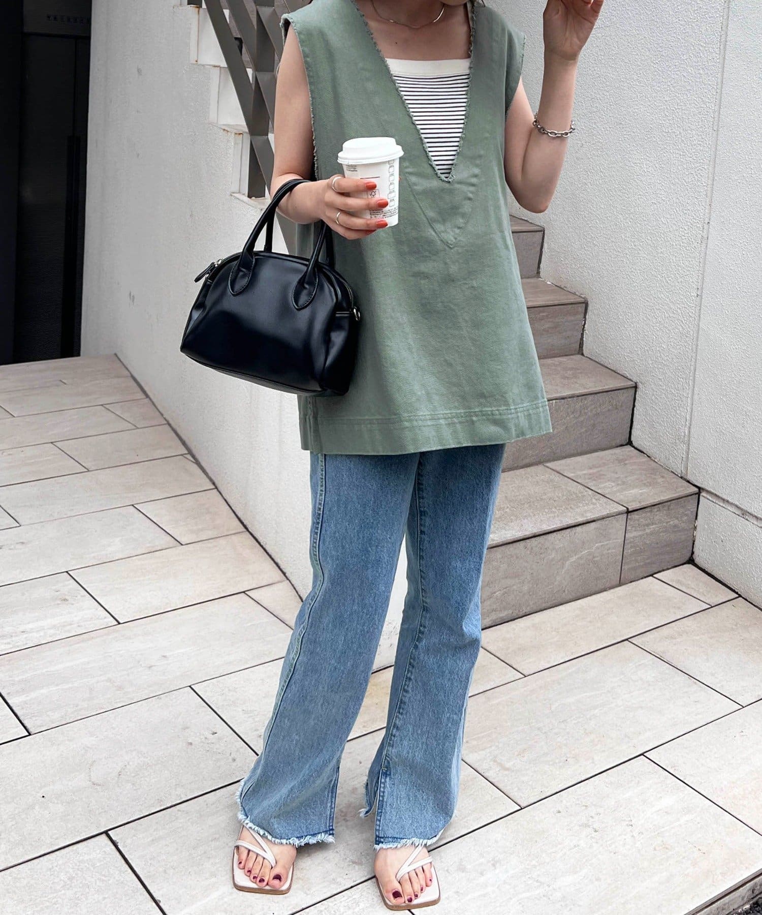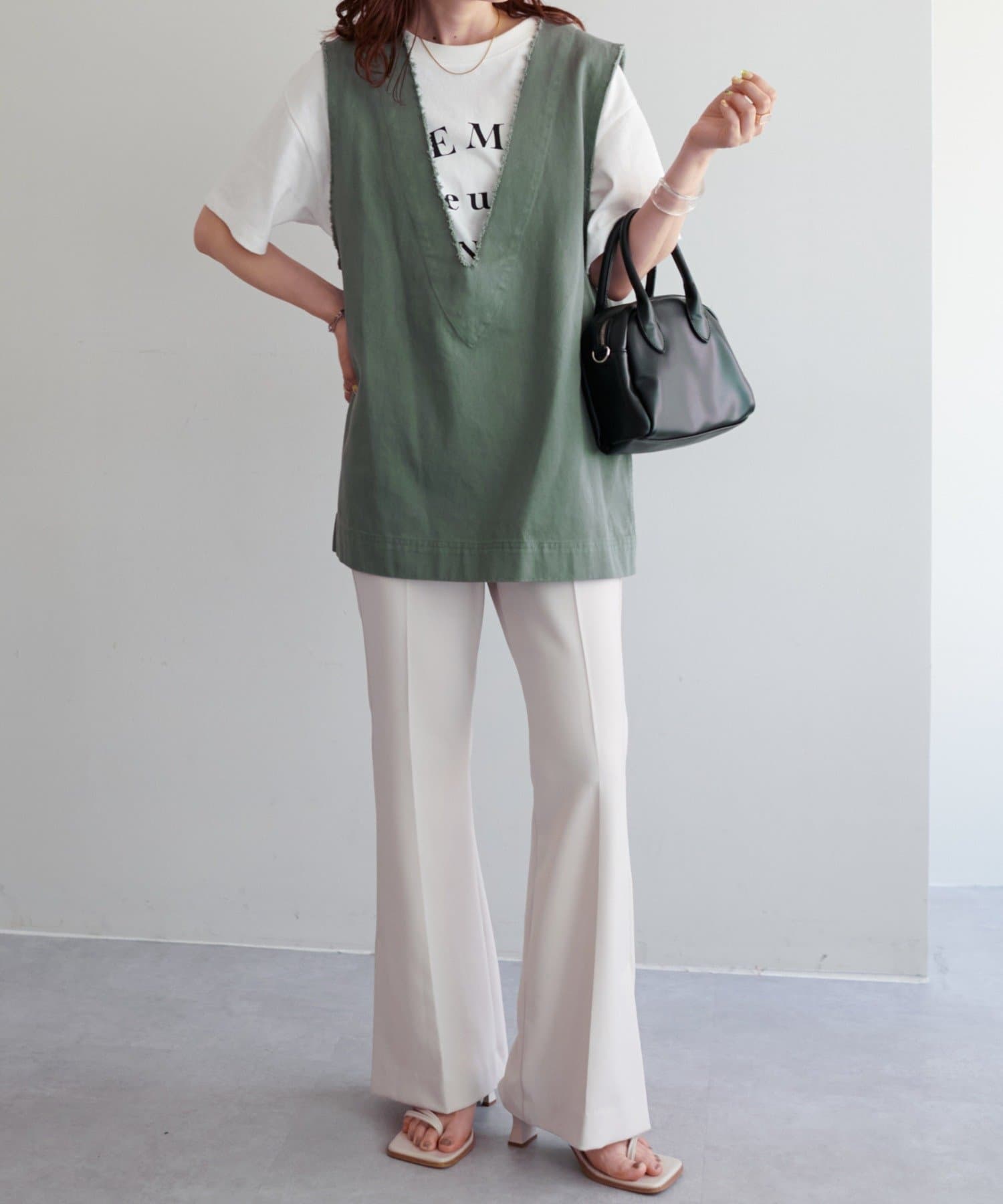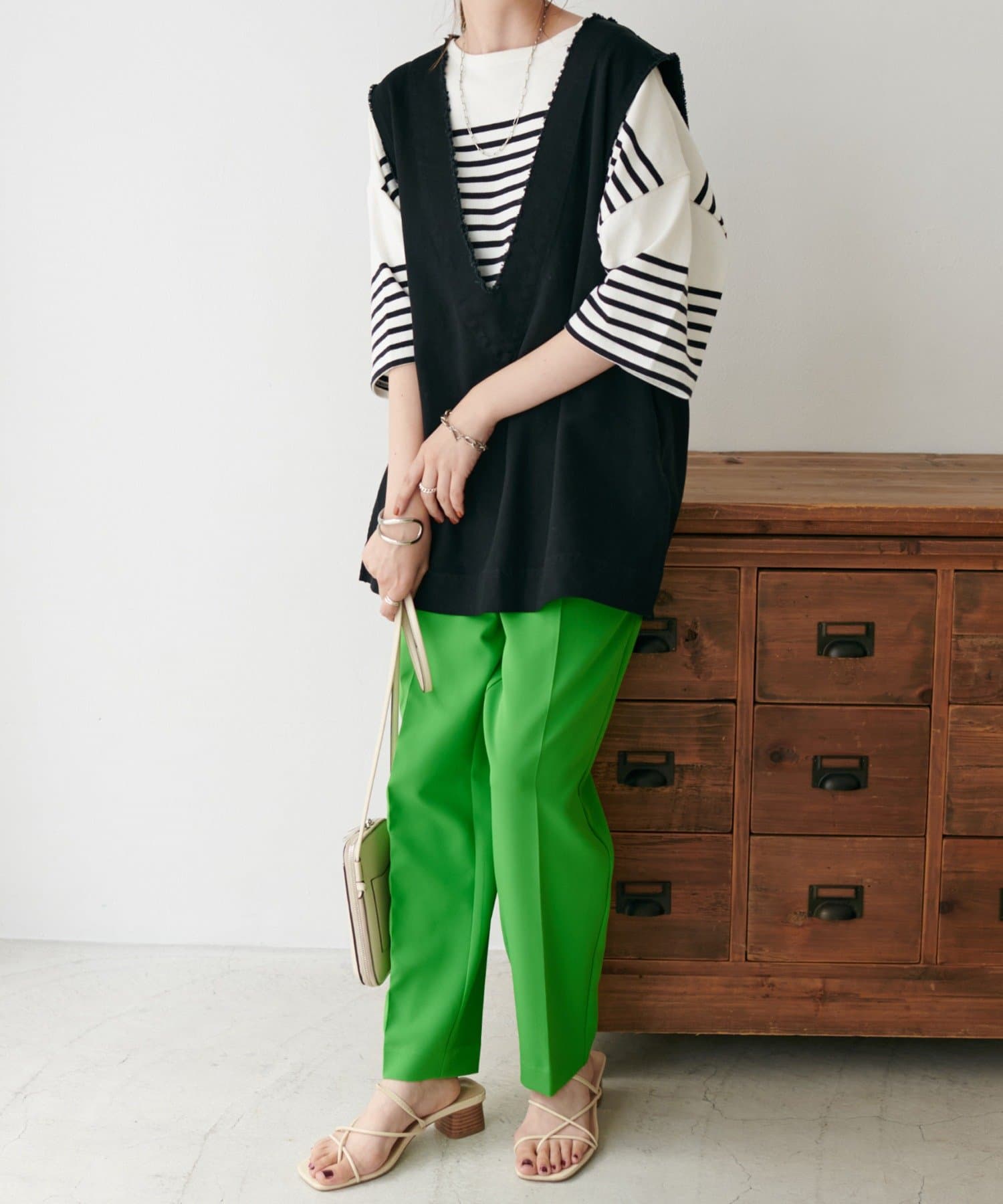 サイドスリットがあるので動きやすく、すっきり見えするのも嬉しいポイント。ロンTやシャツを合わせてシーズンレスに活躍できるアイテムです。