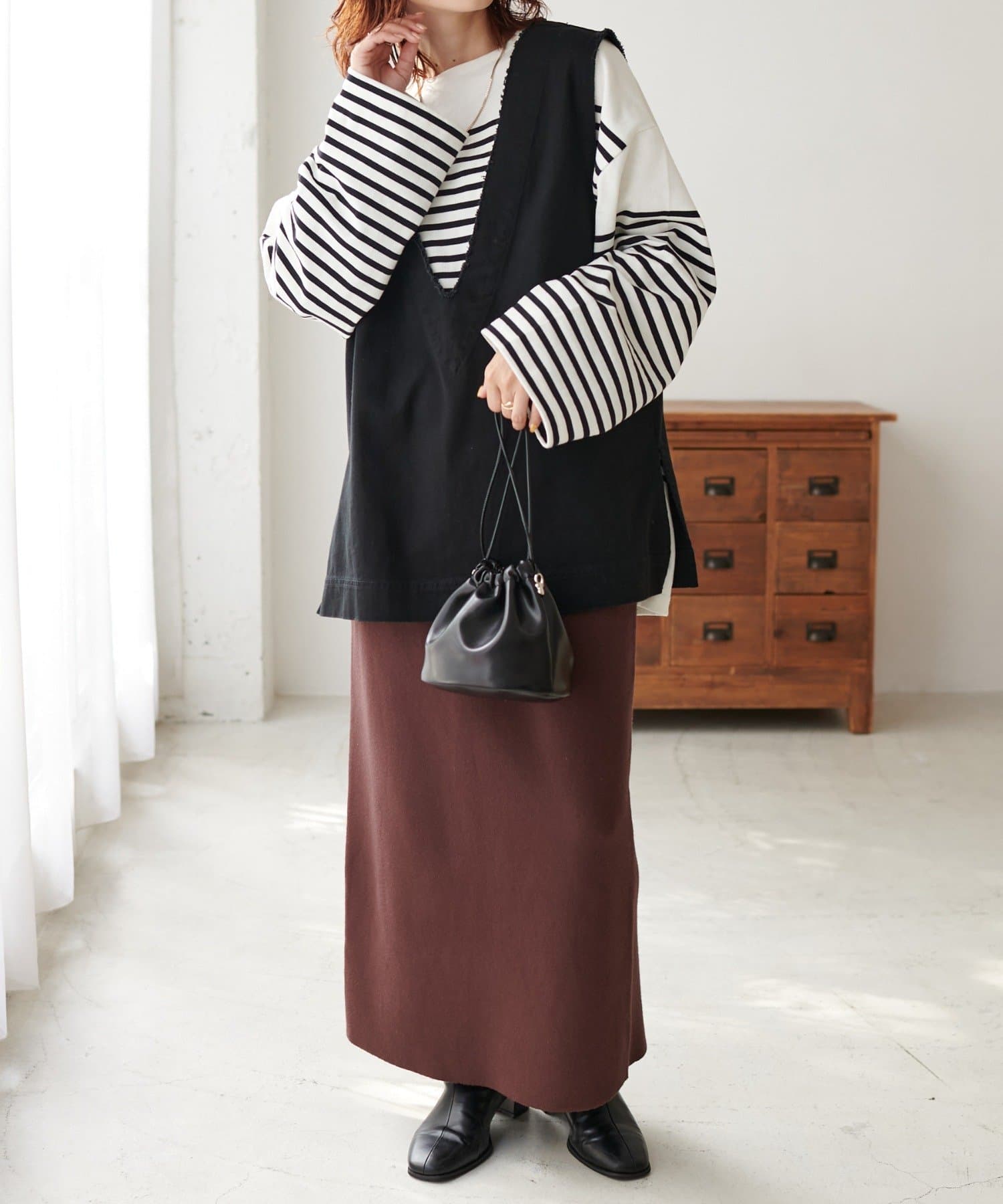 パンツはもちろん、スカートに合わせてもバランスよくまとまります。