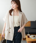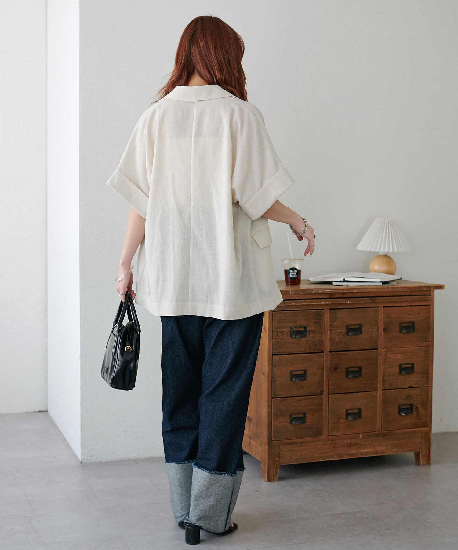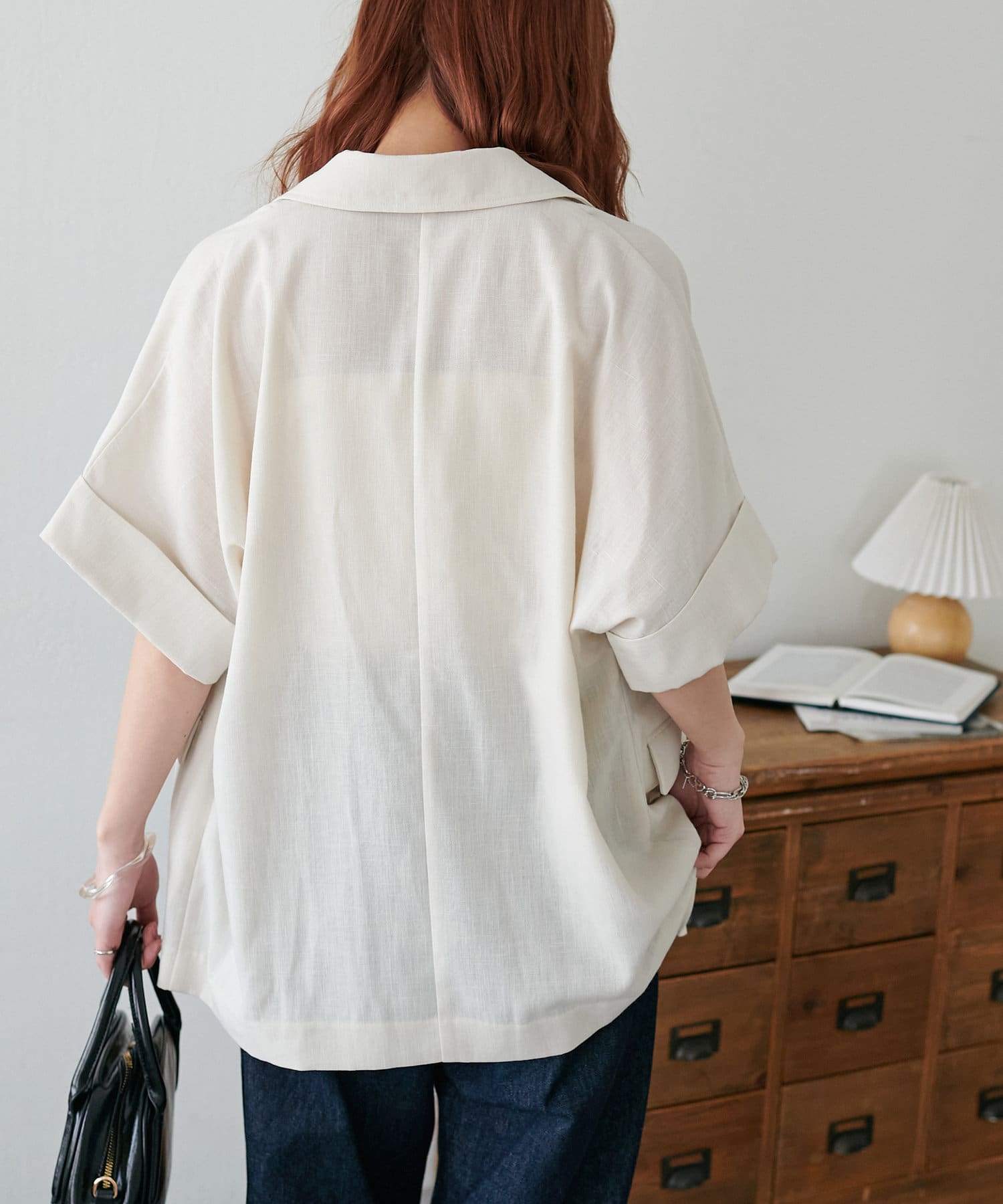 【夏も快適/二の腕・腰回り着痩せ】リネンライク半袖シャツジャケット《WEB限定カラーあり》