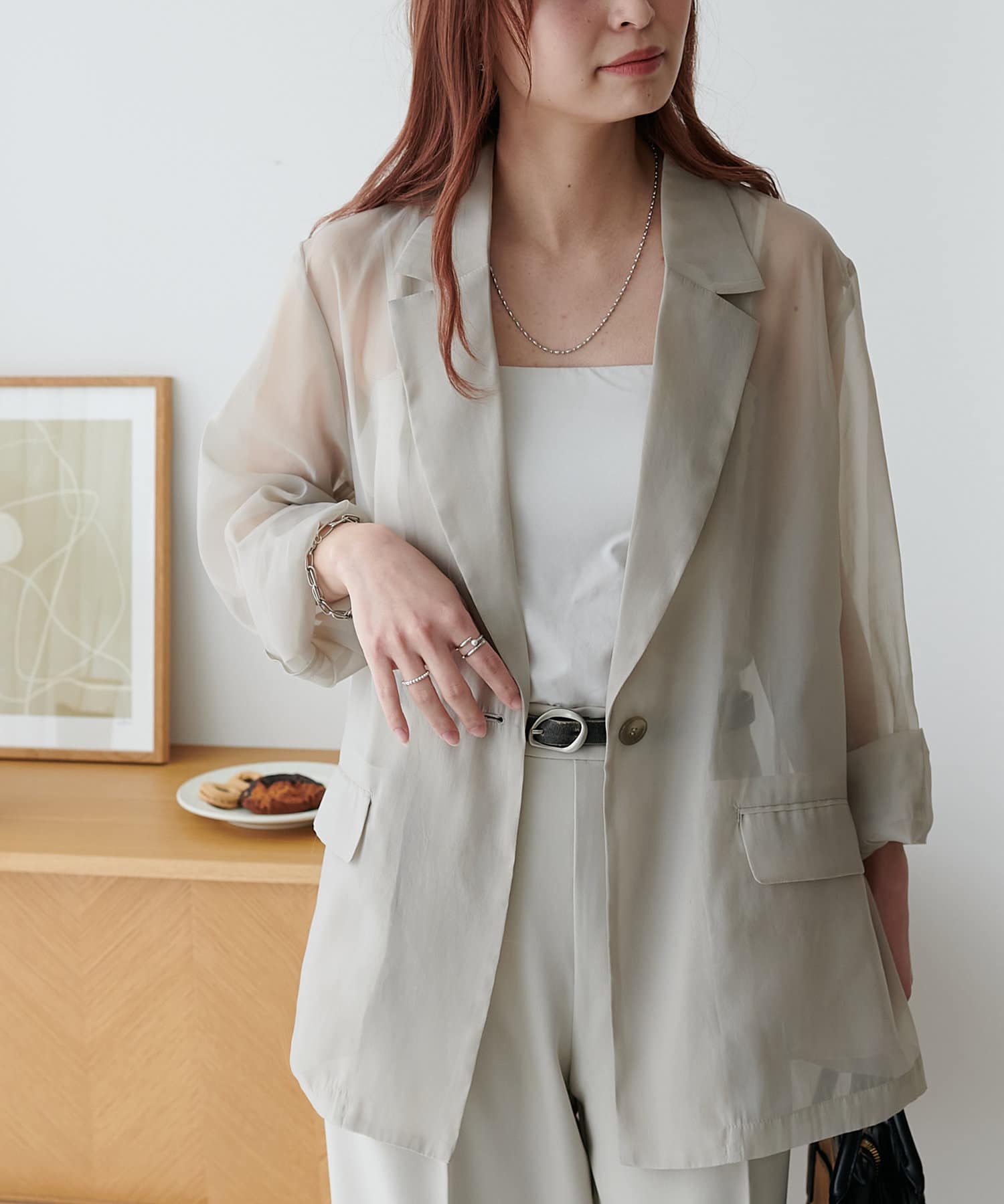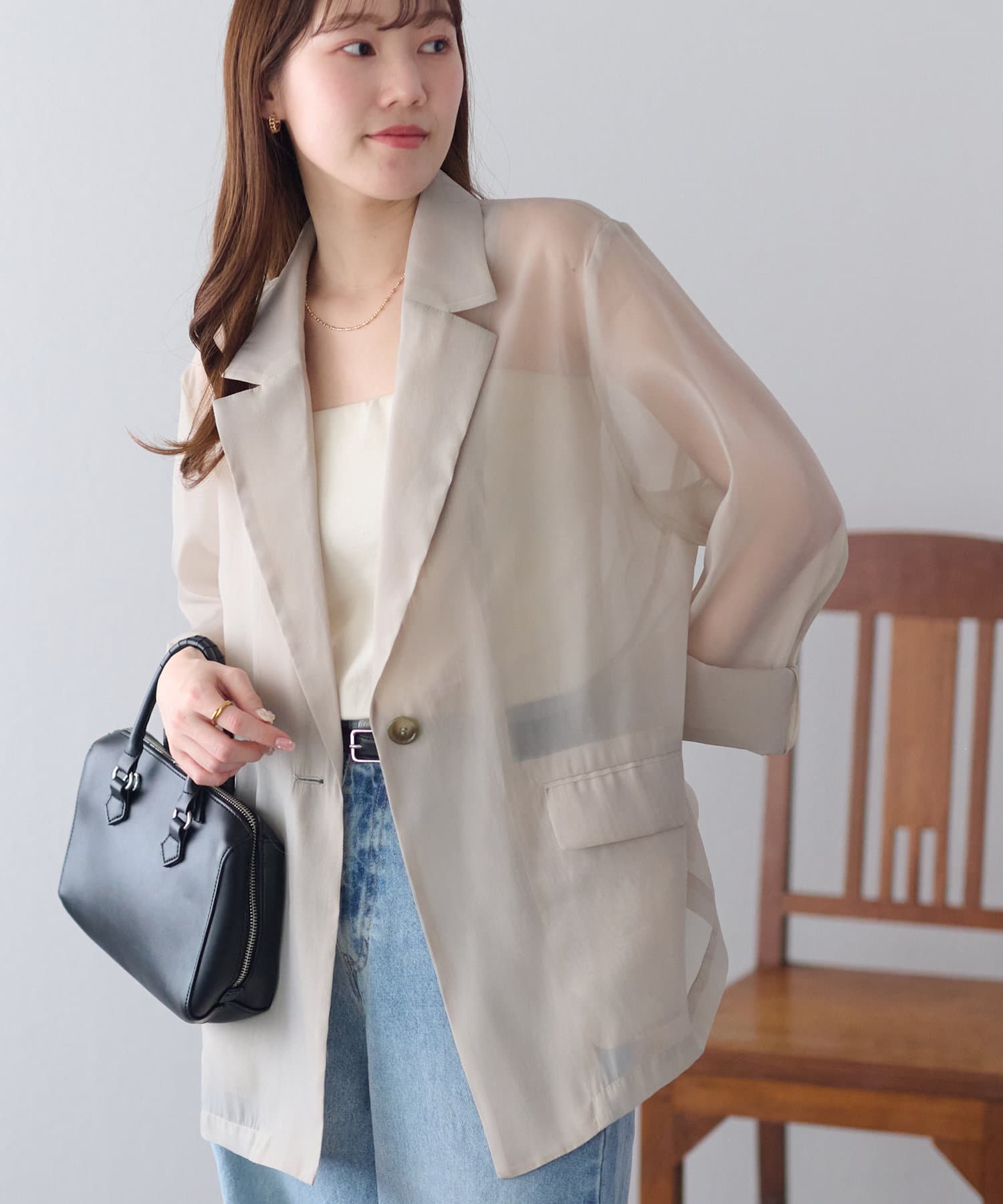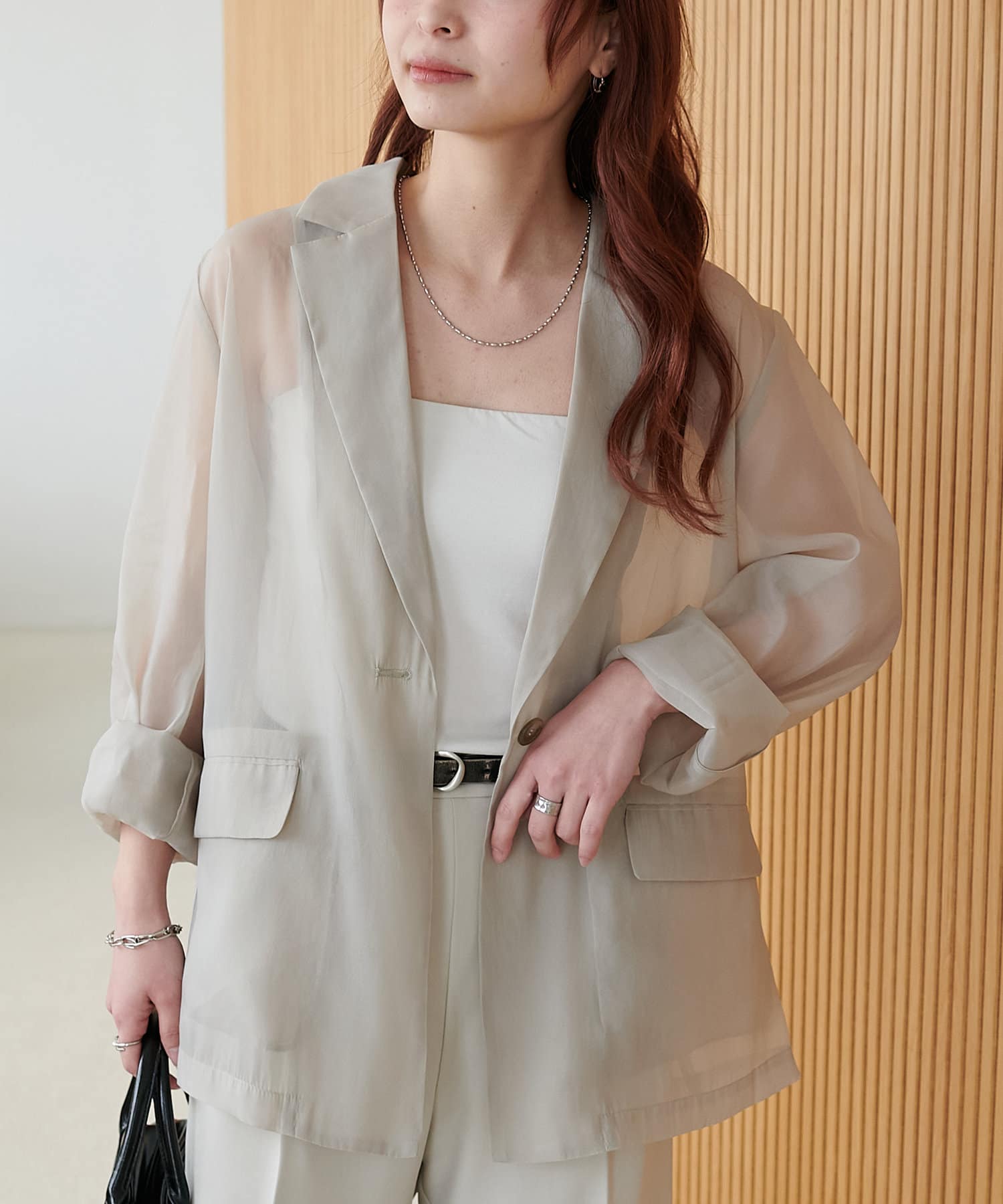 軽やかなシアー素材で抜け感のあるオシャ見えテーラードジャケット♩