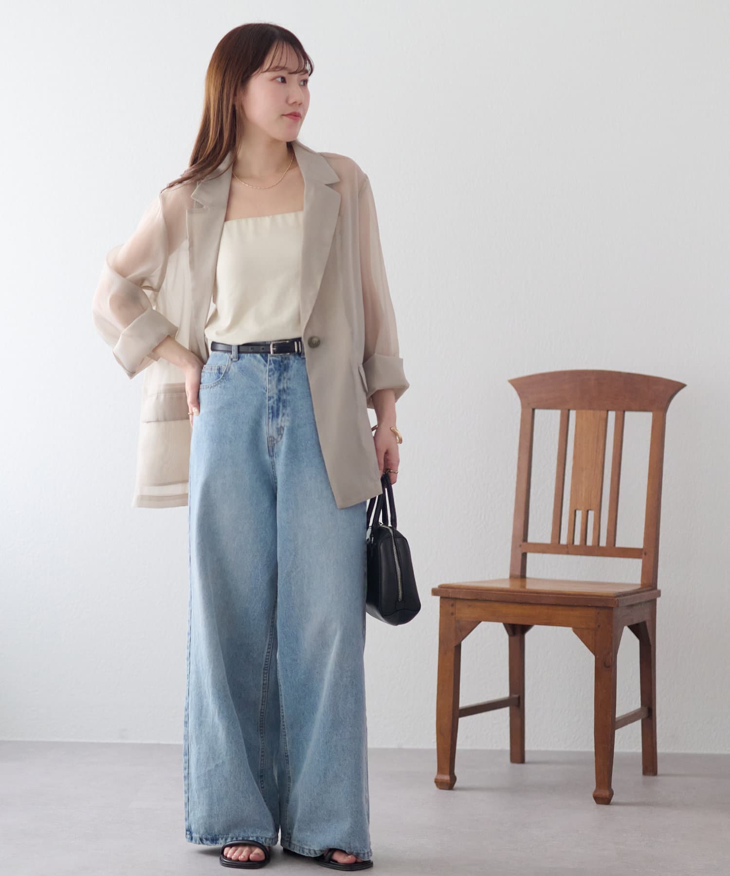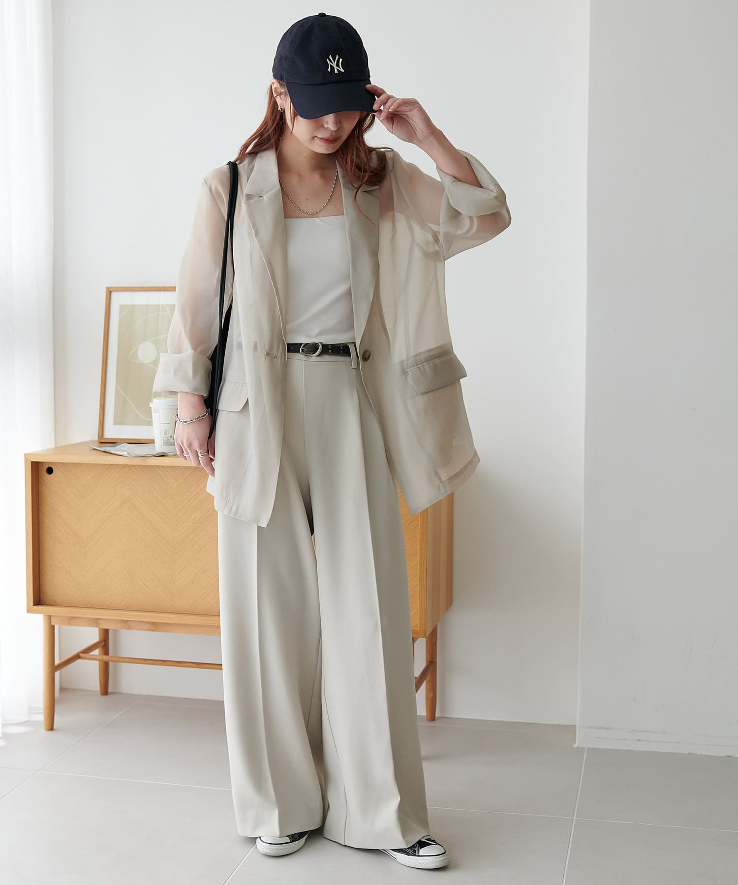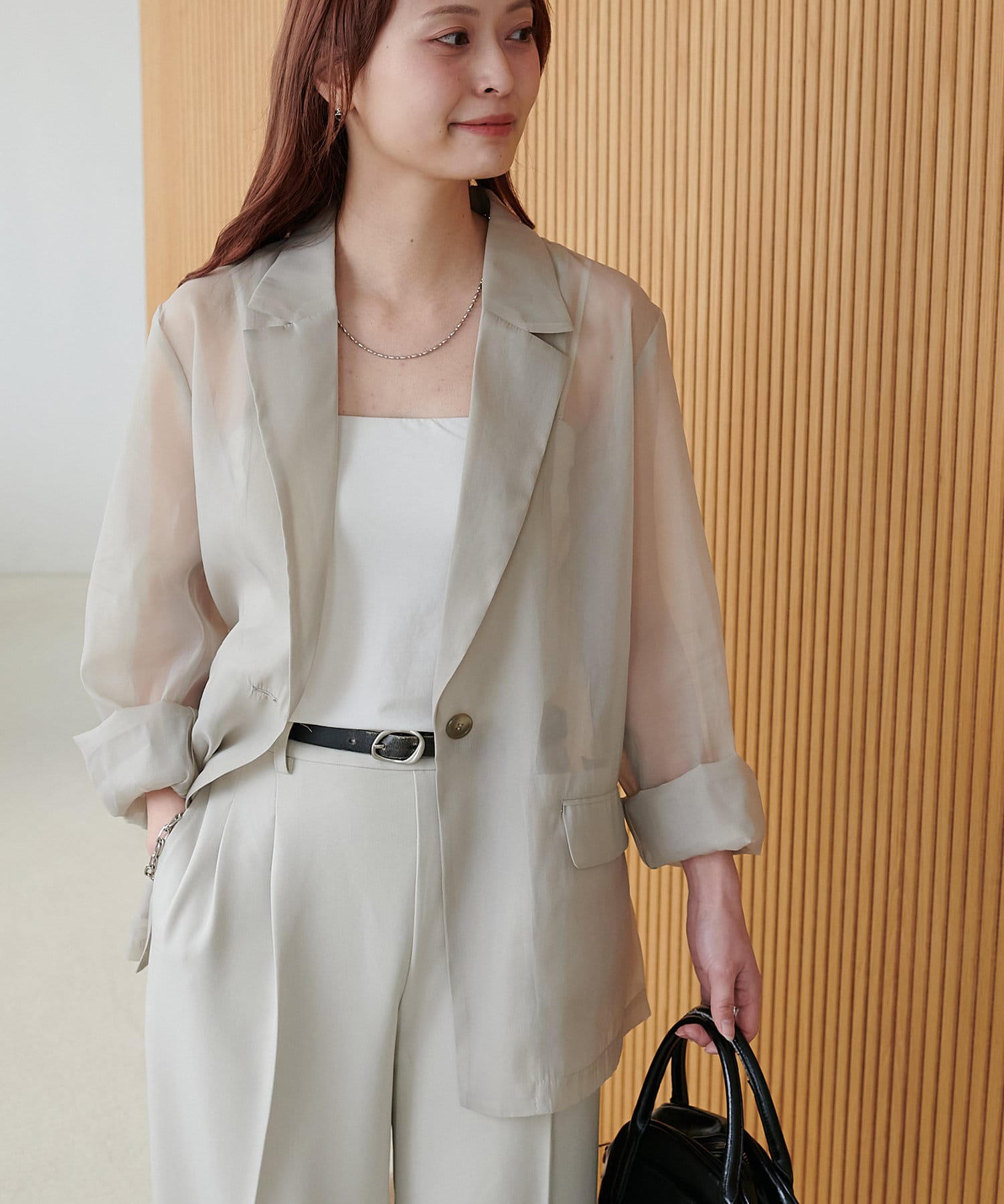 軽やかなシアー素材で抜け感のあるオシャ見えテーラードジャケット♩