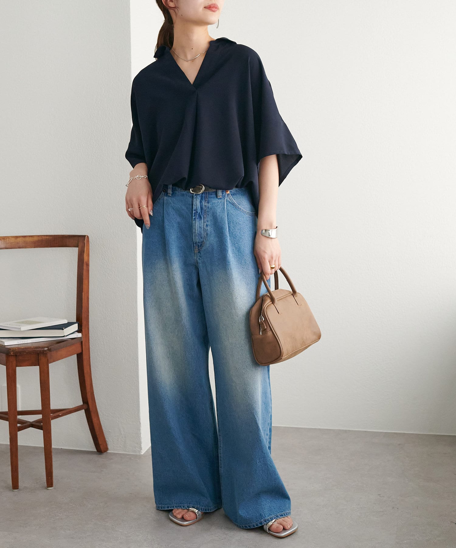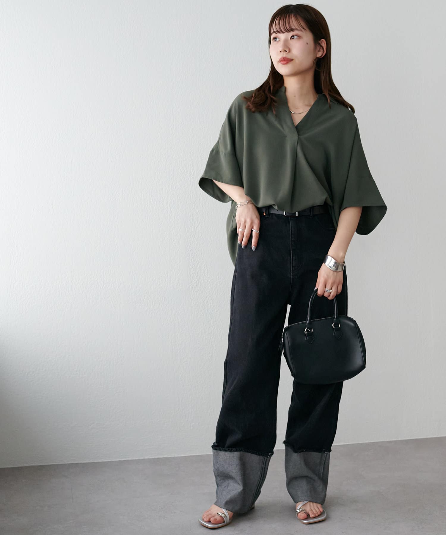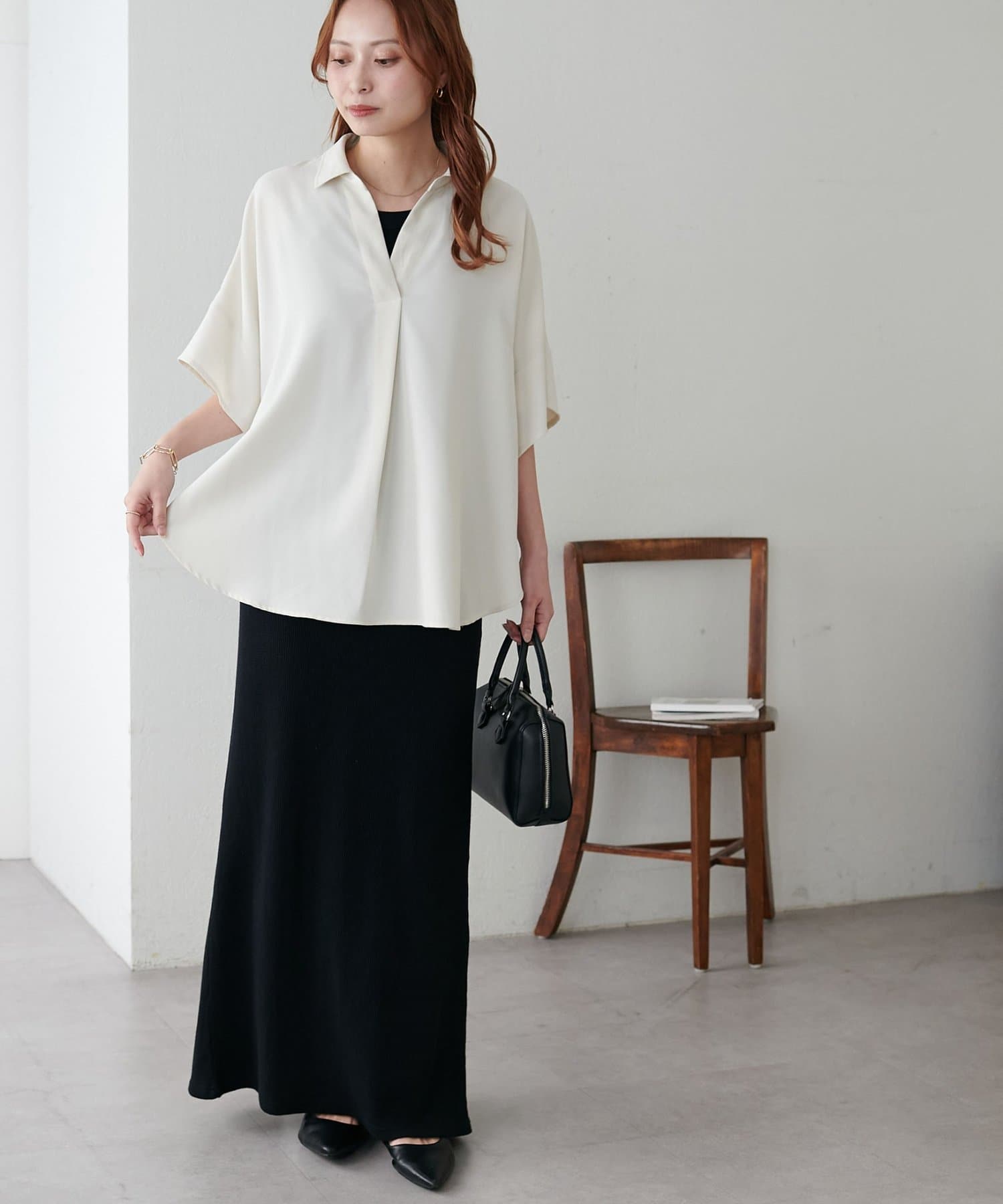 程よくゆとりのあるシルエットは、体型カバーをしつつも、女性らしい柔らかい印象を与えてくれます♩