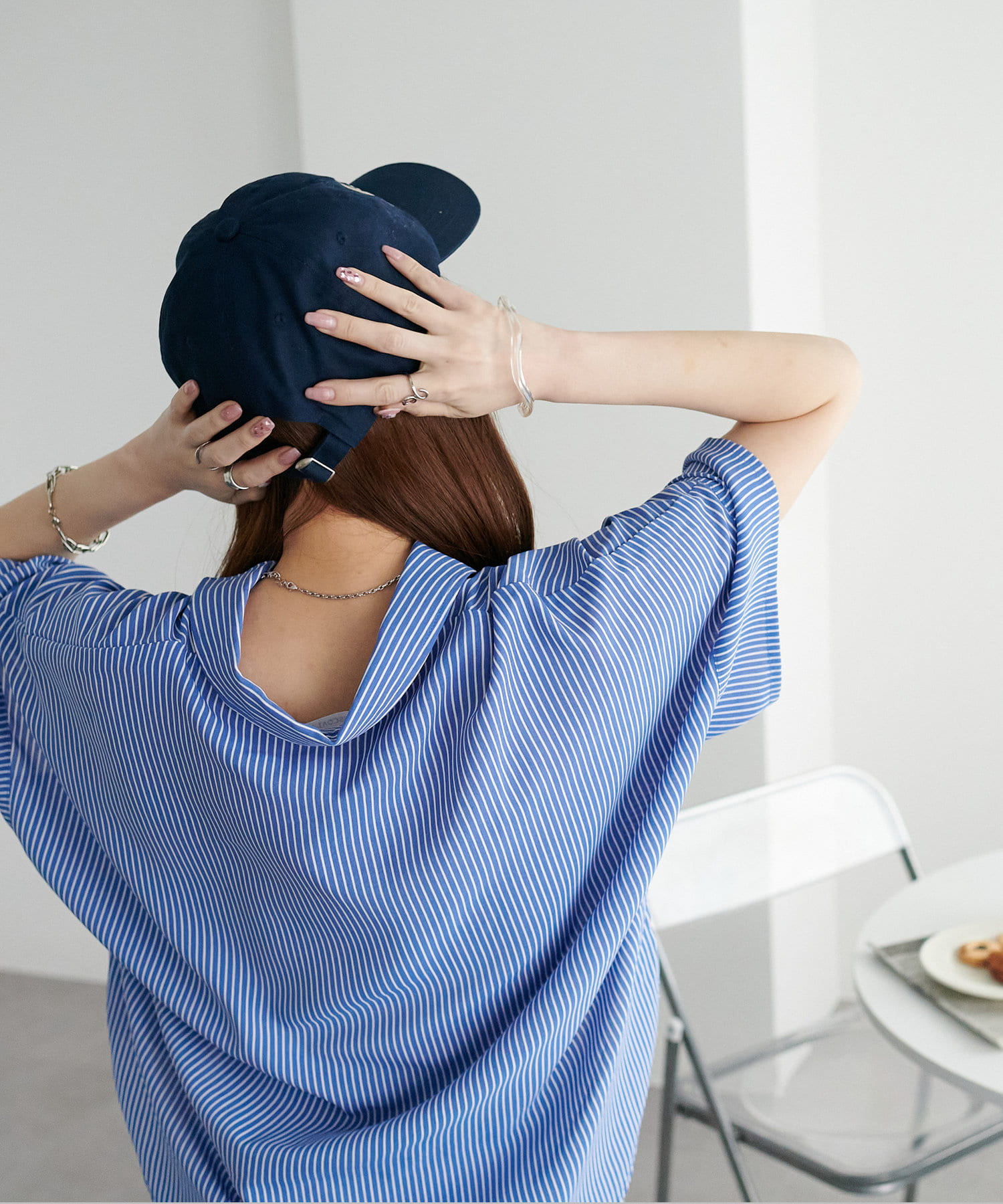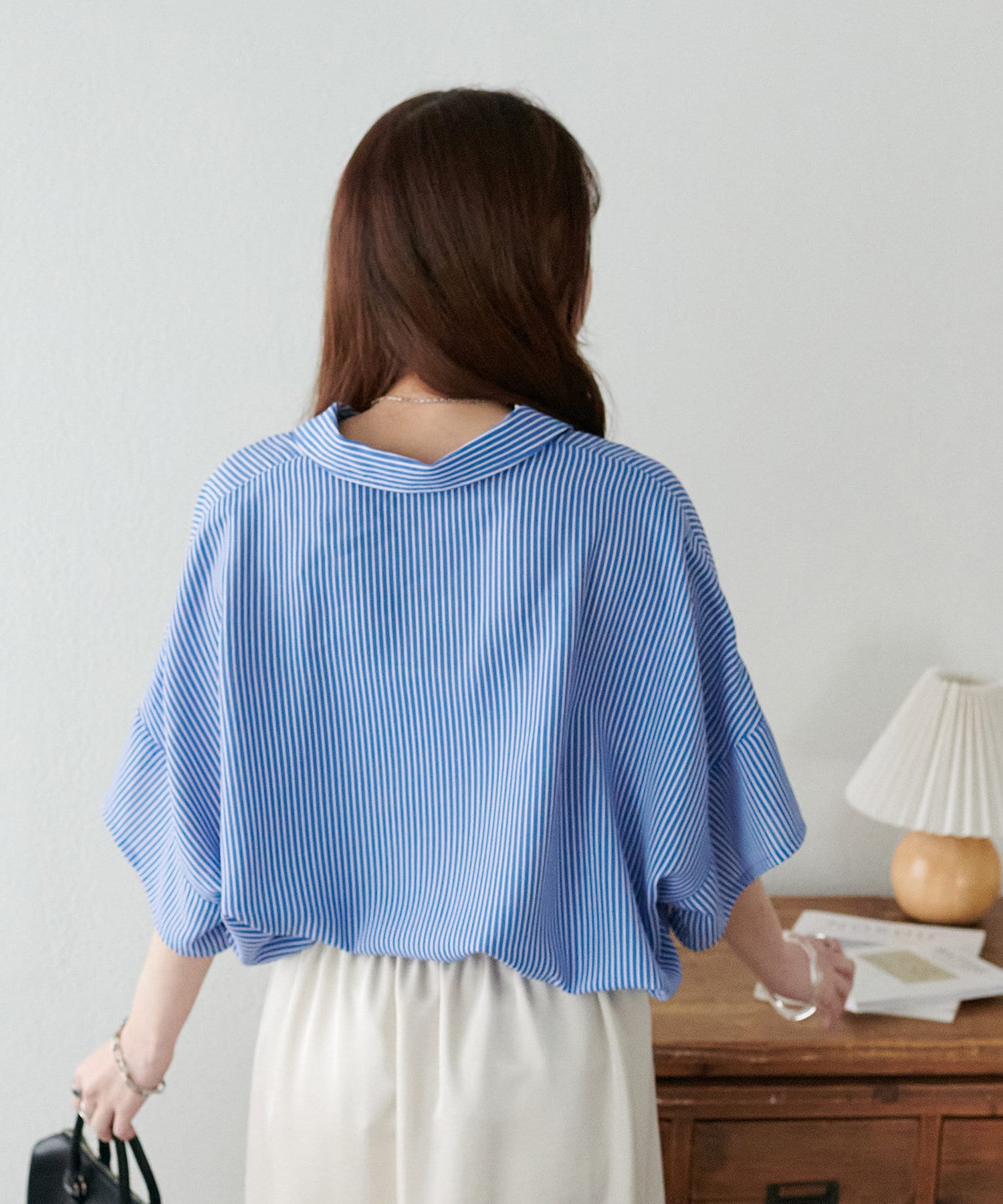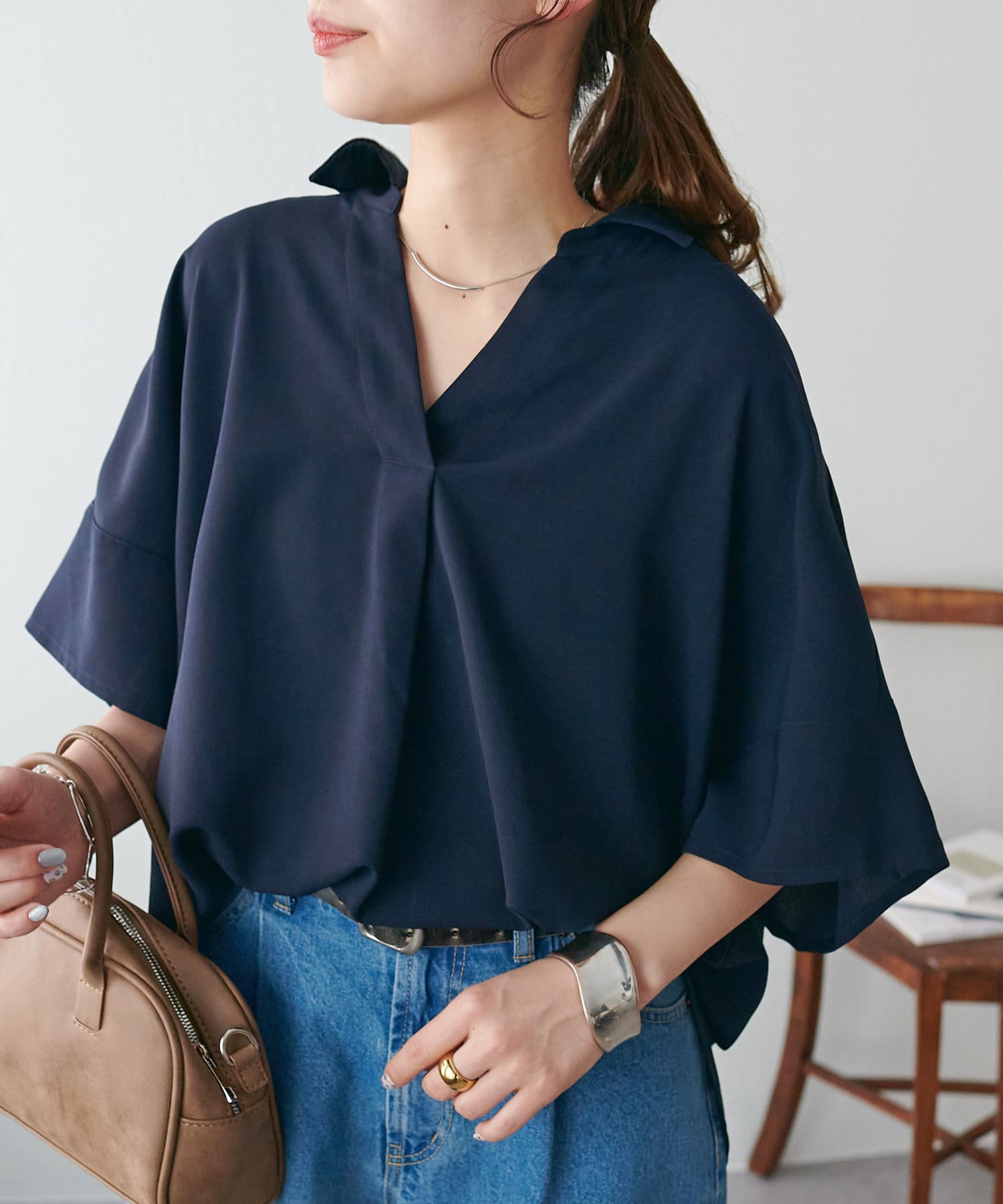 スキッパーデザインの襟元は、抜け感が出て顔周りもスッキリ◎