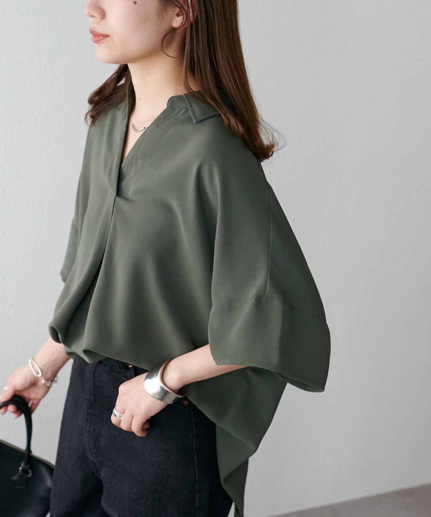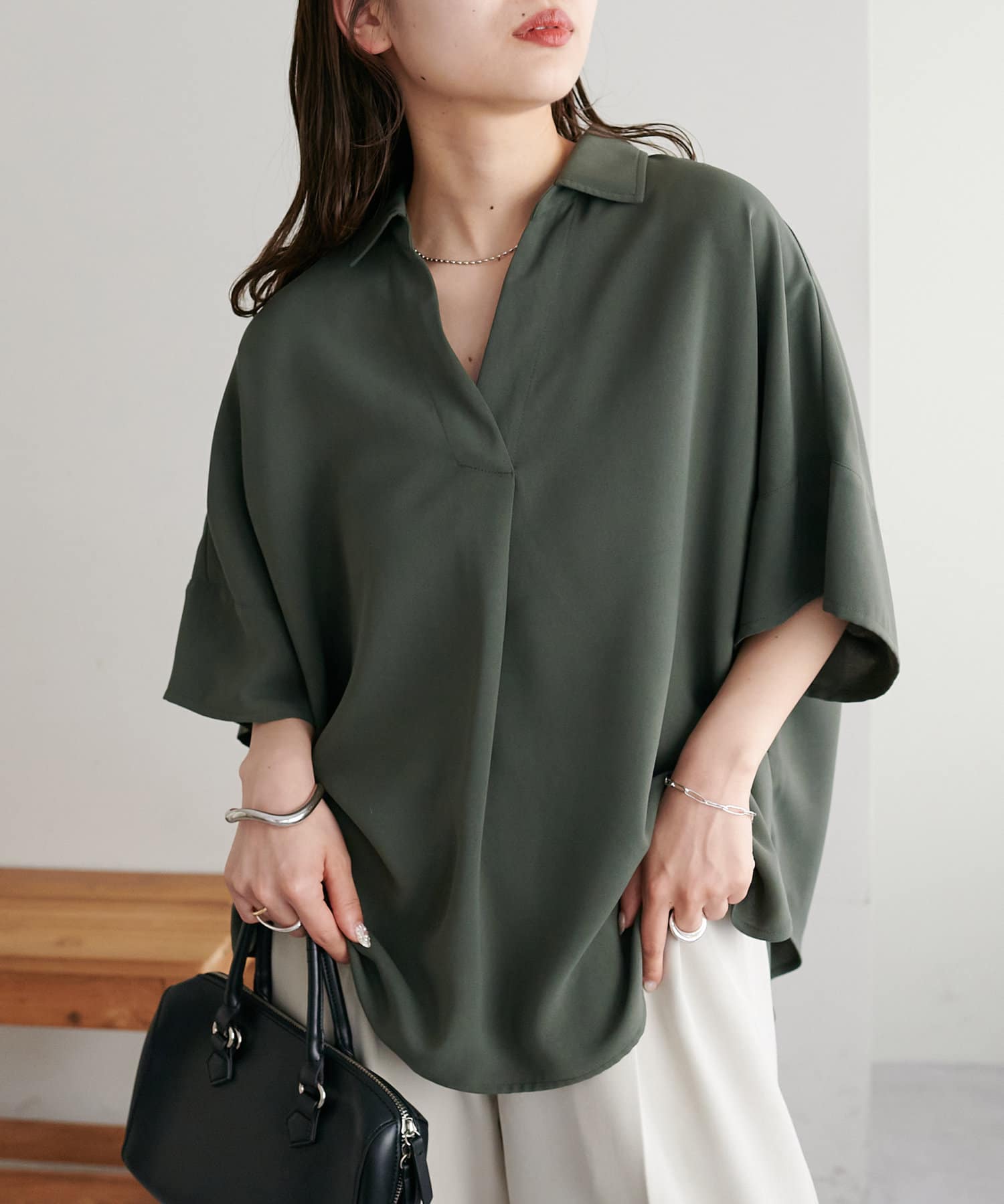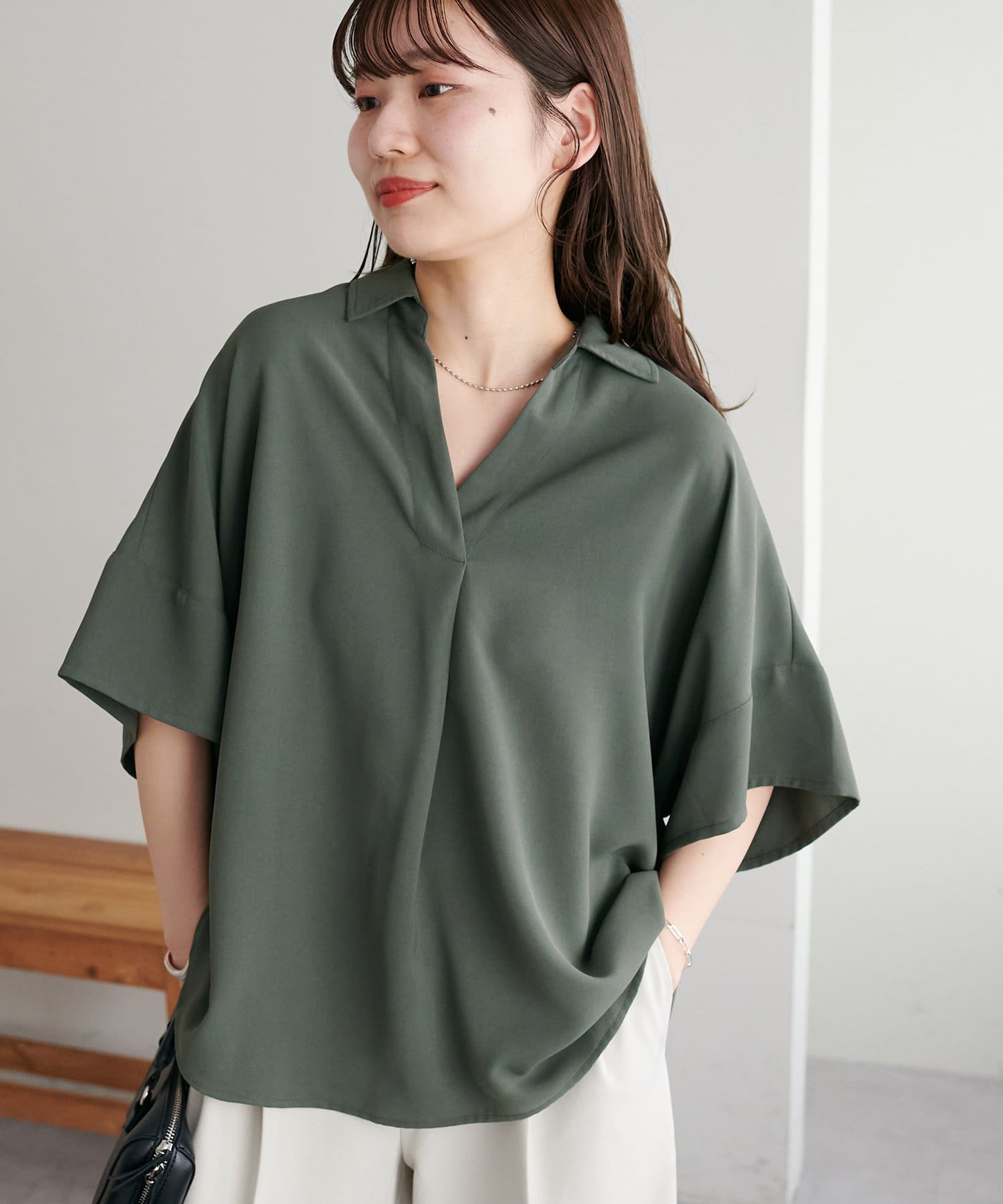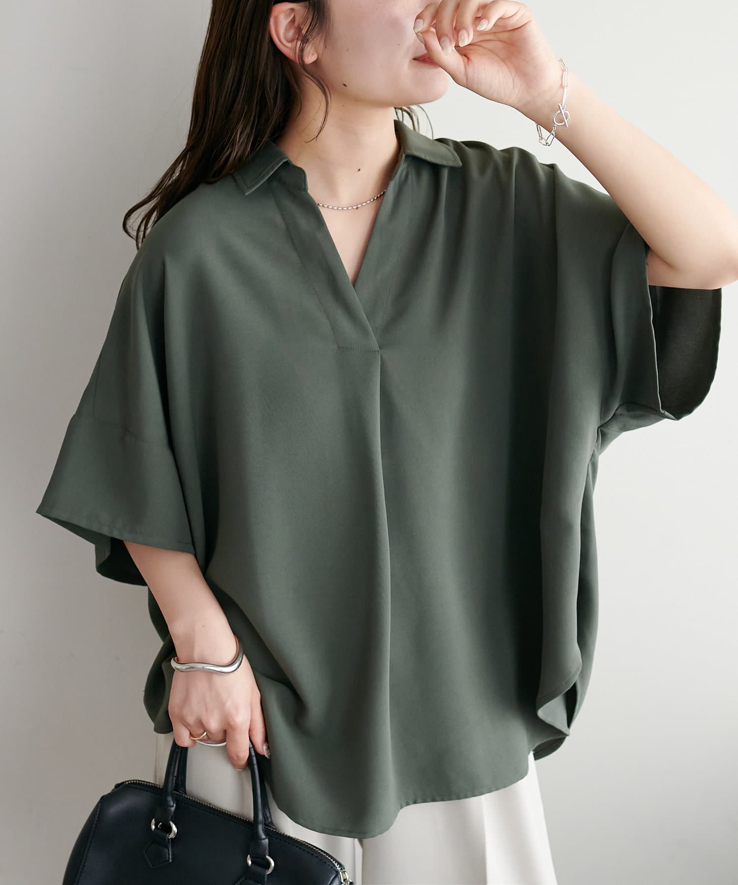 暑い季節も快適に過ごせる、さらりとした肌触りのスキッパーブラウス。