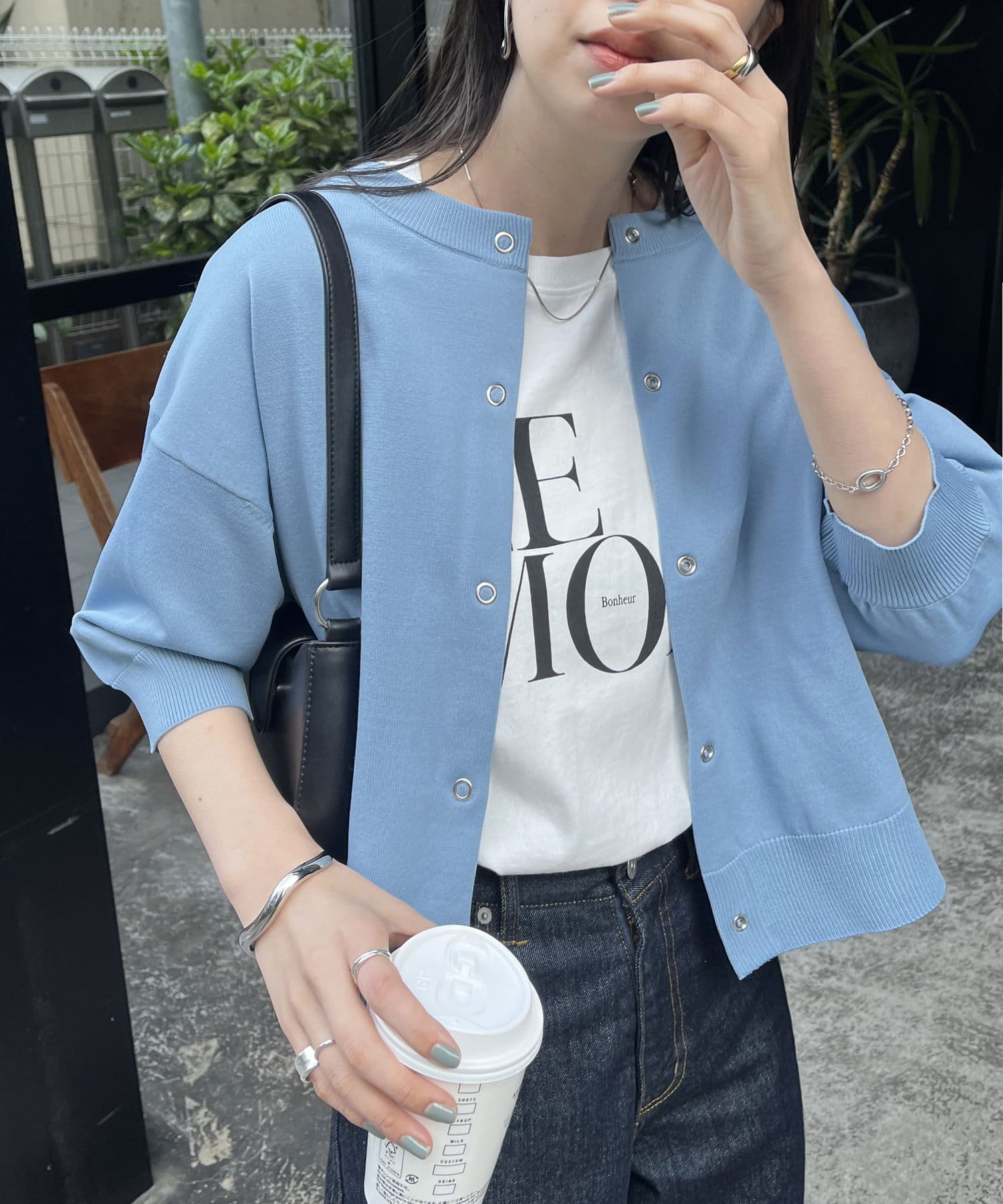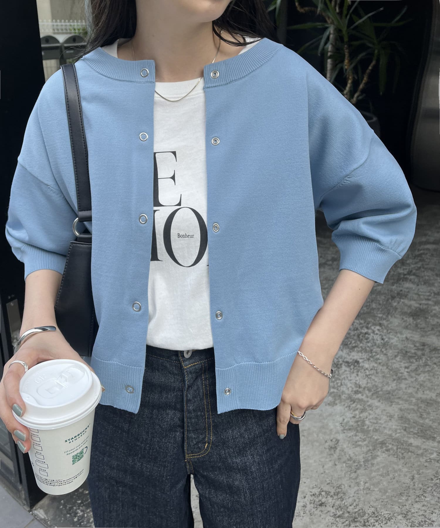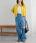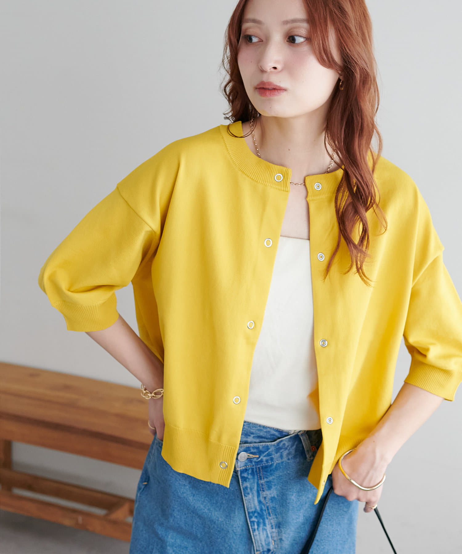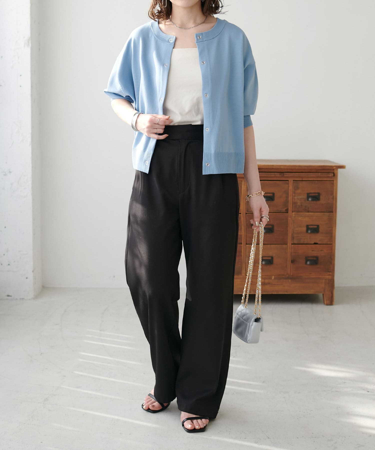 購入場所:パルクローゼット半袖カーディガンはあまり持っておらず、この色味もなかなか冒険です。