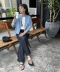 149cmスタッフ:上と下のボタンを1~2個開けると抜け感が出るので、低身長の方は特におすすめです◎