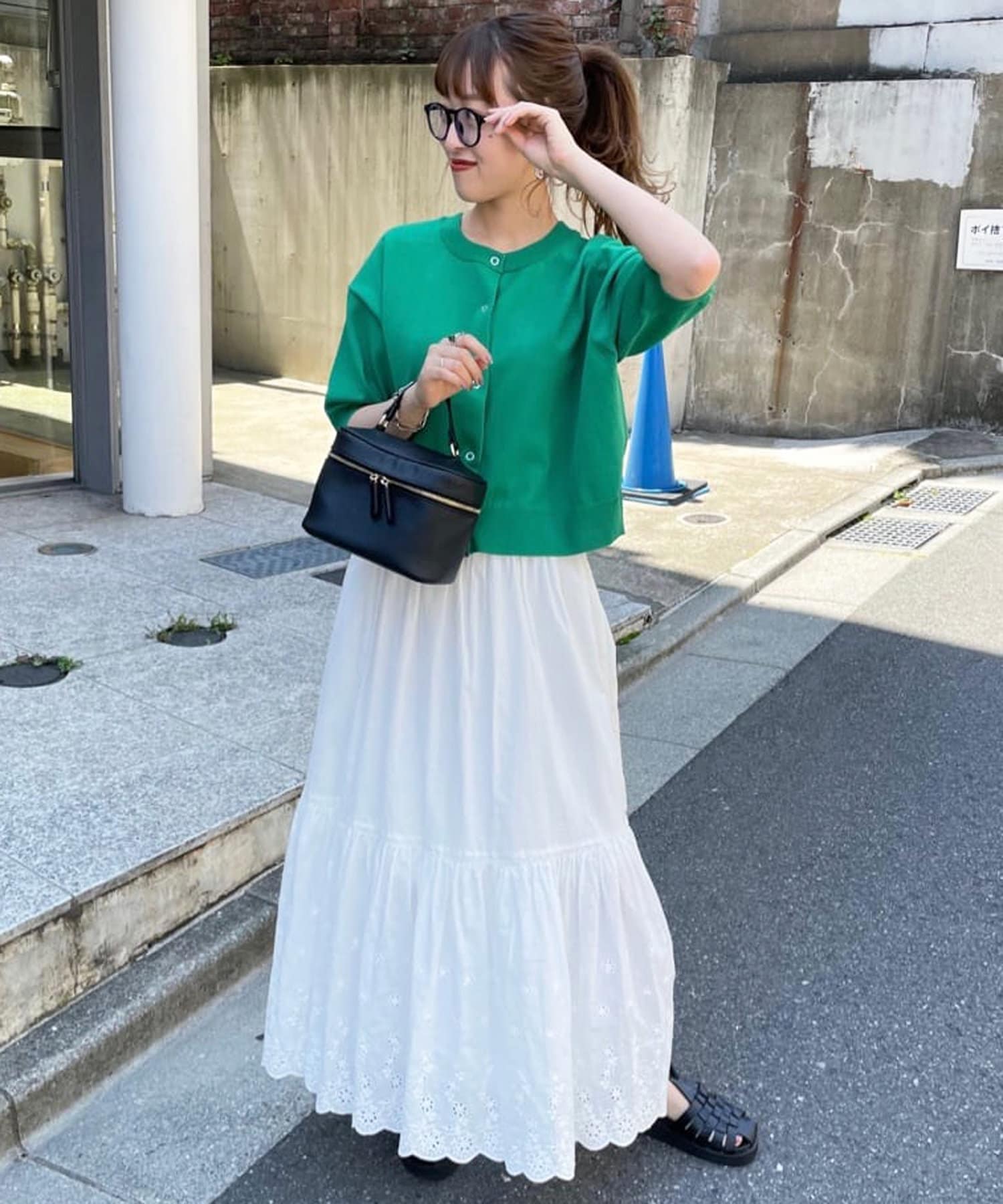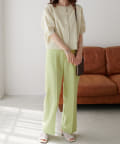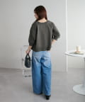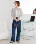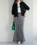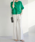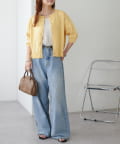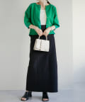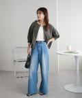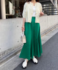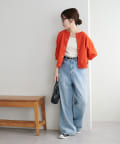 160cmスタッフ:丈感は腰にかかるくらいで、ワイドパンツやスカートともバランスよく合わせられました。