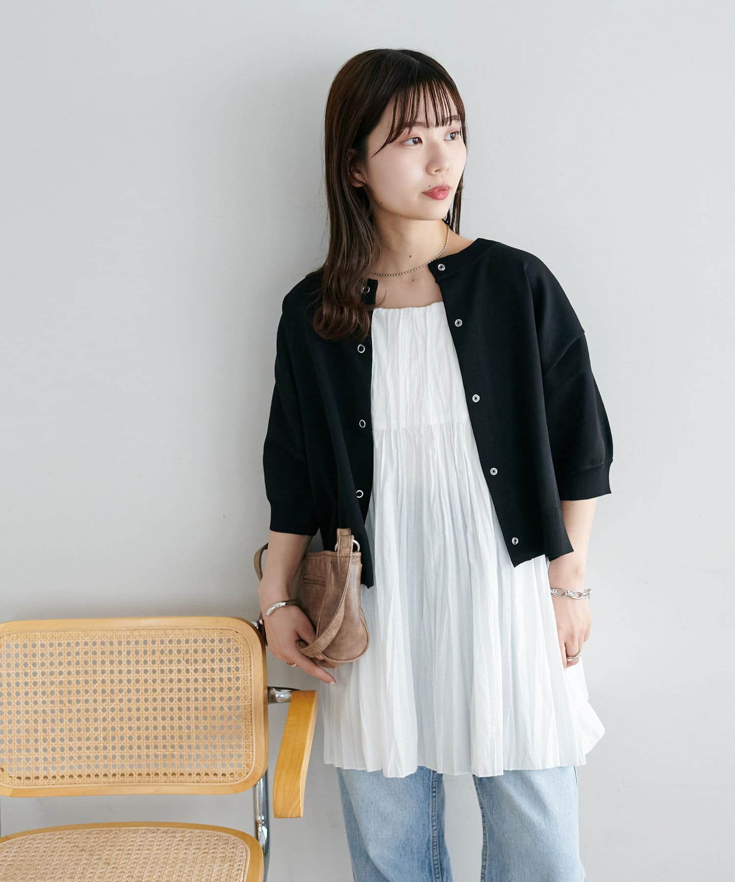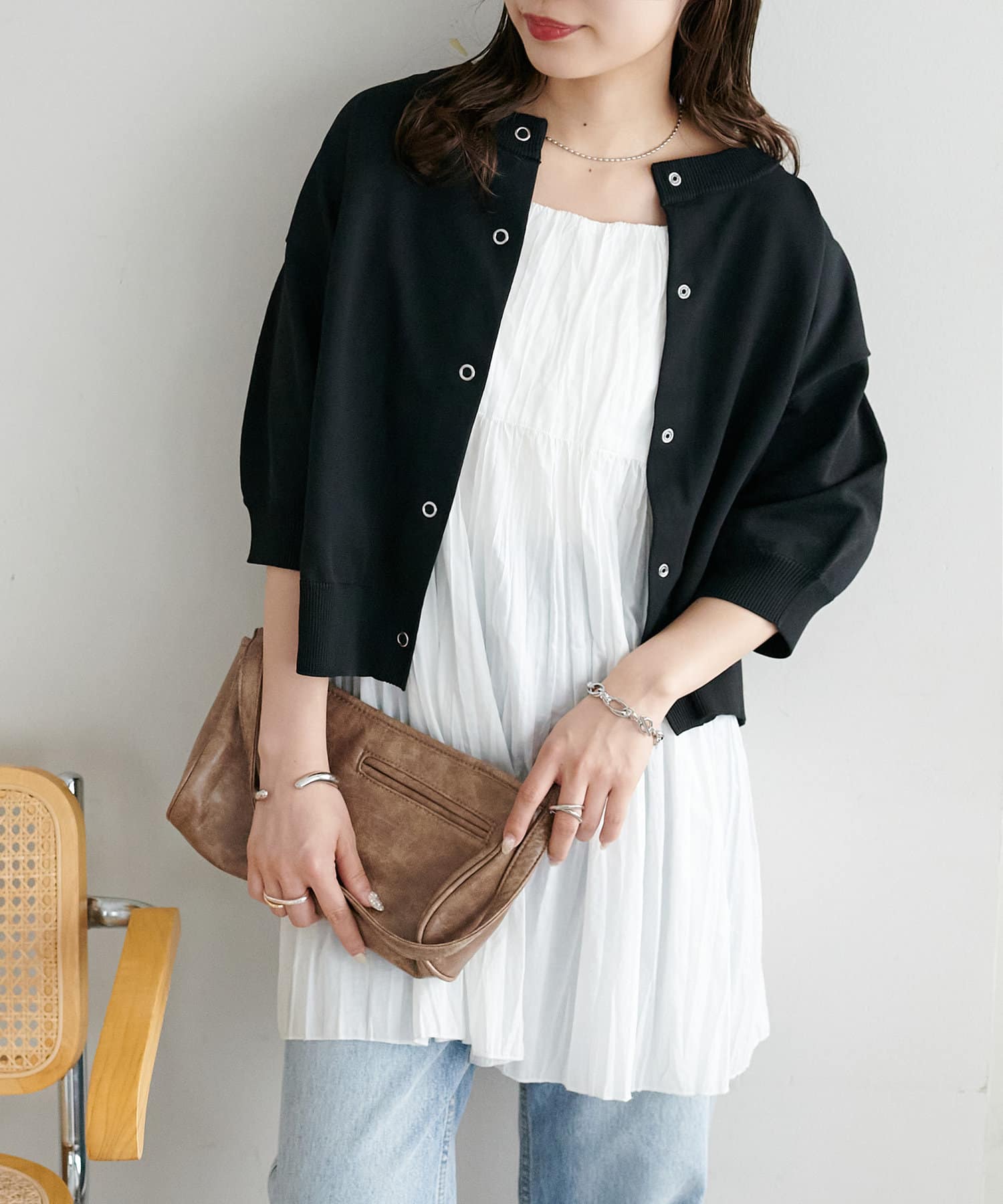 ・ワンピースの上に軽く羽織るだけでバランスの良いレイヤードが完成