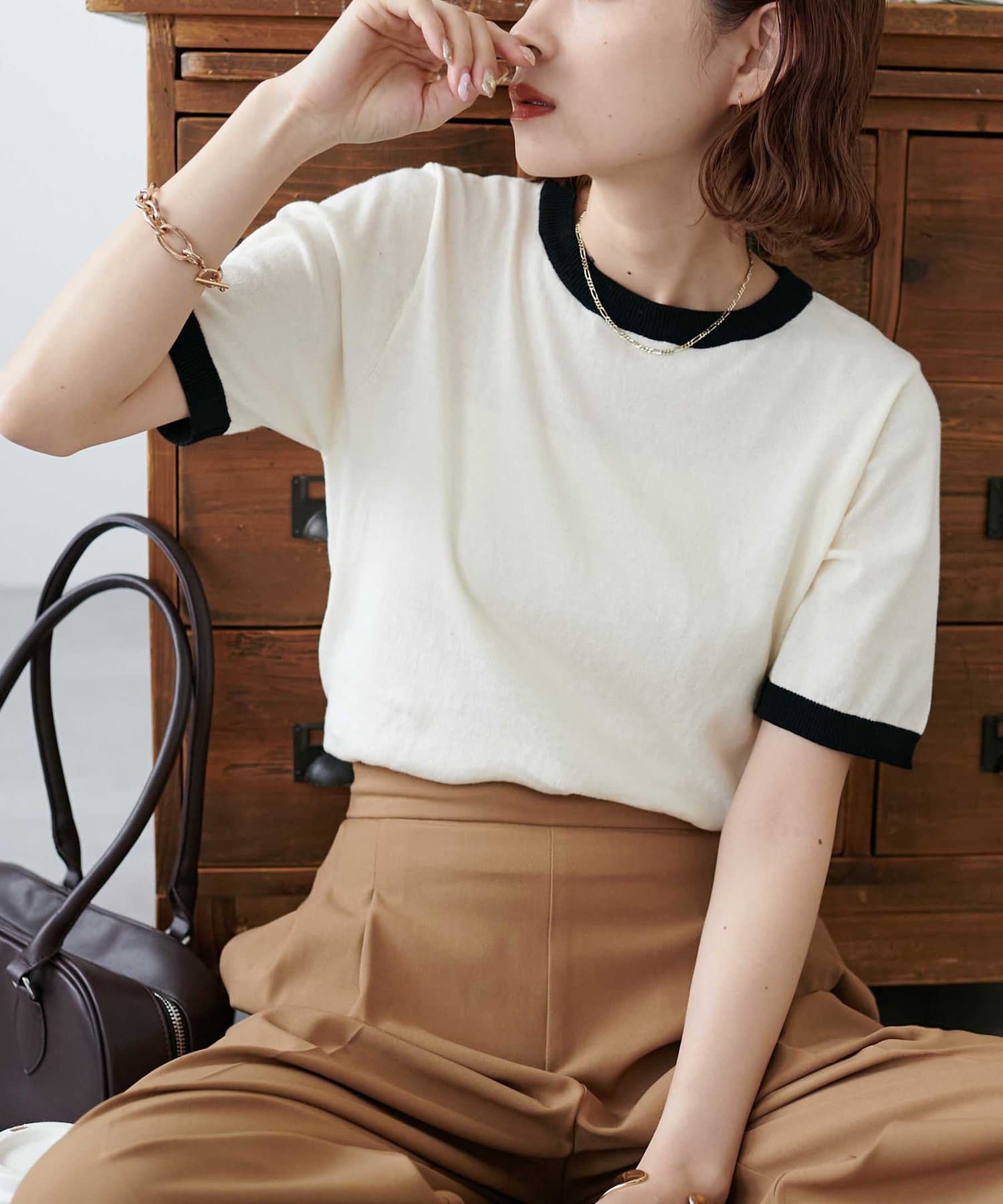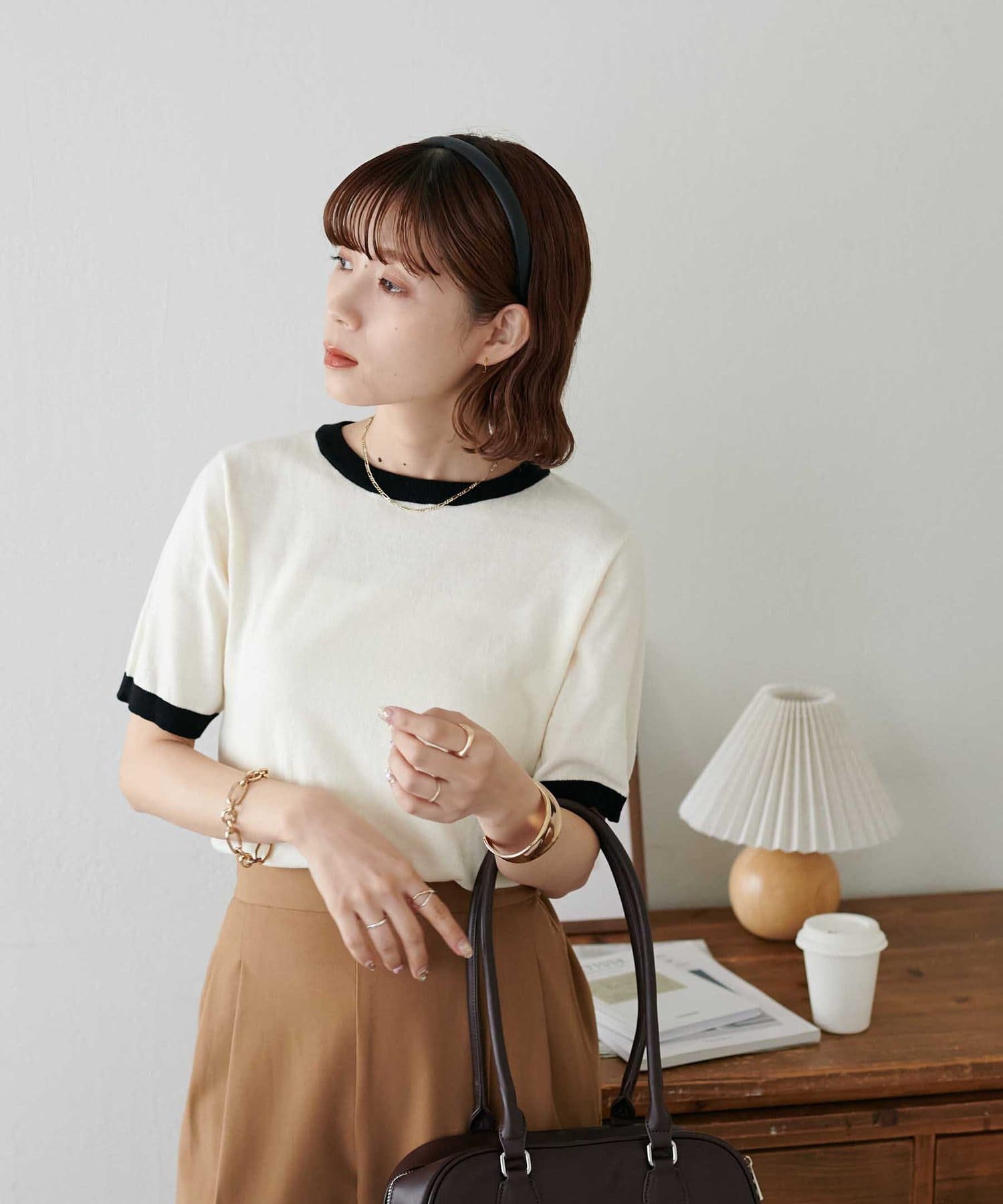 ・上品な配色デザインで、どんなボトムスとも合わせやすく着回し力◎