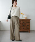 シンプルなデザインながらも、女性らしい柔らかな印象を与えてくれる、大人カジュアルなスタイリングにピッタリな一枚。