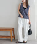 インナーにキャミソールやタンクトップを合わせて、夏らしい軽やかなレイヤードスタイルに。